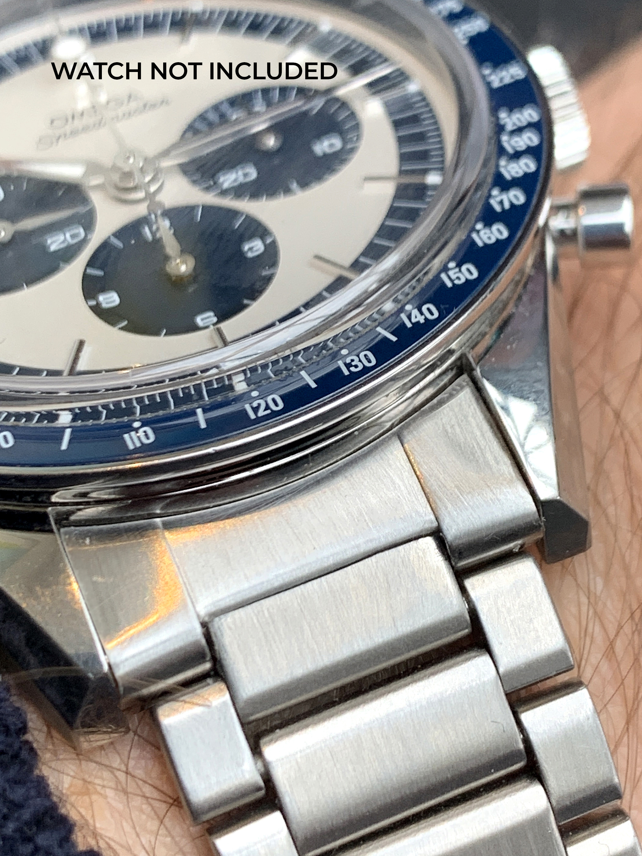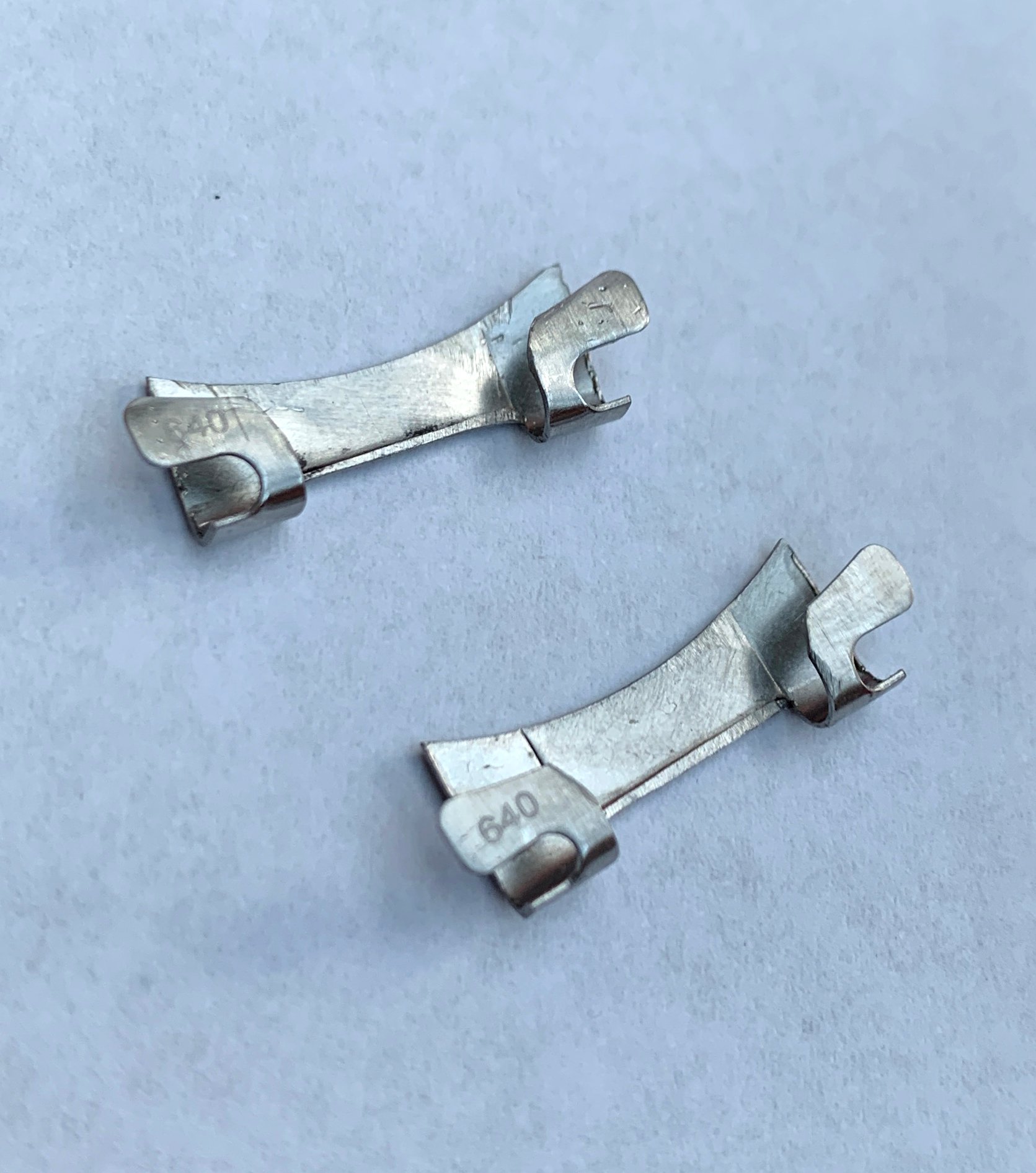 Rare authentic/original brushed steel Omega 640 end links modified to fit 19mm lug width vintage Speedmaster and Seamaster models, as well as modern FOIS and CK2998 Speedmasters. This 19mm 640 endlinks also have been modified so they don't touch the caseback of the watch and therefore fit snug against the watch case creating the best possible fit with thick springbars.