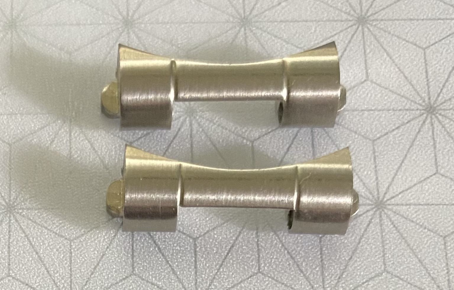 Posts 5,636 Likes 5,811 SkunkPrince ·Jan 12, 2021 One pair 808 end links purchased some very long time ago for... I don't remember what. To use with an 1171, I think? Still in factory packaging, super-small storage rub on one that you need a loupe to see. I would call these near-mint. $300 plus shipping world-wide.