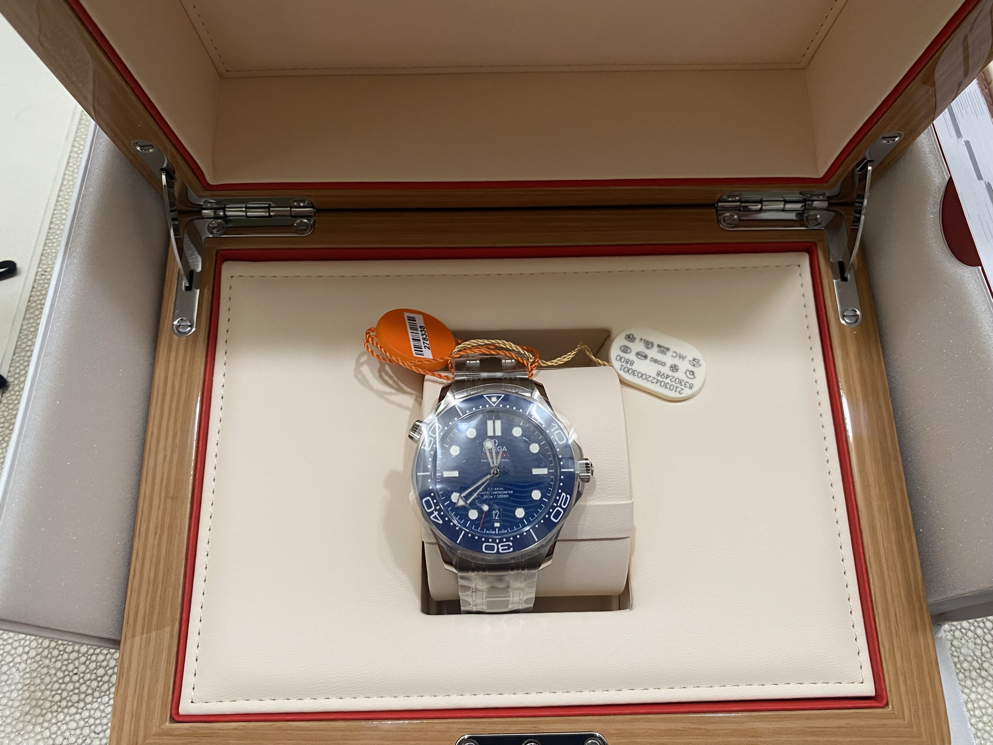 I just purchased my first luxury Omega watch today. I purchased the Seamaster 300M Professional in the black dial and steel bracelet version. The store I purchased the watch from is an AD for Omega therefore I know there isn't a lot to worry about. However, I wanted to know if this is normal (as this is my first luxury watch) the AD staff and manager boxed the watch that I tried on from the display cabinet, they didn't bring a 'fresh' watch from the back and box it up. The watch from the display cabinet was the watch I got. I'm worried that a lot of people have handled that watch, the manager said this is standard practice when a watch is brought the one the customer tries on is their watch. My watch currently doesn't have the stickers on the bracelet, case back, clasp or watch face (pretty much no stickers). I sort of wanted the privilege of the stickers (that might not make sense to alot of people)...is this normal or is it something I need to worry about? or am I over thinking this?