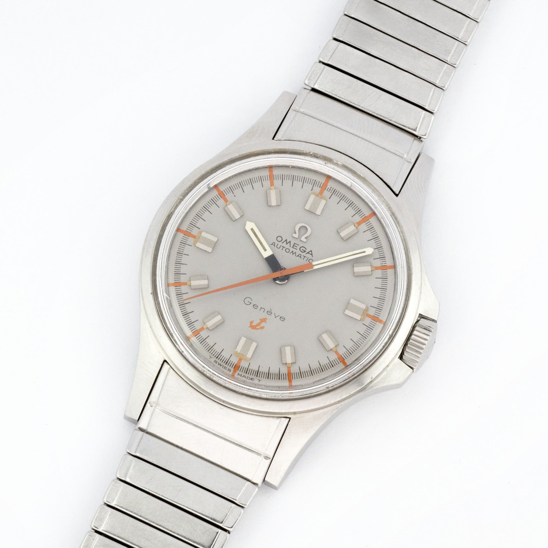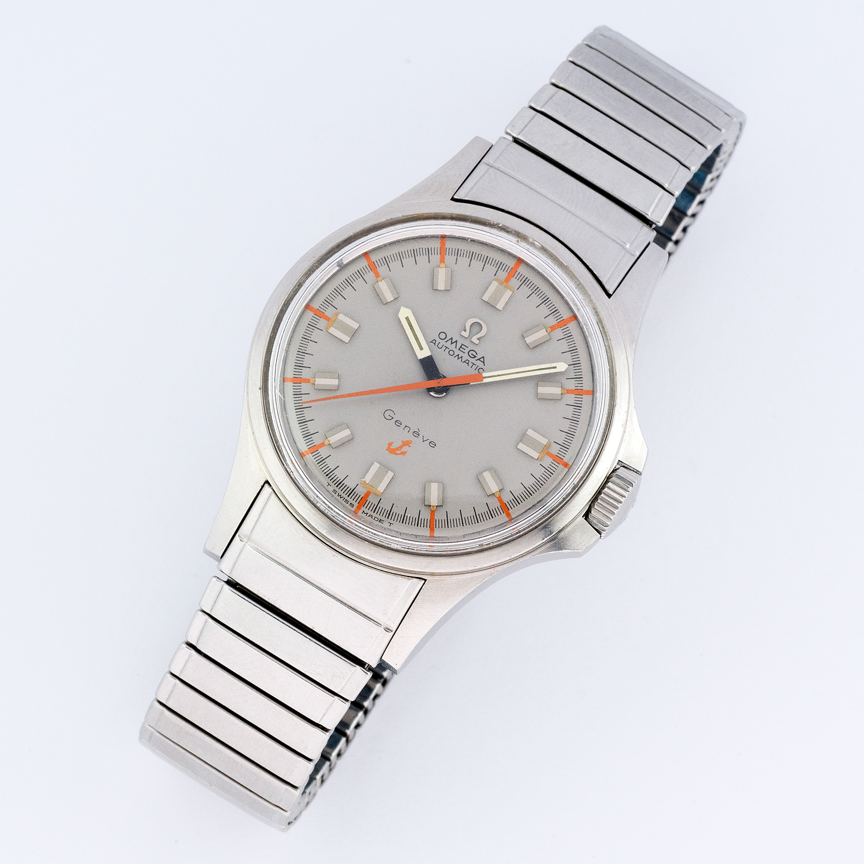 If you know or ever searched this reference you also know that it is almost impossible to find light coulored dials without defects. Well this applied metal logo dial is in outstanding condition without faded zones, the tritium is intact everywhere. Hands also mantain their original tritium. Glass and crown are signed (the logo on the crown is the narrow flat feet one). The case is very sharp and does not present any particular defect. It cmes with its original and hard to find 1122 fixoflex bracelet with 563 17mm endlinks. The 552 movement runs fine and the wath keeps time correctly. I do not know the date of the last service.