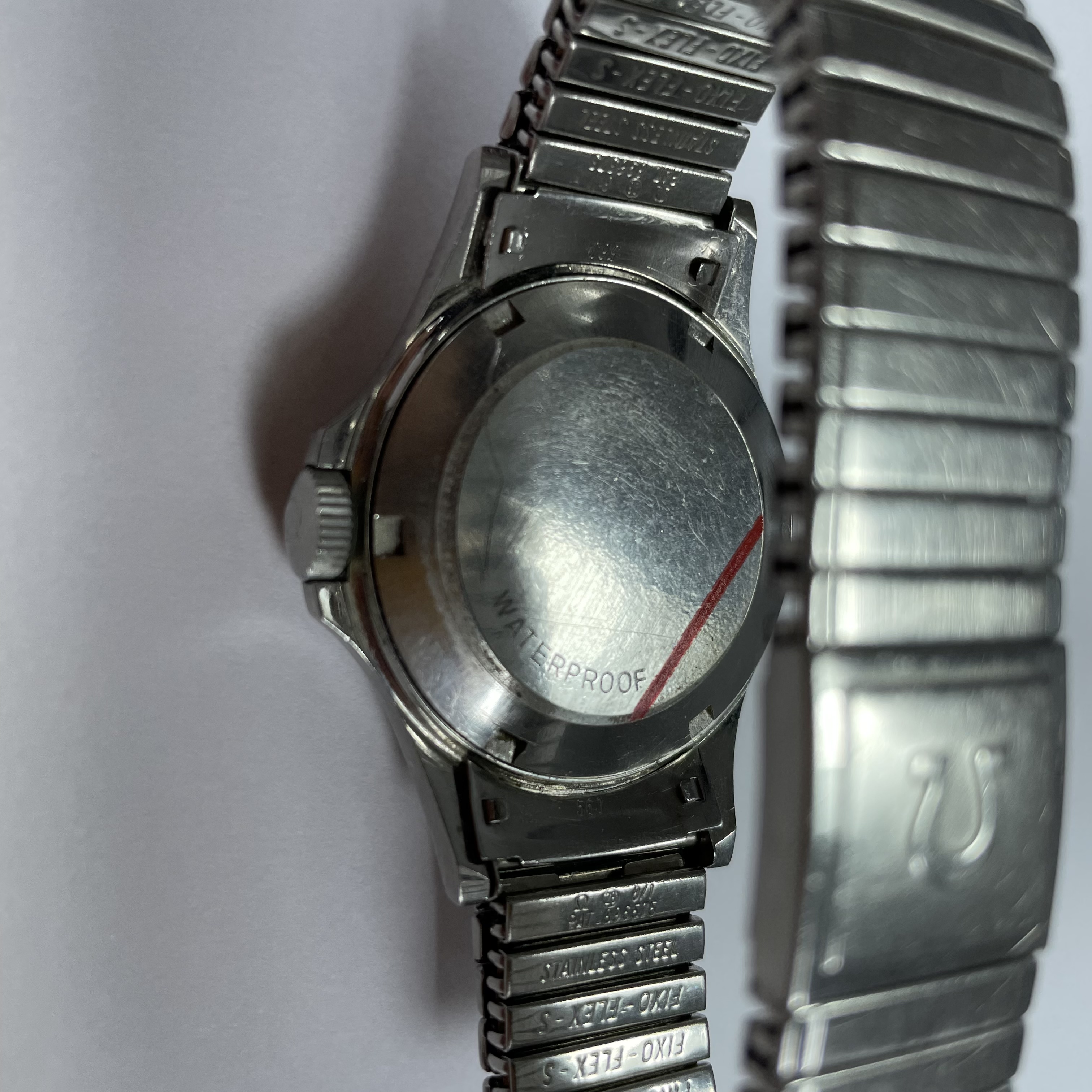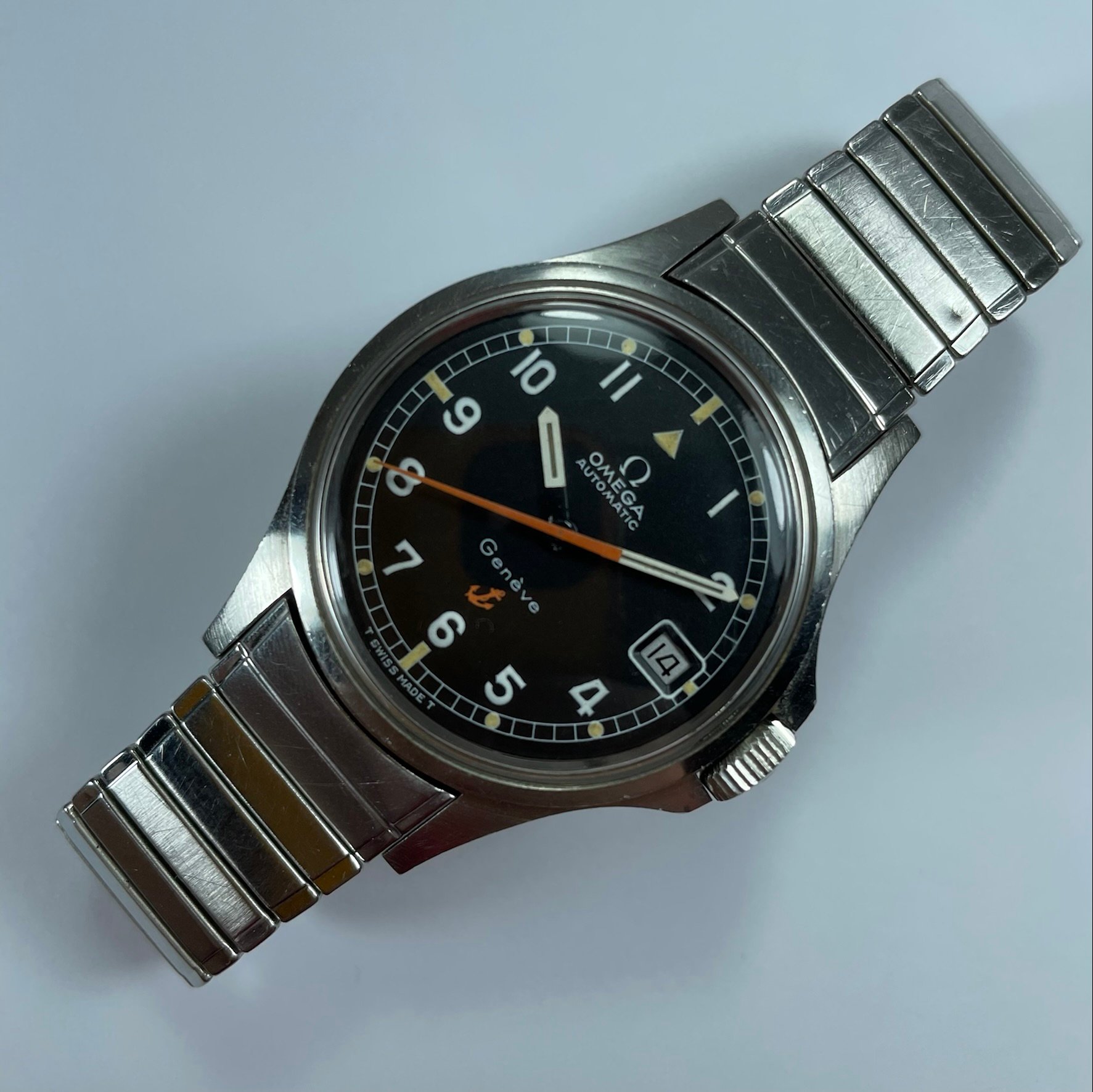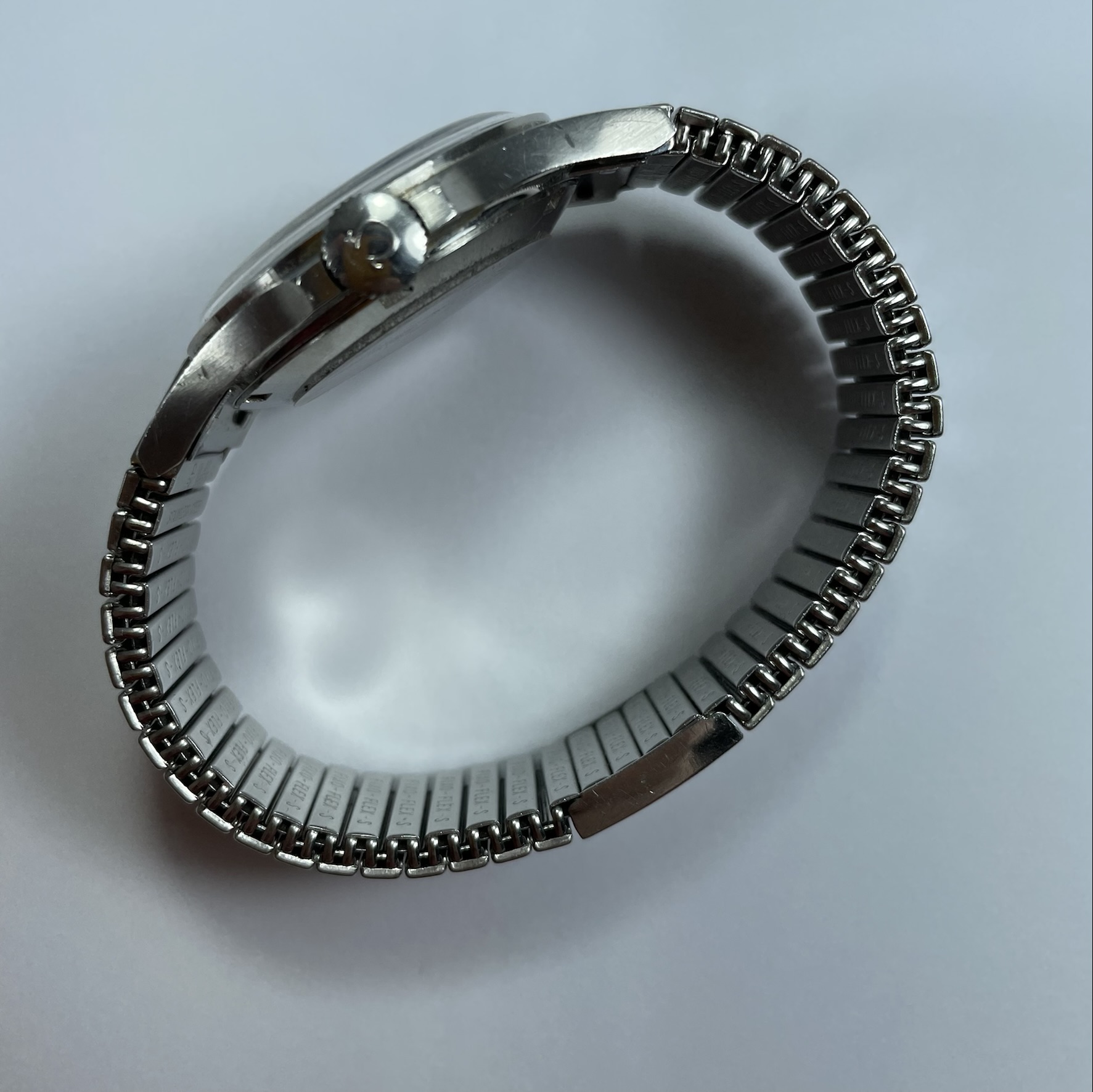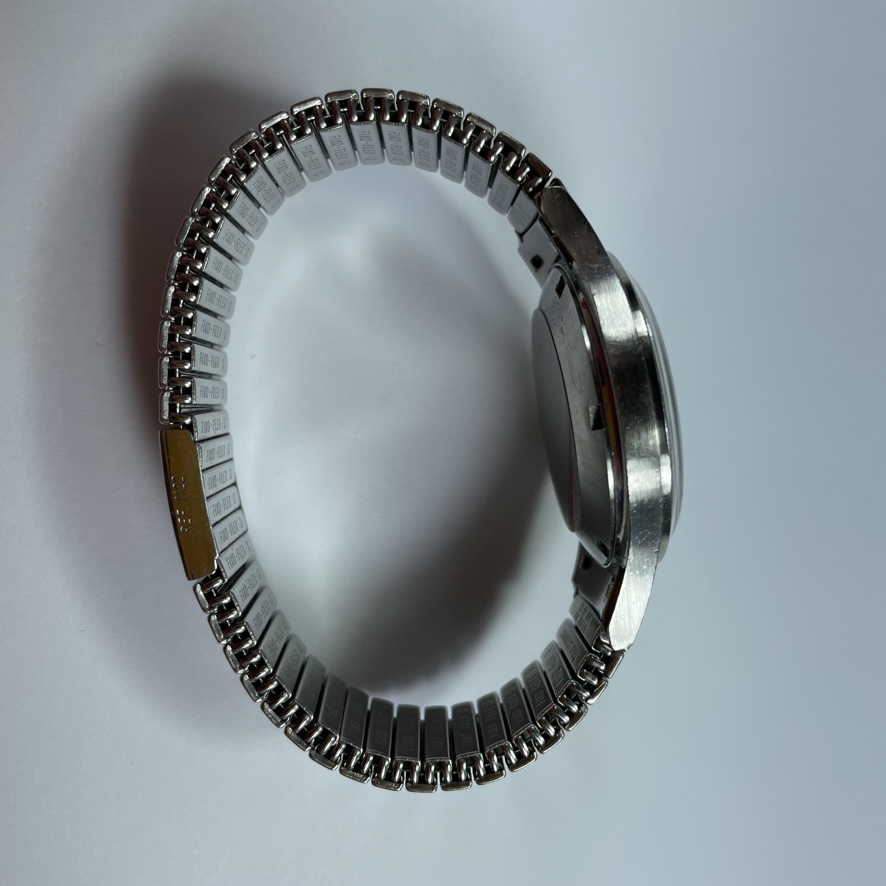 The watch is a ref. 166.038 and presents in very good condition. The case is unpolished, the dial is perfect , glass is correctly signed, the crown is signed and probably has been substituted in a previous service (not by me). The 1122 Fixoflex bracelet has some scuff, but it is in overall good condition.