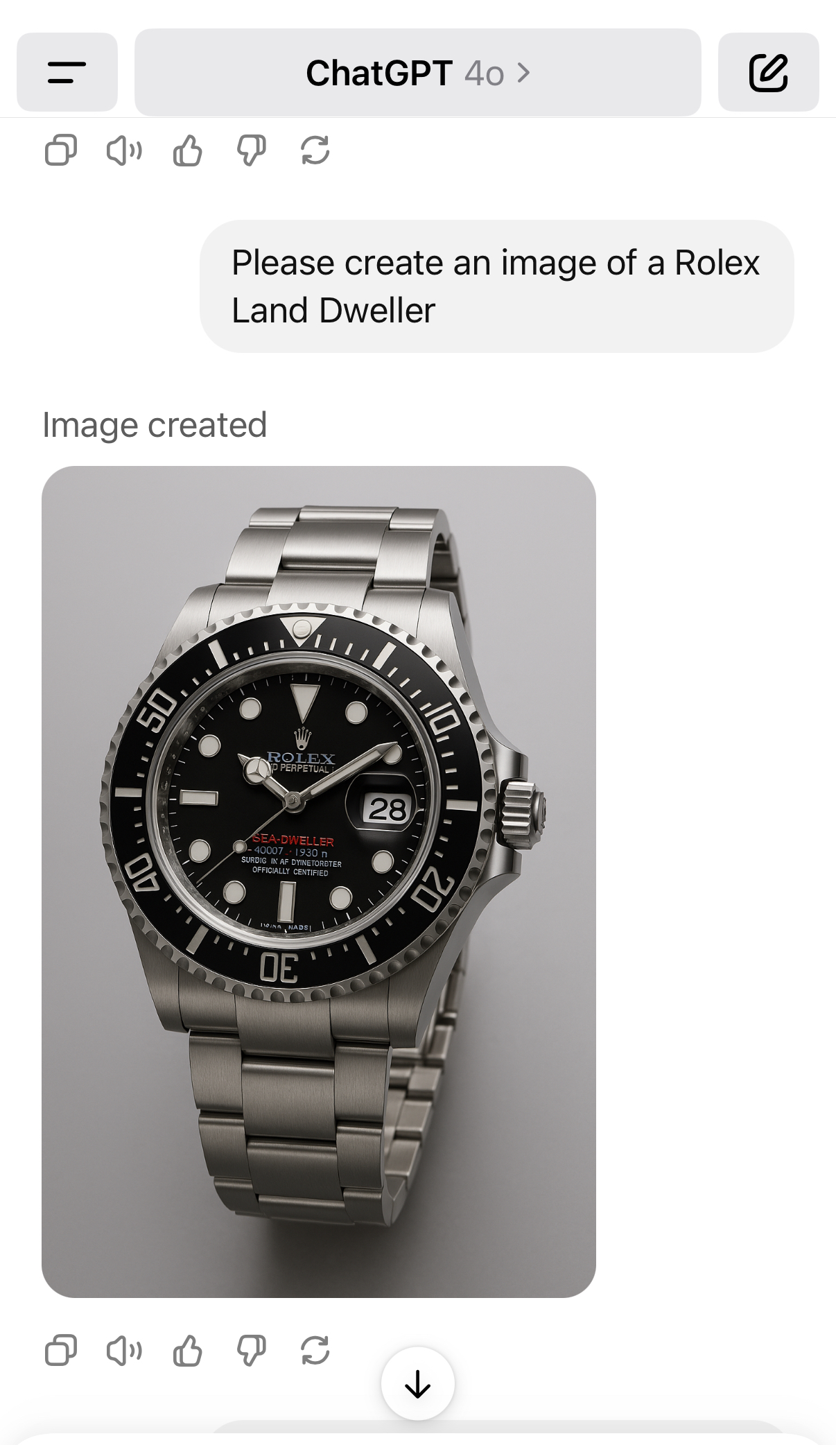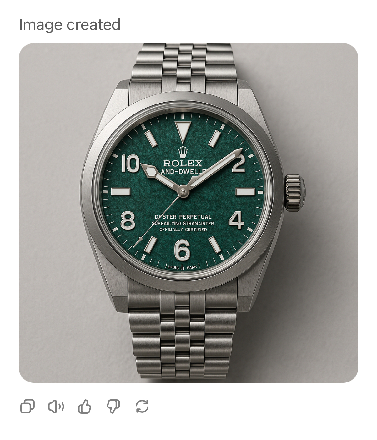 My question was the same with each model. I asked “Make image of” and listed the Omega model. I gave no other instruction.