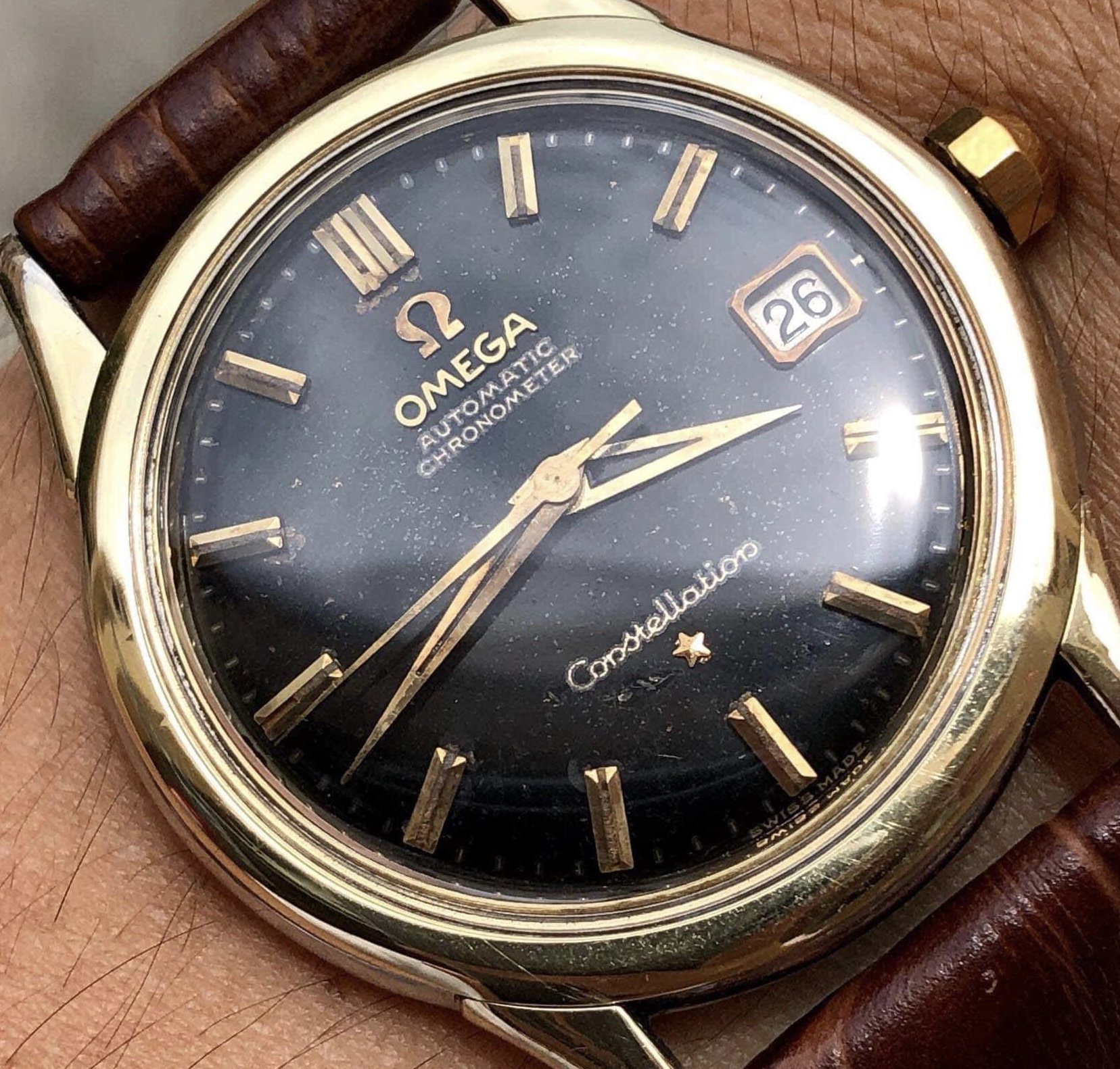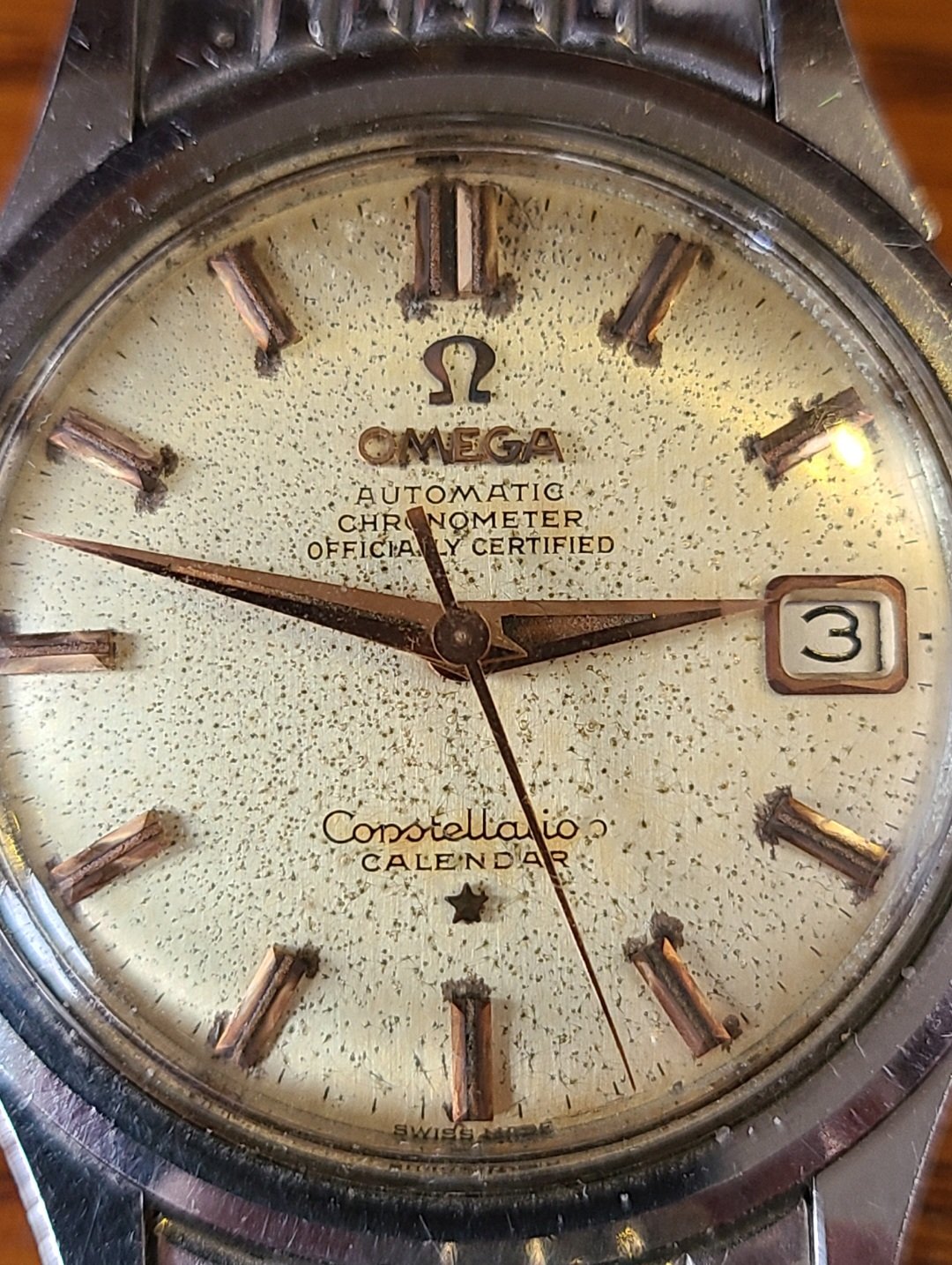Moreover, I found this gold-capped case with strong patina through the dial. Even though the picture is not clear, I believe the dial is original. https://www.bukowskis.com/en/auctio...omega-constellation-calendar-wristwatch-35-mm