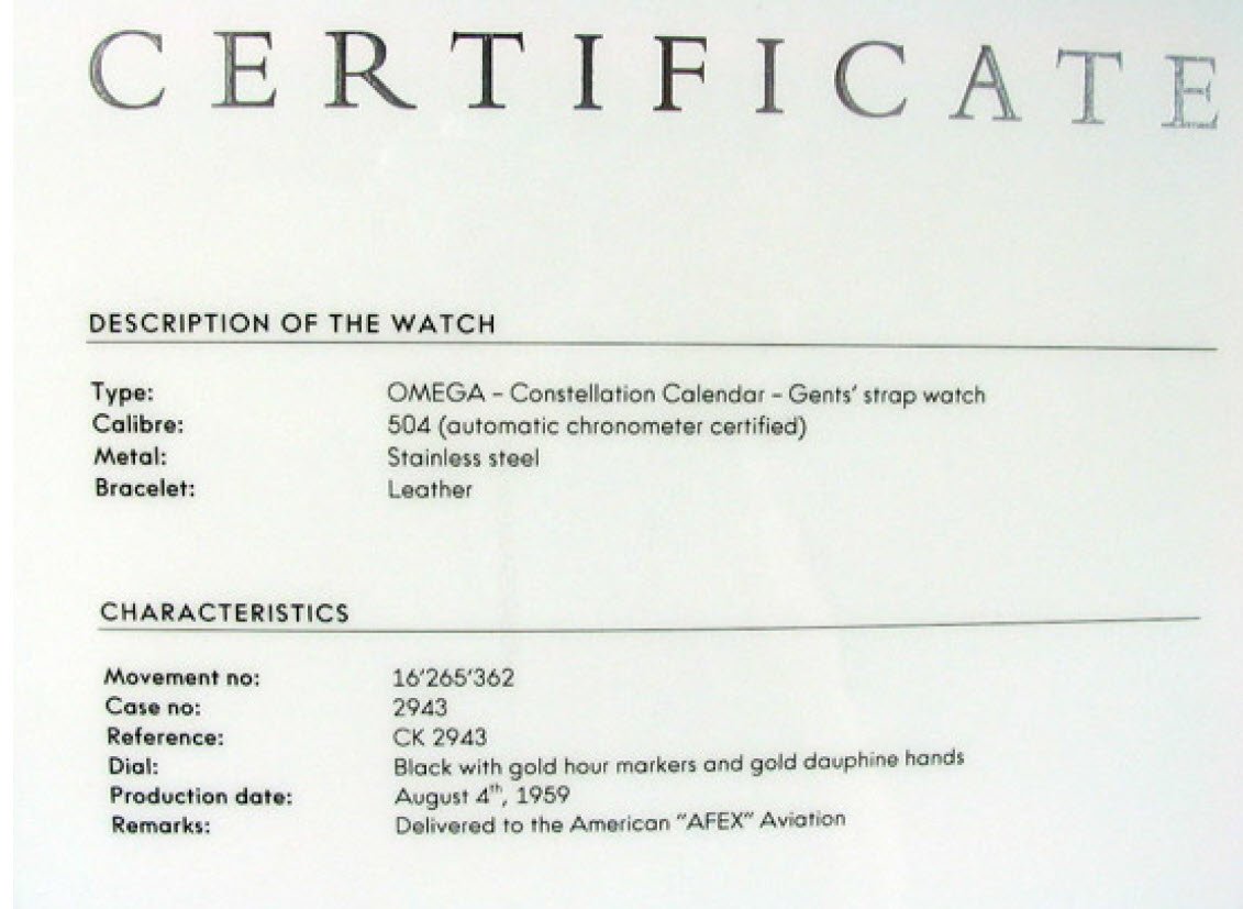 Another rare black dial, steel case reference 2943 with pink gold hour-markers, ranked by Desmond to be the “star of the month” since April 2008. This special watch came with the movement number 16,256,362, with the production date confirmed by “Omega Extract from the Archives” to be produced on August 4th, 1959. https://omega-constellation-collectors.blogspot.com/2008/04/star-of-month.html