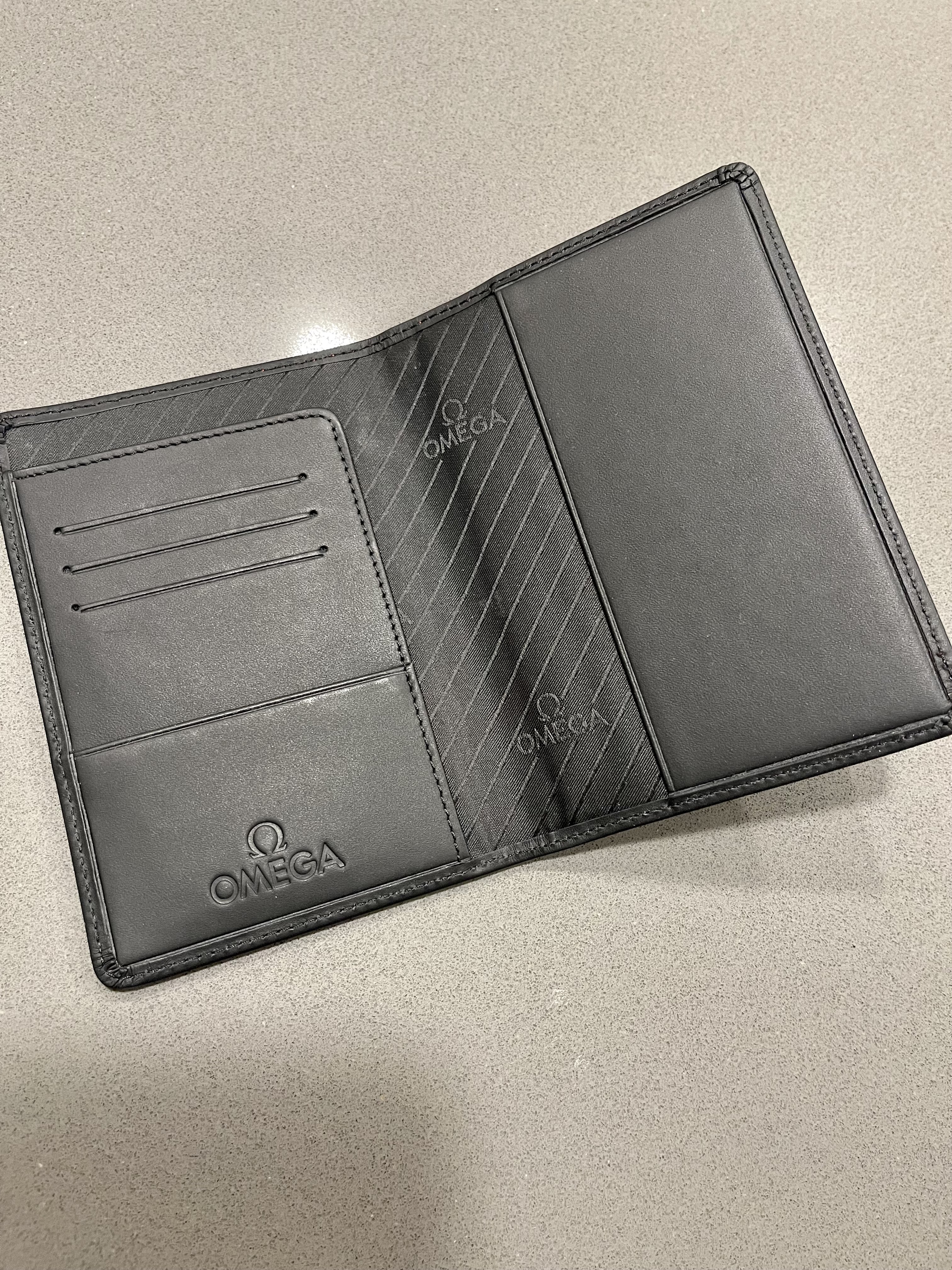 SOLD Omega black passport holder: