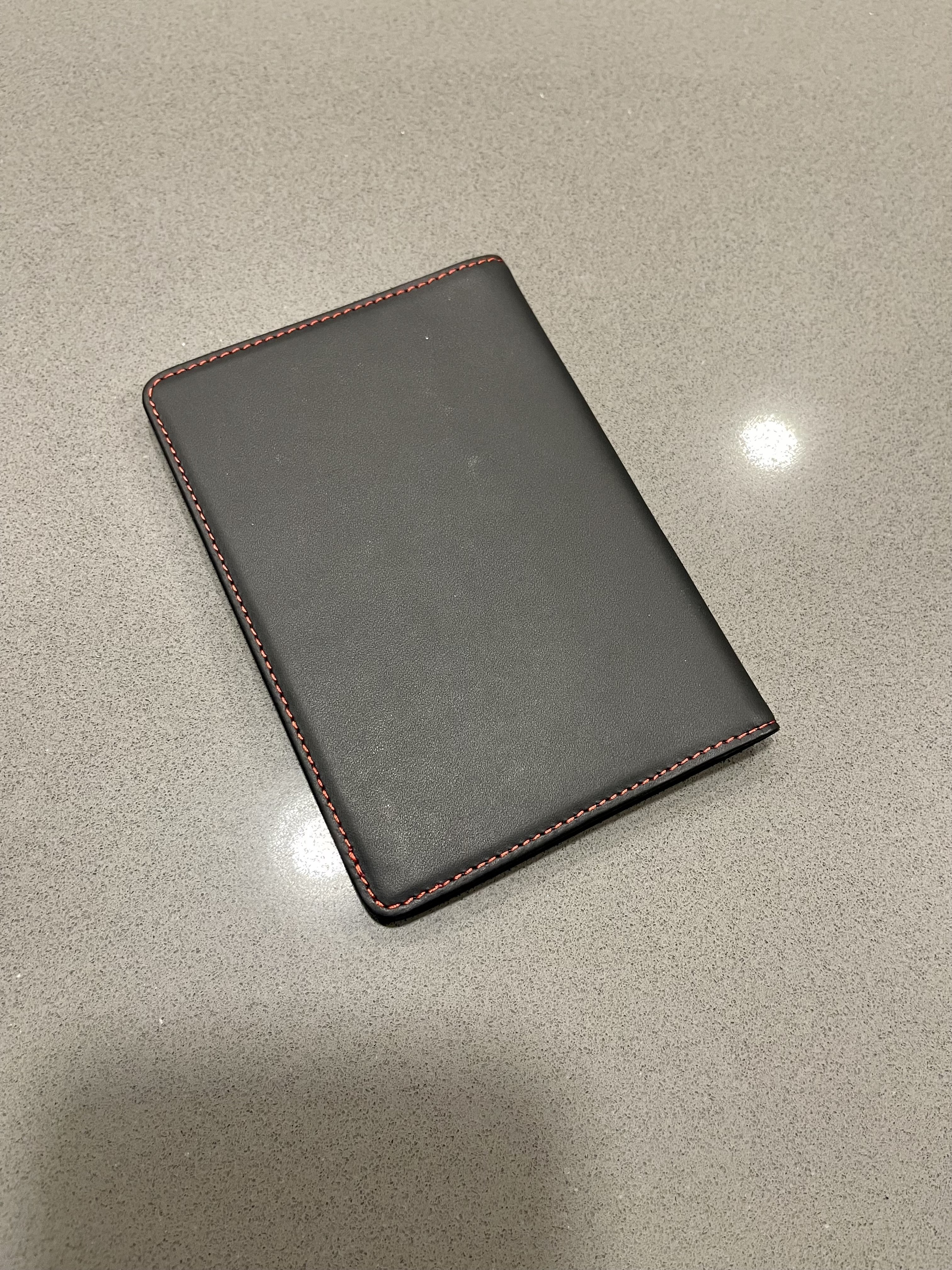 Brand new. Black leather with orange/red stitching. $50.00. SOLD