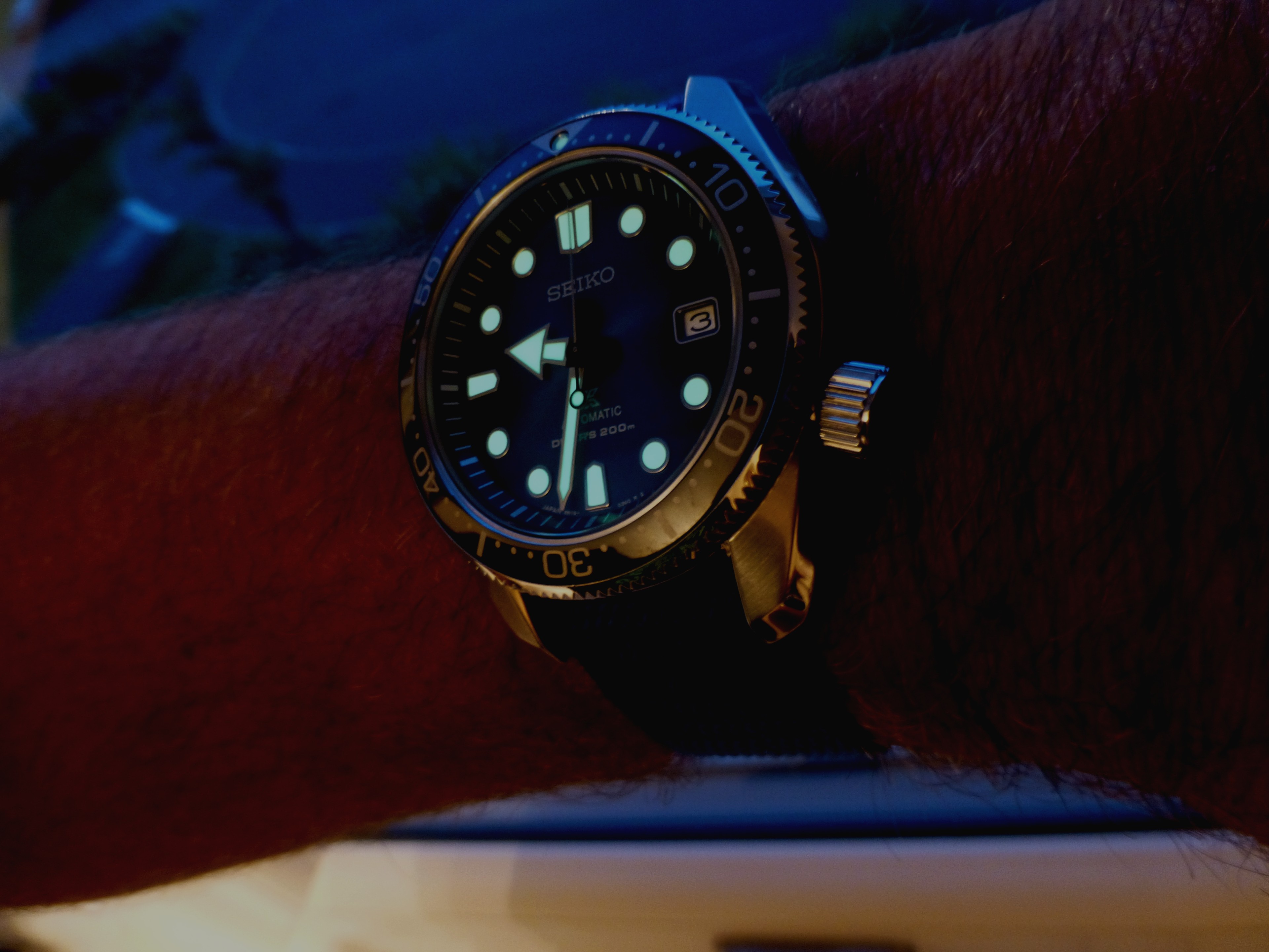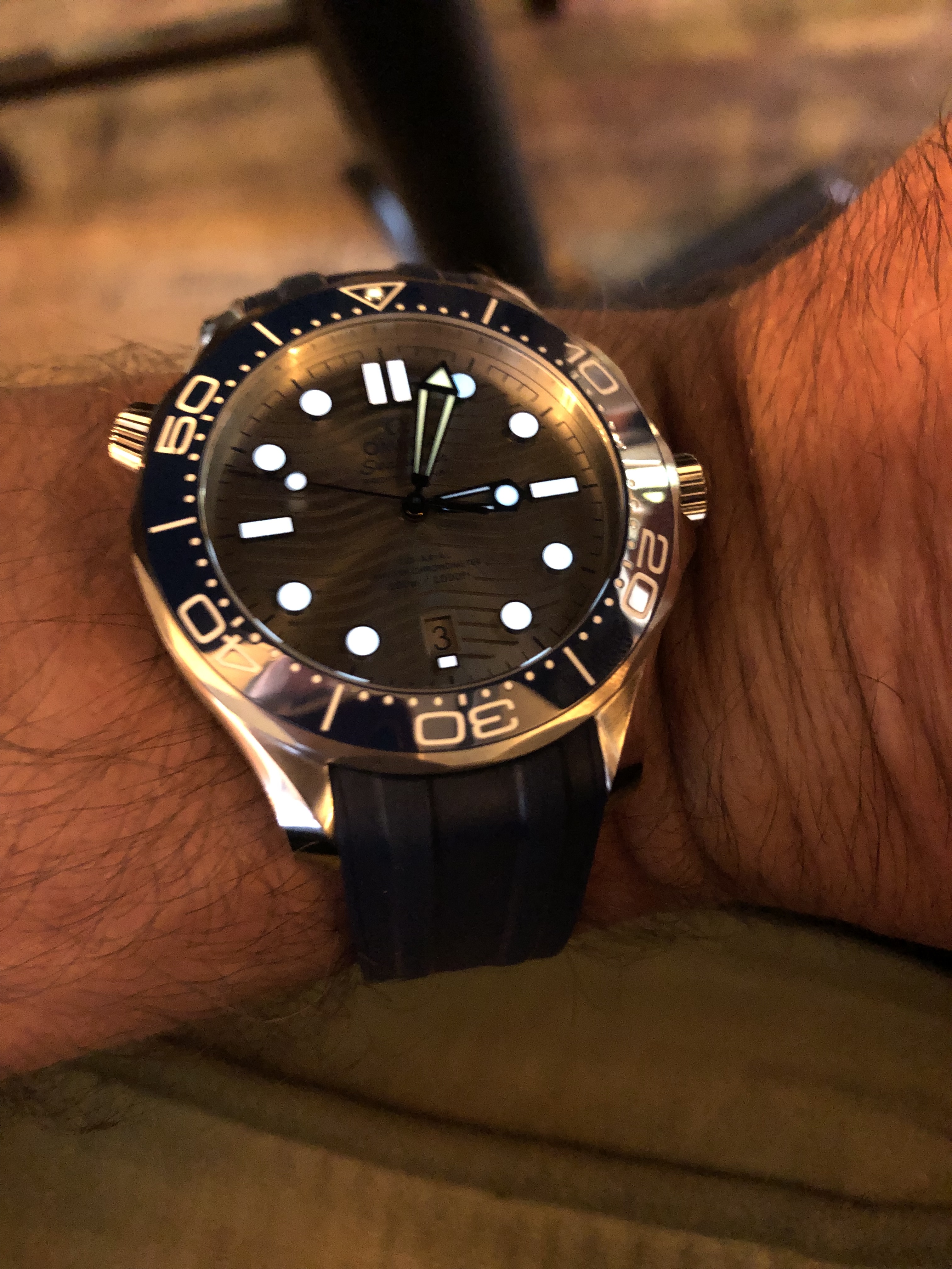 Very nice on the rubber strap. Please see if you can post a lume shot to see how it compares to my new Seiko.