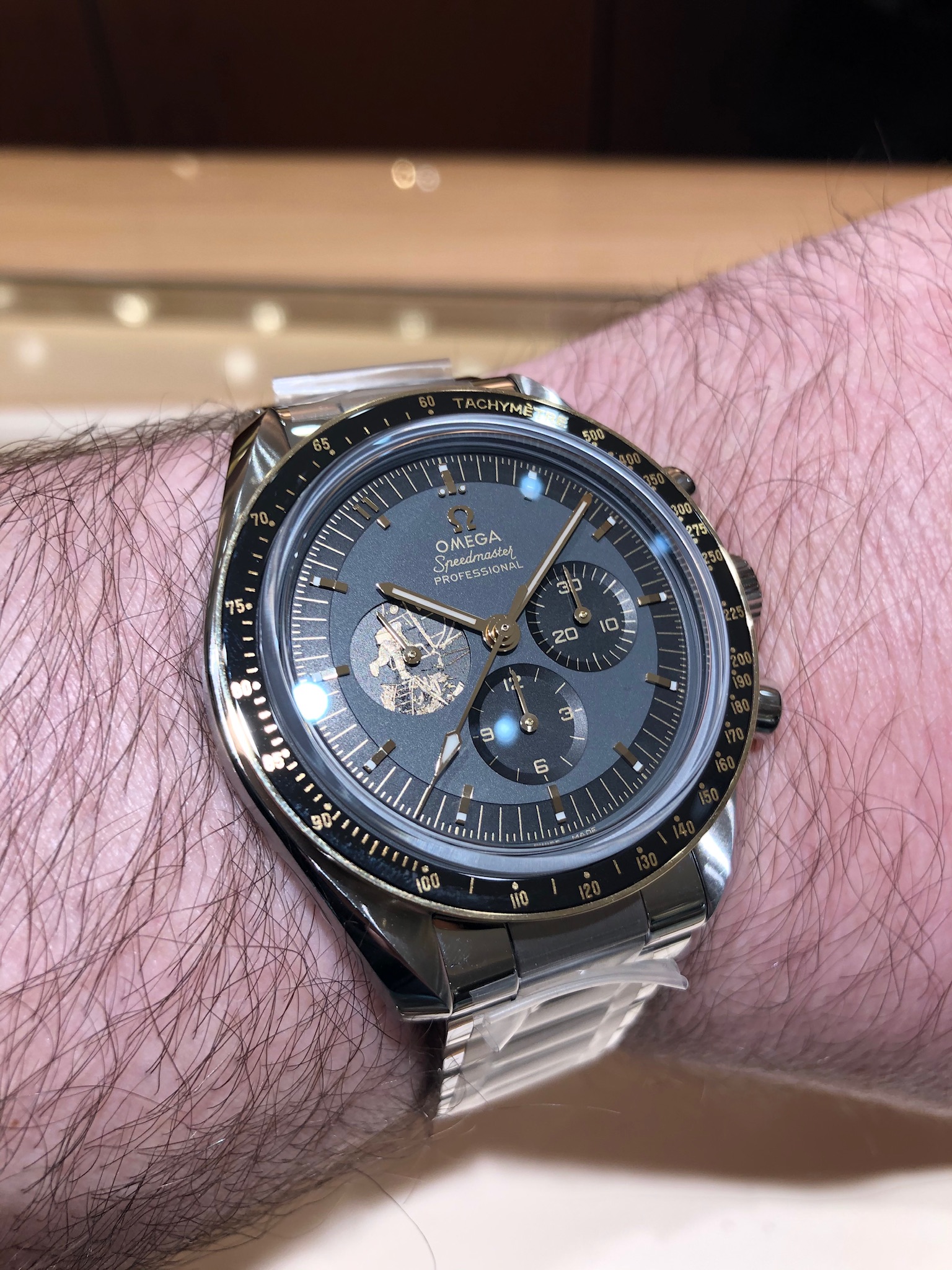 First post.. used the forum for lots of research on various models. Thanks for the insight everyone. Anyway. Got a totally unexpected call on Friday to say my Apollo 11 was being delivered on Saturday to the OB. TBH I had pretty much written off getting on as I put my name down a long time after the initial hype and thought I had missed the boat. Went with mixed feelings from the pics I had seen and the comments across forums and submissions related to articles written about this watch. Thought I would look and perhaps make my choice. Have to say as soon as I saw in the flesh I thought it was great. The strap is so nice. The watch is a lot more subtle that the pics present it as. Before going I was considering getting rid of my FOIS to cover some of the cost. Seeing this I can see they are very different and am now keeping both. Visited Kennedy space Centre earlier this year for the first time and left completely in admiration and bravery of those guys. I also happen to have hit 50 in the recent years which is why I bought my FOIS to link my 50th to something significant. As a long time watch collector it fitted the bill, I think this does the same but in a very different way. Even my wife told me to buy it and she usually asks why I need another watch.