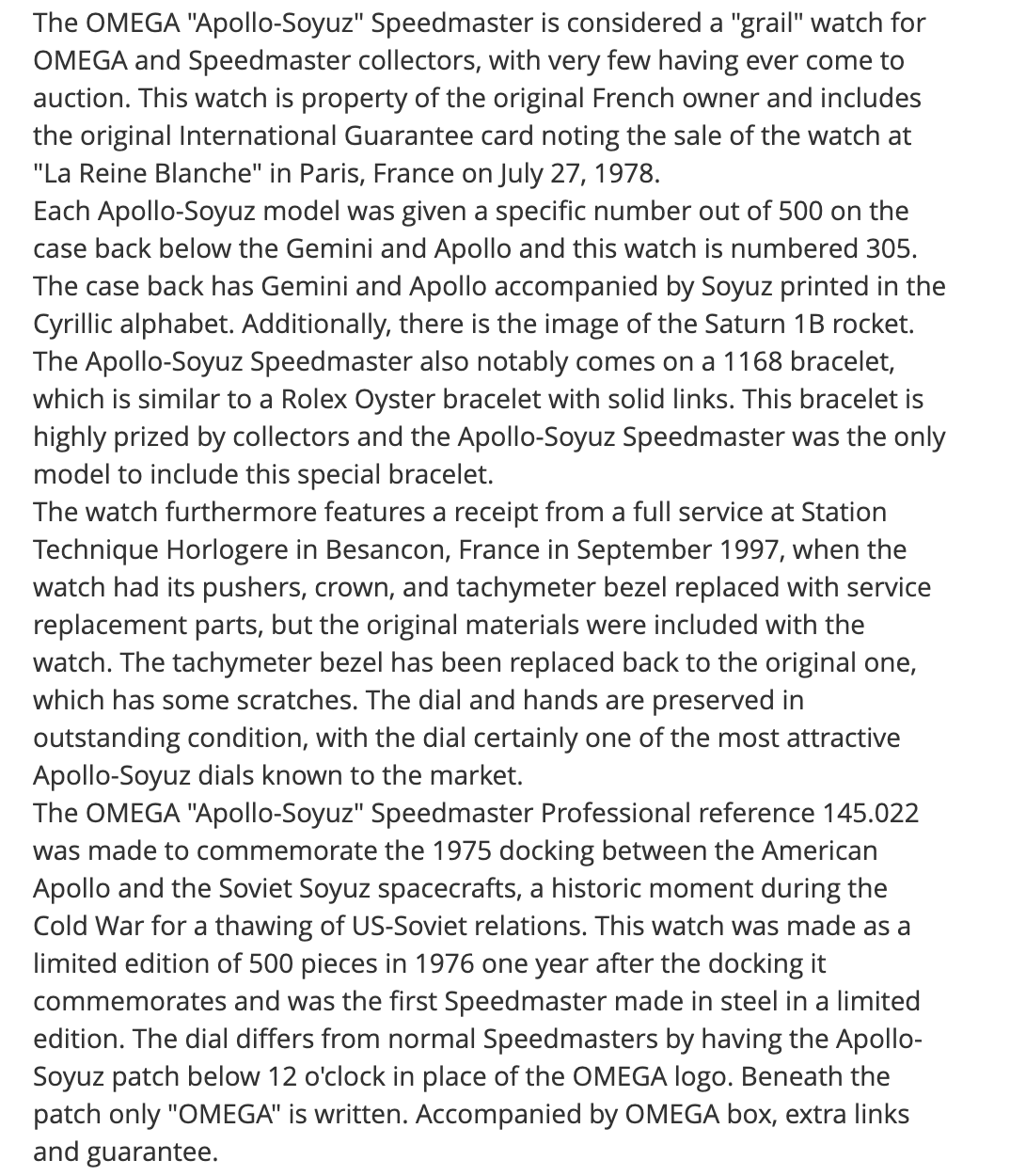 I see that the PHILLIPS auction has radically changed the valuation of Apollo-Soyuz watches ...😉