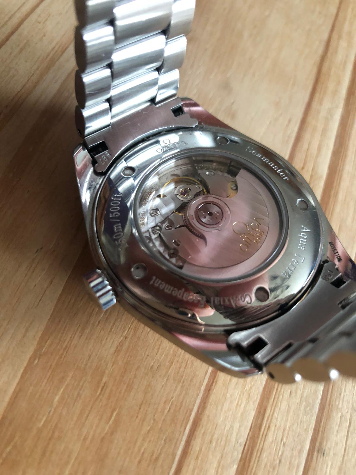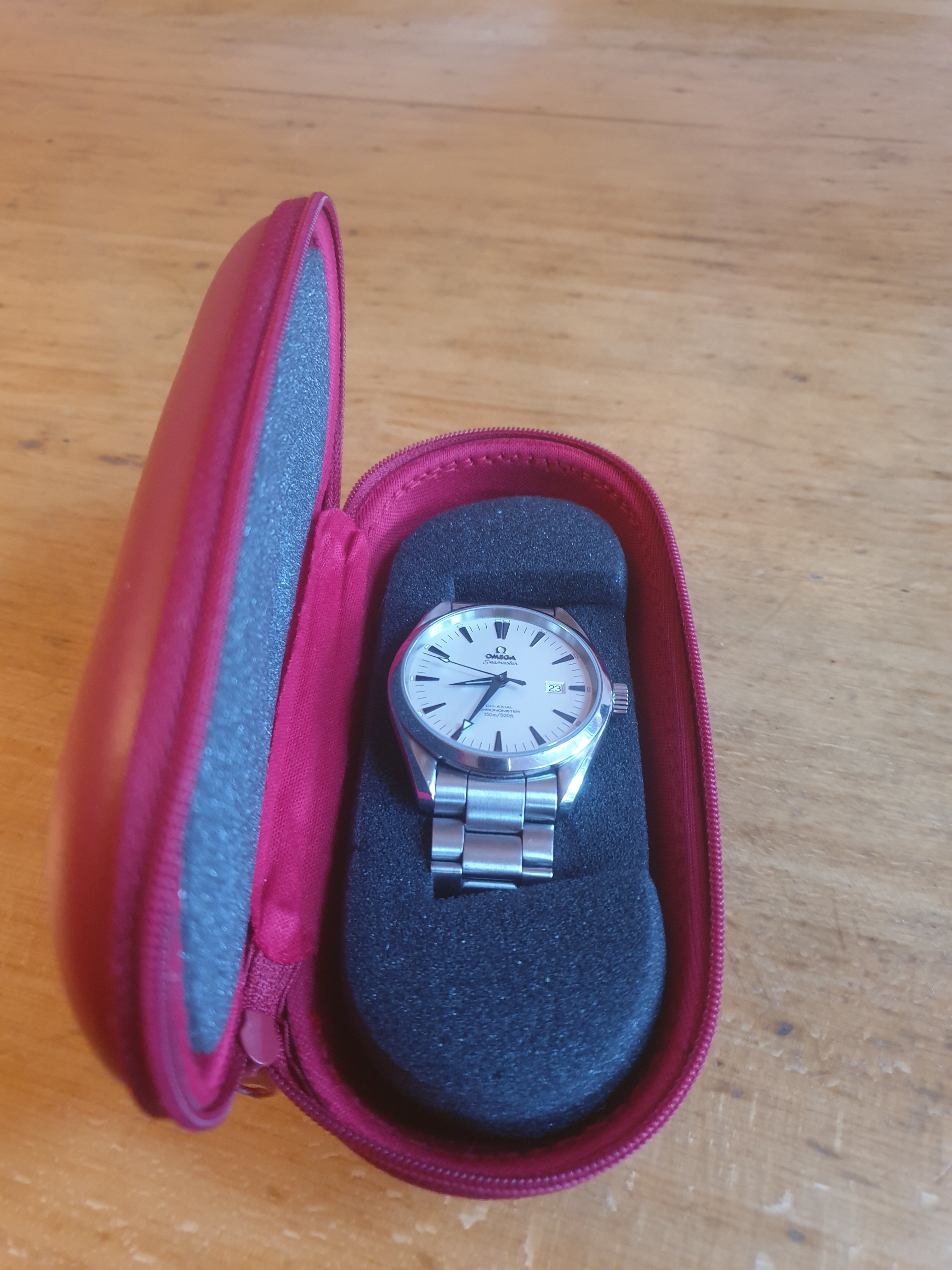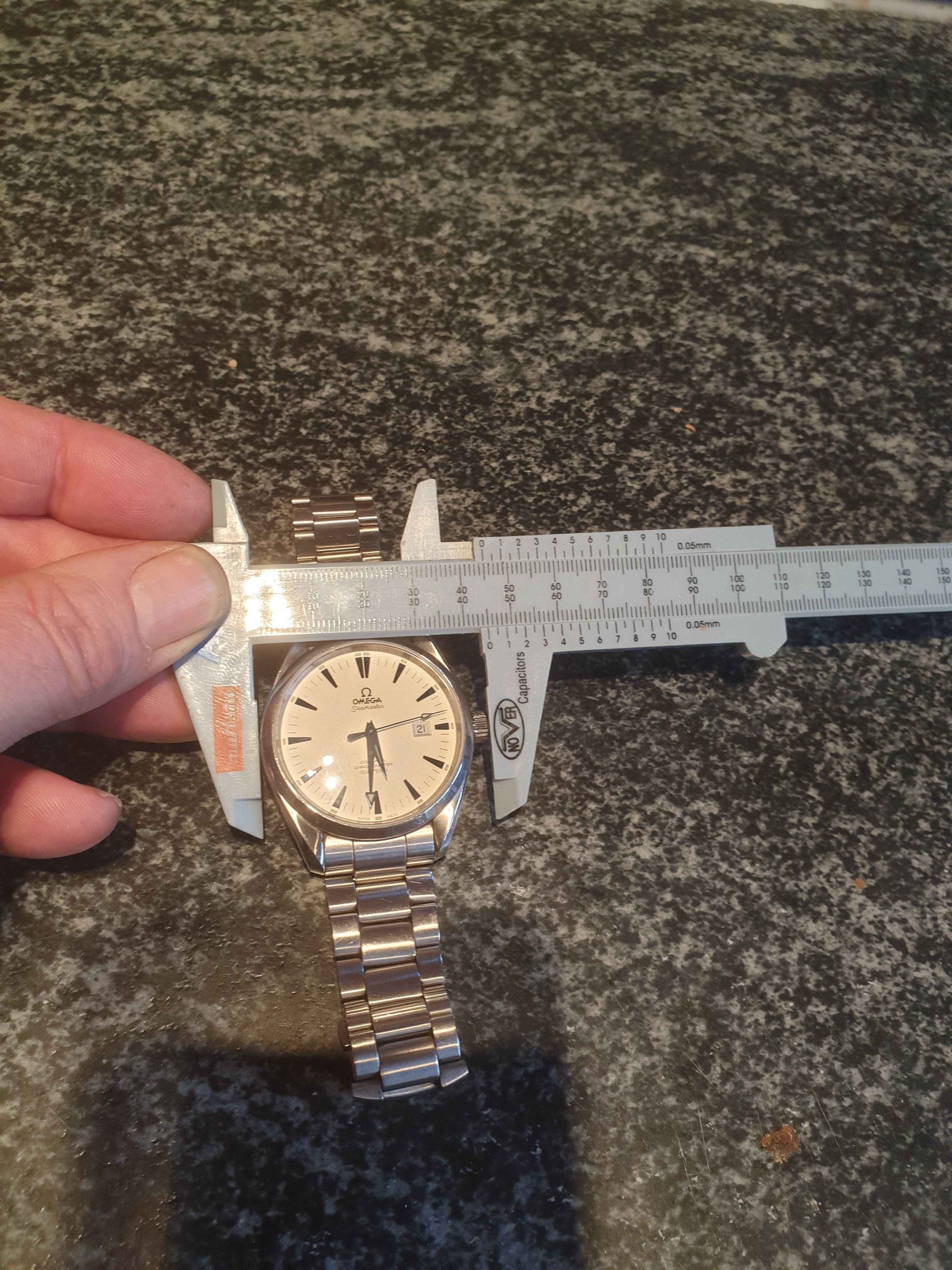 ·Omega Aqua Terra 2502.33 with a beautiful white dial and blue hands. Very large size ( 42mm ) and bracelet fits a 7.5 inch plus wrist. I took this as a part exchange and unfortunately no box or paperwork. This watch wears big on the wrist . Watch comes with an Omega service pouch but no box or paperwork. I am looking for 2000 euro for this beauty and I am open to trades for mark???? Speedmasters. Show me what you got. I am EU based and hopefully to avoid customs charges an EU deal would be preferable but I can ship anywhere if agreeable. The watch has not been serviced while I have owned it but it also has not been worn since I owned it. Payment by PayPal as a gift or add 4%. Bank transfer is acceptable . Shipping to be agreed. Many thanks to OF for the space and for looking.