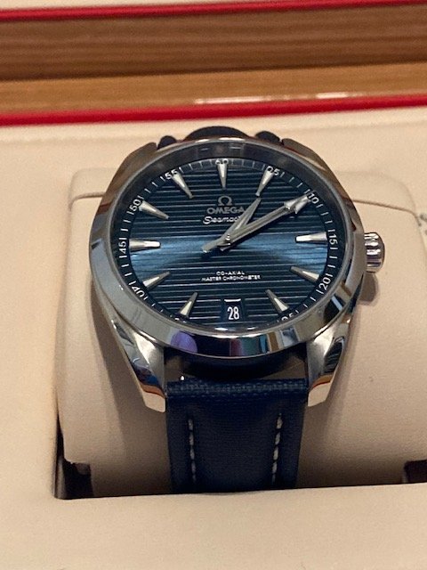 ·Up for sale this beautiful blue AT 41 on the steel bracelet. This was purchased by me from a Canadian AD in late 2021 and will ship with everything it came with, including the outer cardboard box, inner box, all cards and papers and the balance of its international warranty. A copy of the original METAS certificate downloaded from Omega will also be included in the sale.