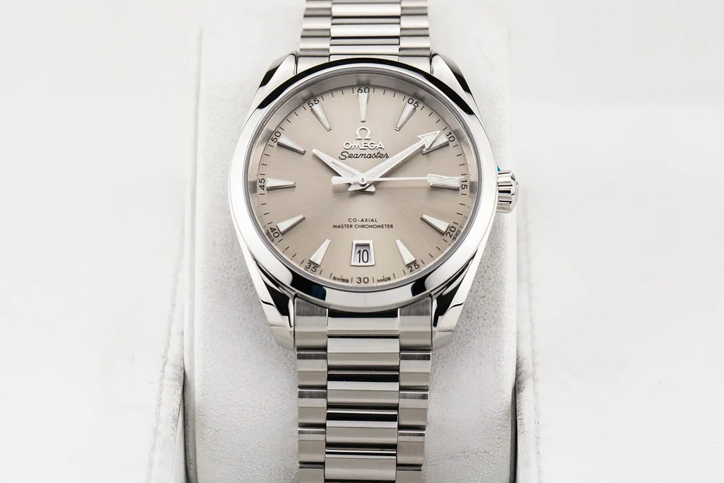 ·Up for sale is a brand new Omega Aqua Terra 8800 38mm "Shades" Sandstone Dial / Bracelet, reference # 220.10.38.20.09.001 It comes complete with all boxes, papers, booklets, hang tag and Omega Warranty Card dated June 2024.