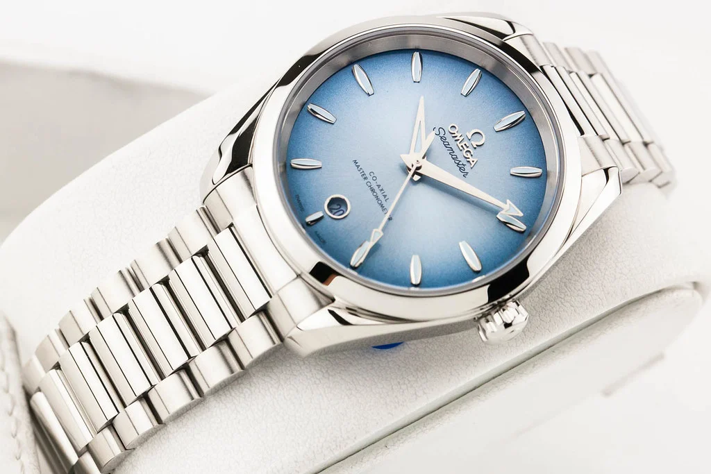·Up for sale is a brand new Omega Aqua Terra 8800 75th Anniversary 38mm Summer Blue Dial on Bracelet, reference # 220.10.38.20.03.004. It comes complete with all boxes, papers, booklets, hang tag and Omega Warranty Card dated August 2024.