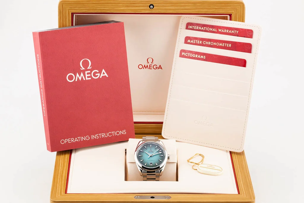 ·Up for sale is a brand new Omega Aqua Terra 8800 38mm Turquoise Dial / Bracelet, reference # 220.10.38.20.03.005 It comes complete with all boxes, papers, booklets, hang tag and Omega Warranty Card dated May 2025.