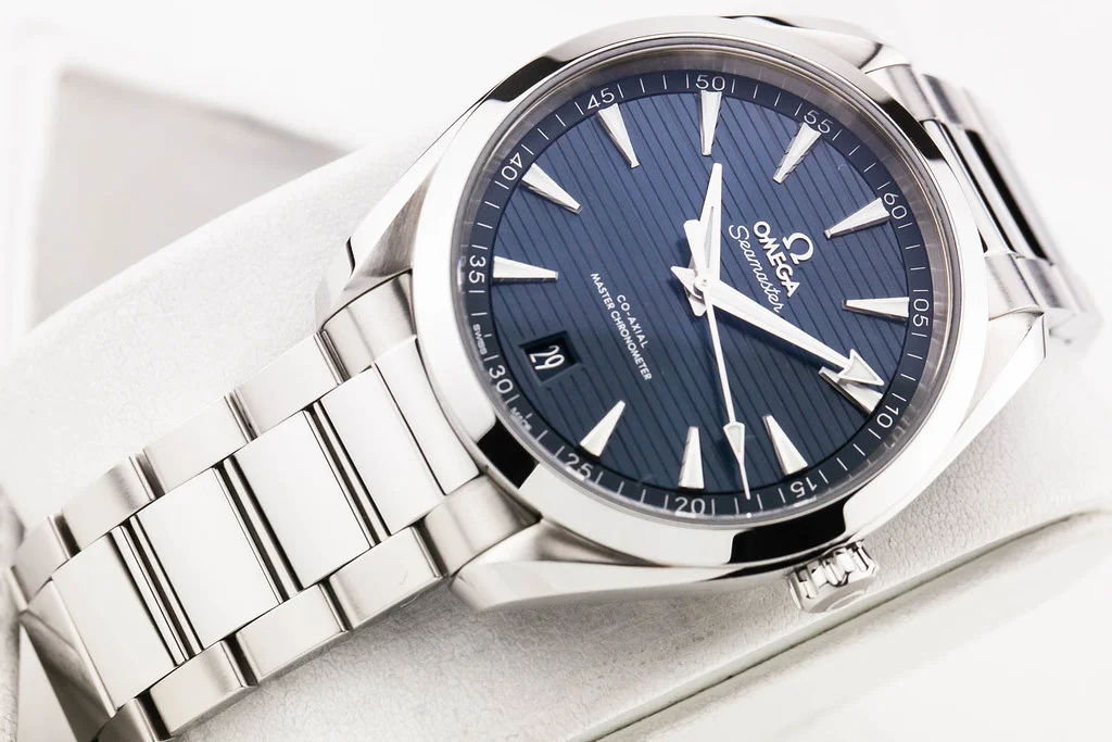 ·Up for sale is an excellent condition Omega Aqua Terra 8900 41mm with Blue Dial, reference # 220.10.41.21.03.004. It comes with all boxes, papers, booklets, and Omega Warranty Card dated July 2024.