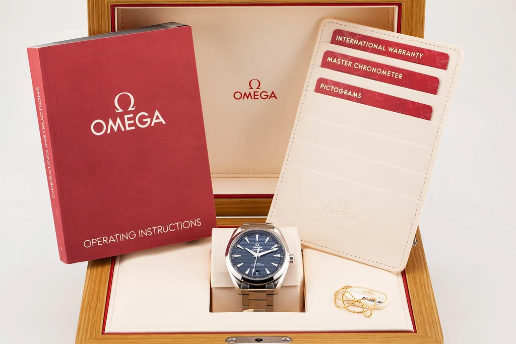 ·Up for sale is an excellent condition Omega Aqua Terra 8900 41mm with Blue Dial, reference # 220.10.41.21.03.004. It comes complete with all boxes, papers, booklets, hang tag, and Omega Warranty Card dated September 2024.