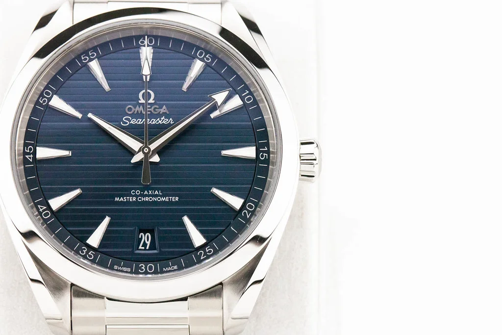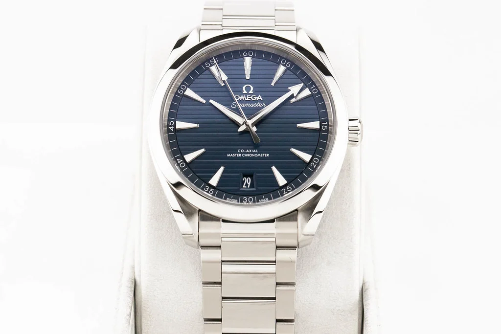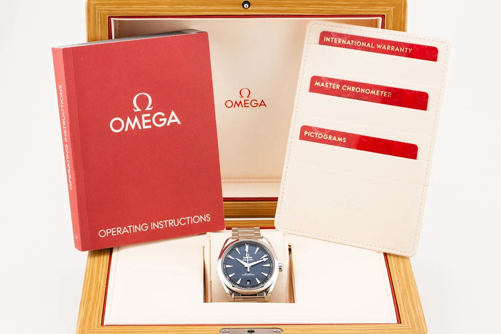 ·Up for sale is an excellent condition Omega Aqua Terra 8900 41mm with Blue Dial, reference # 220.10.41.21.03.004. It comes with all boxes, papers, booklets, and Omega Warranty Card dated July 2024.