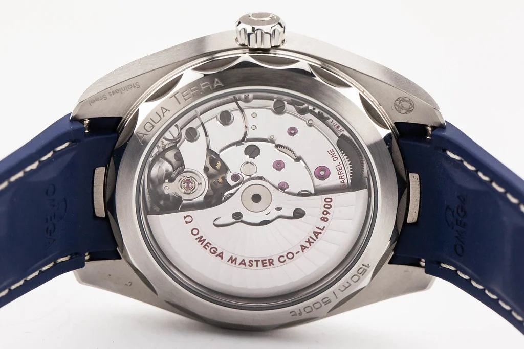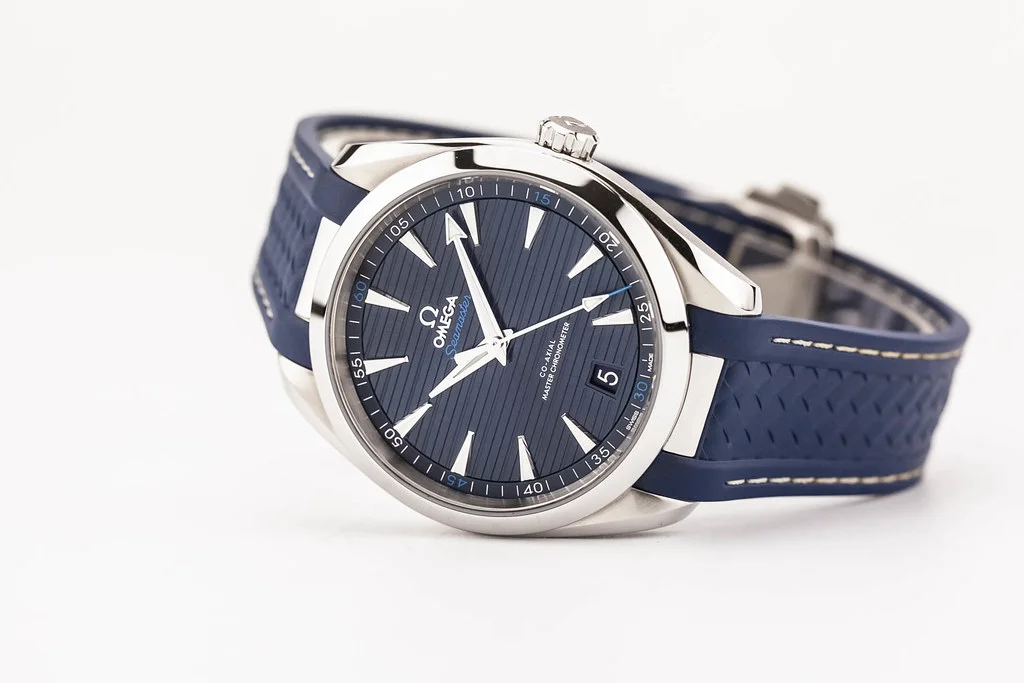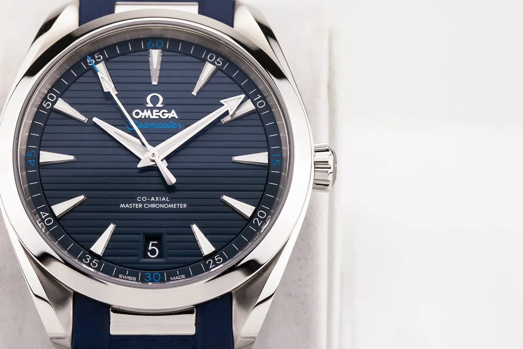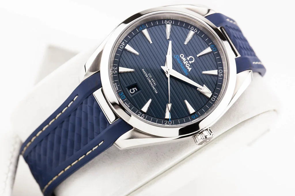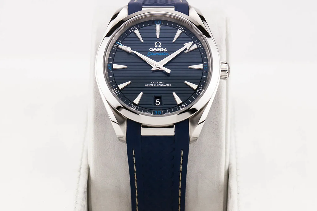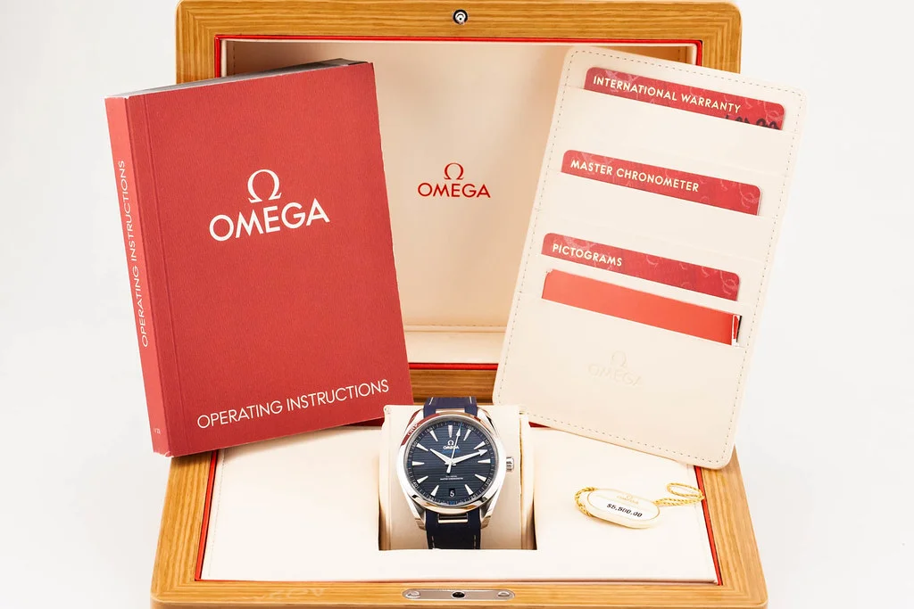 ·Up for sale is an excellent condition Omega Aqua Terra 8900 41mm Blue Dial with Blue Accents on Rubber Strap, reference # 220.12.41.21.03.001. It comes complete with all boxes, papers, booklets, hang tag and Omega Warranty Card dated January 2020.