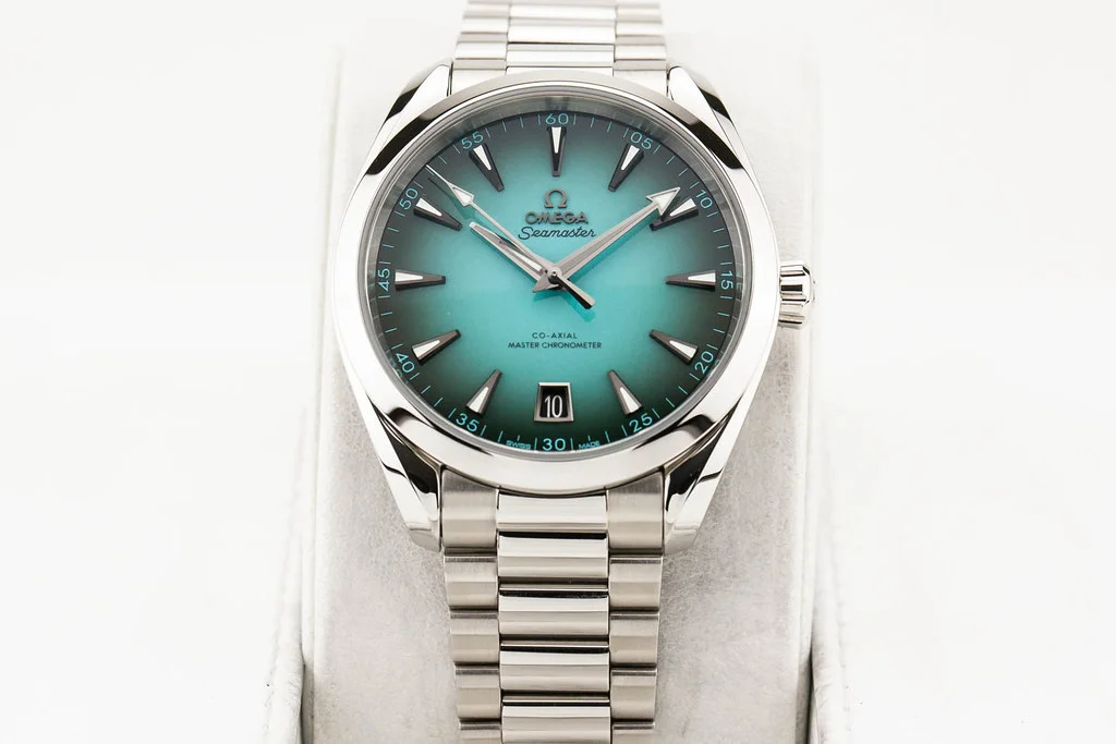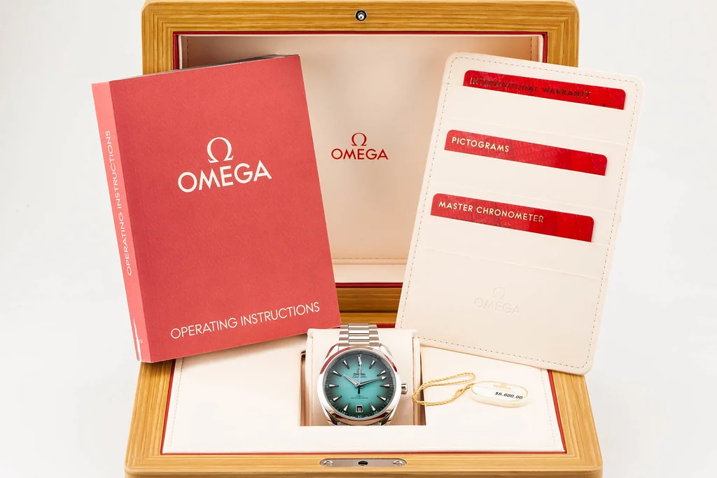 ·Up for sale is an excellent condition Omega Aqua Terra 8900 41mm Turquoise Dial on Bracelet, reference # 220.10.41.21.03.006. It comes complete with all boxes, papers, booklets, hang tag and Omega Warranty Card dated March 2025.