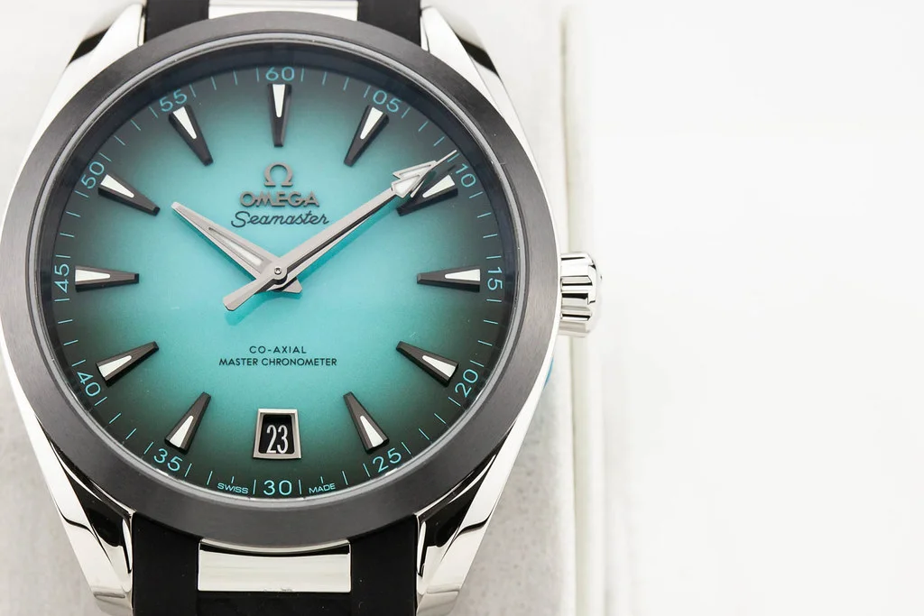 ·Up for sale is a brand new Omega Aqua Terra 8900 41mm Turquoise Dial with Black Ceramic Bezel on Rubber Strap, reference # 220.32.41.21.03.001. It comes complete with all boxes, papers, booklet, hang tag and Omega Warranty Card dated January 2026.