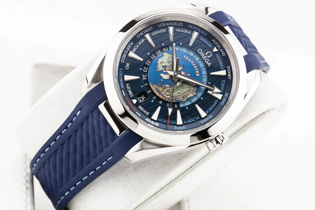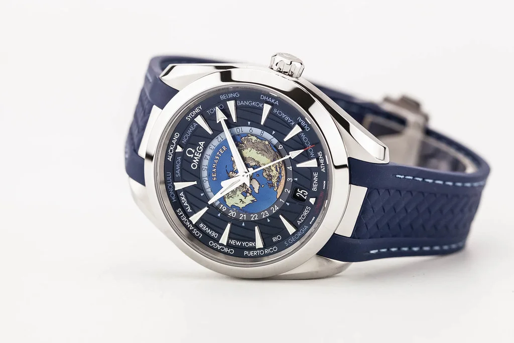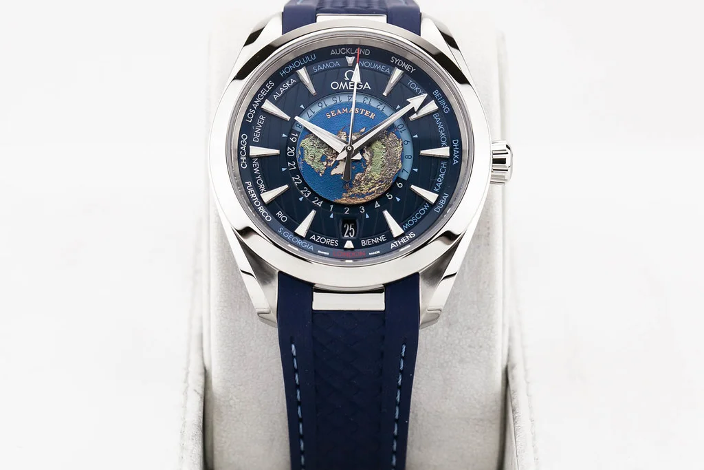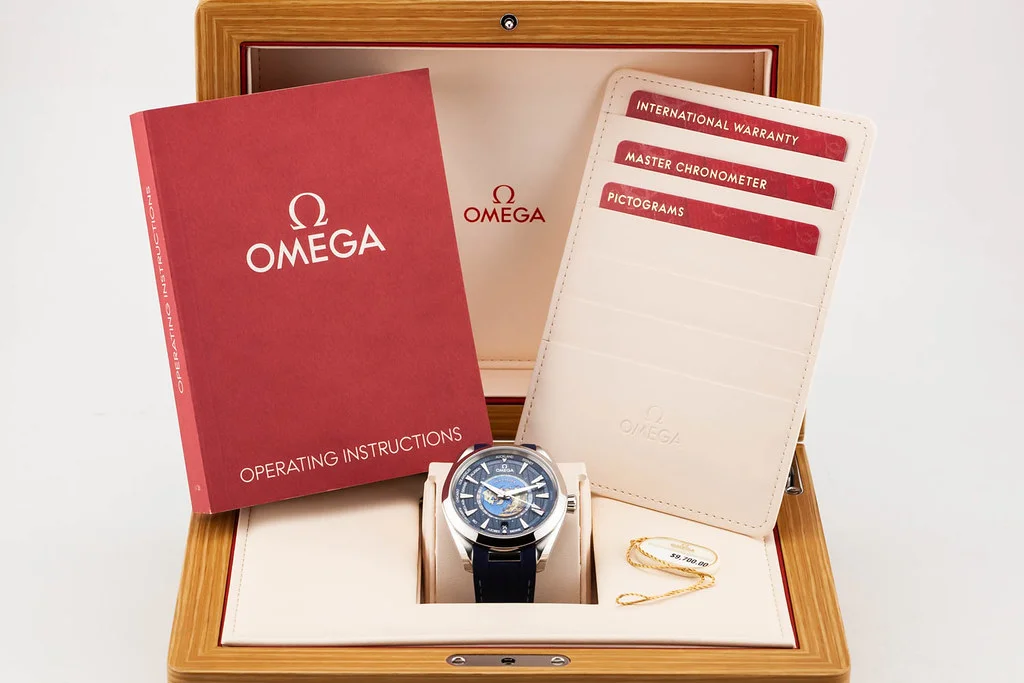 ·Up for sale is a brand new Omega Aqua Terra 43mm Worldtimer on rubber strap with deployment clasp, reference # 220.12.43.22.03.001. It comes complete with all boxes, papers, booklets, hang tag and Omega Warranty Card dated April 2025.