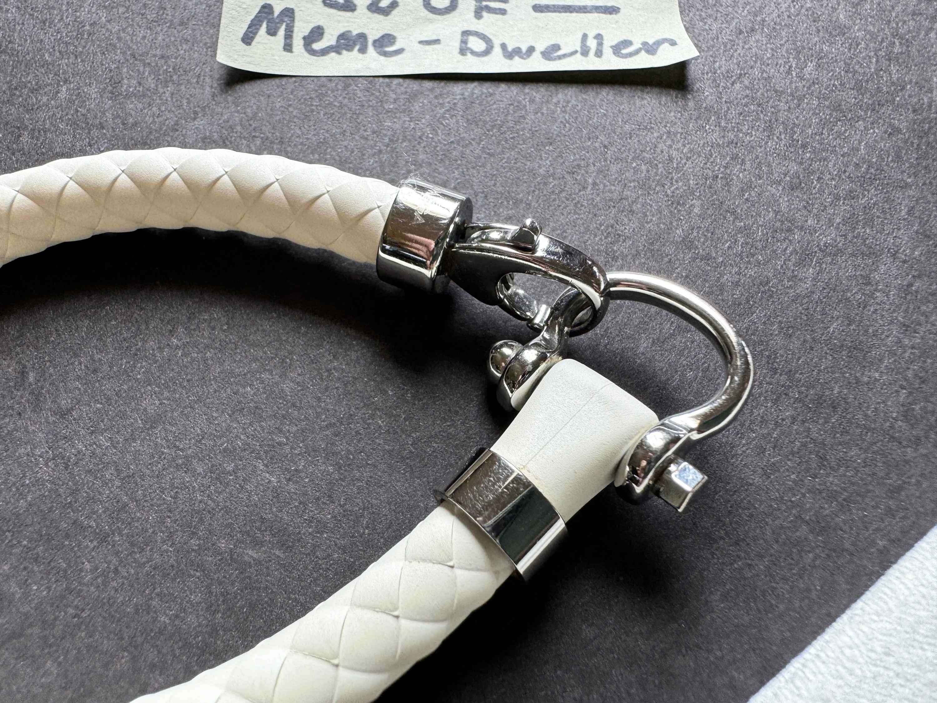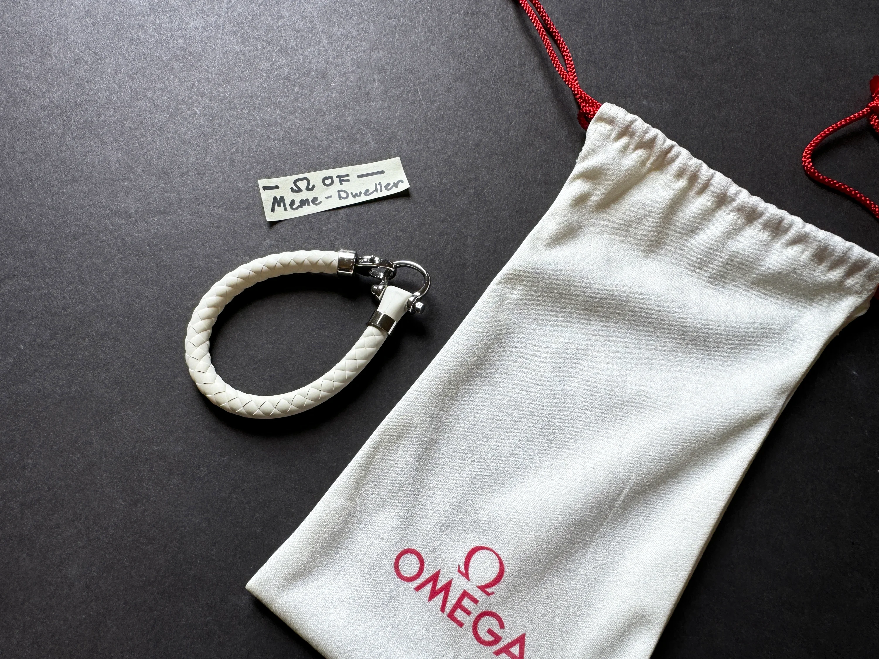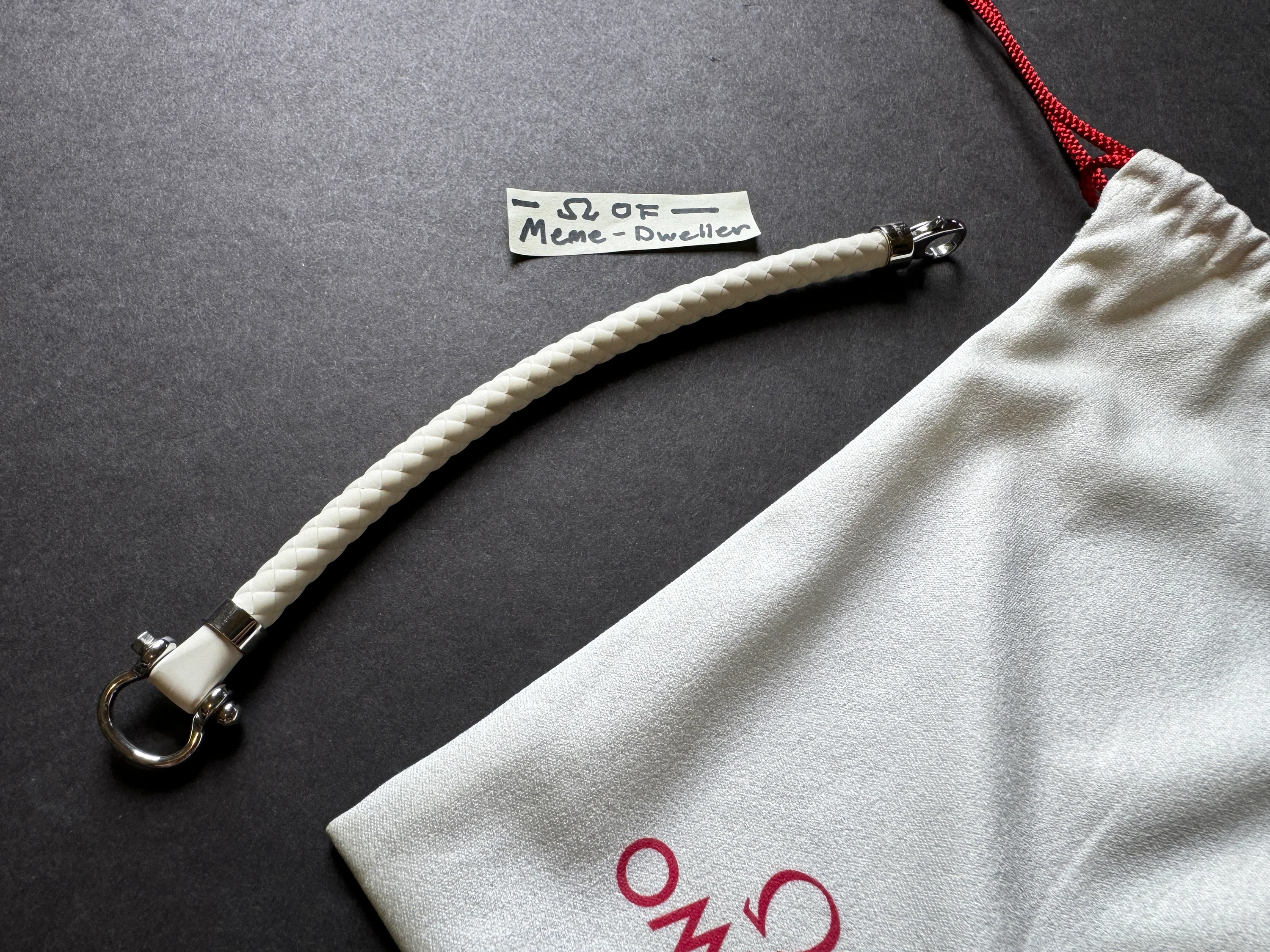 ·Up for sale is a pre-owned genuine Omega white rubber & stainless steel sailing bracelet. Size Medium (M). In overall excellent condition with scratches from regular wear on the polished stainless steel hardware. No box or papers, but comes with a dust cover pouch. The M size is recommended by Omega for a wrist size of 5.5 to 6.3 inches.