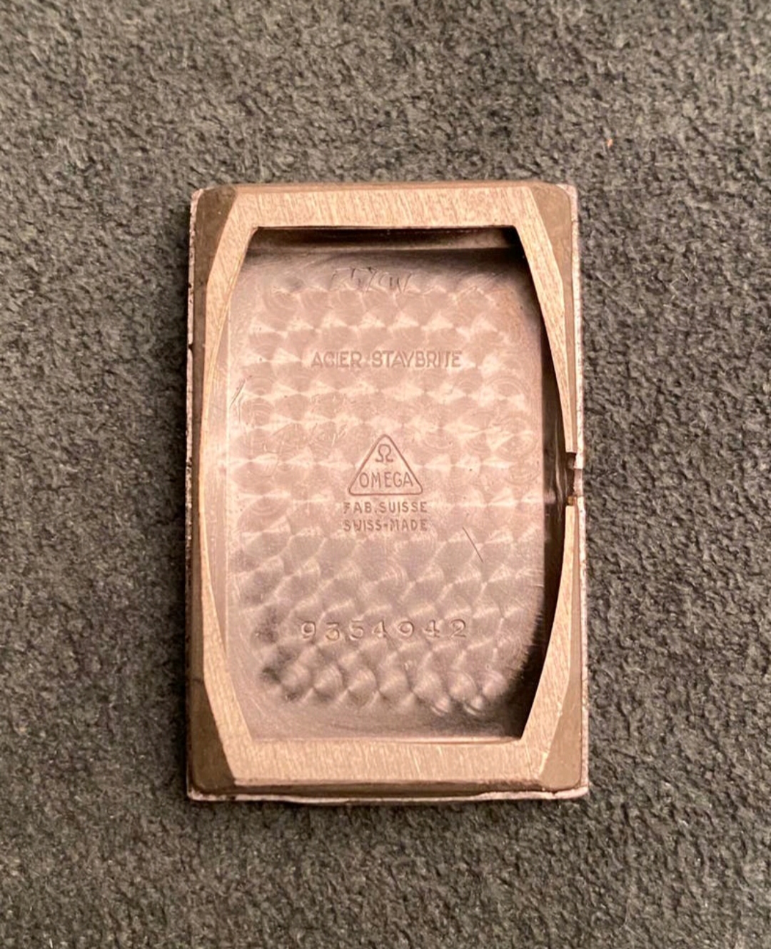 Black goop. Regulator off scale. Definitely needs a service, it’s a beautiful watch. Should a Staybrite case look so “gold” it is not marked as plated.