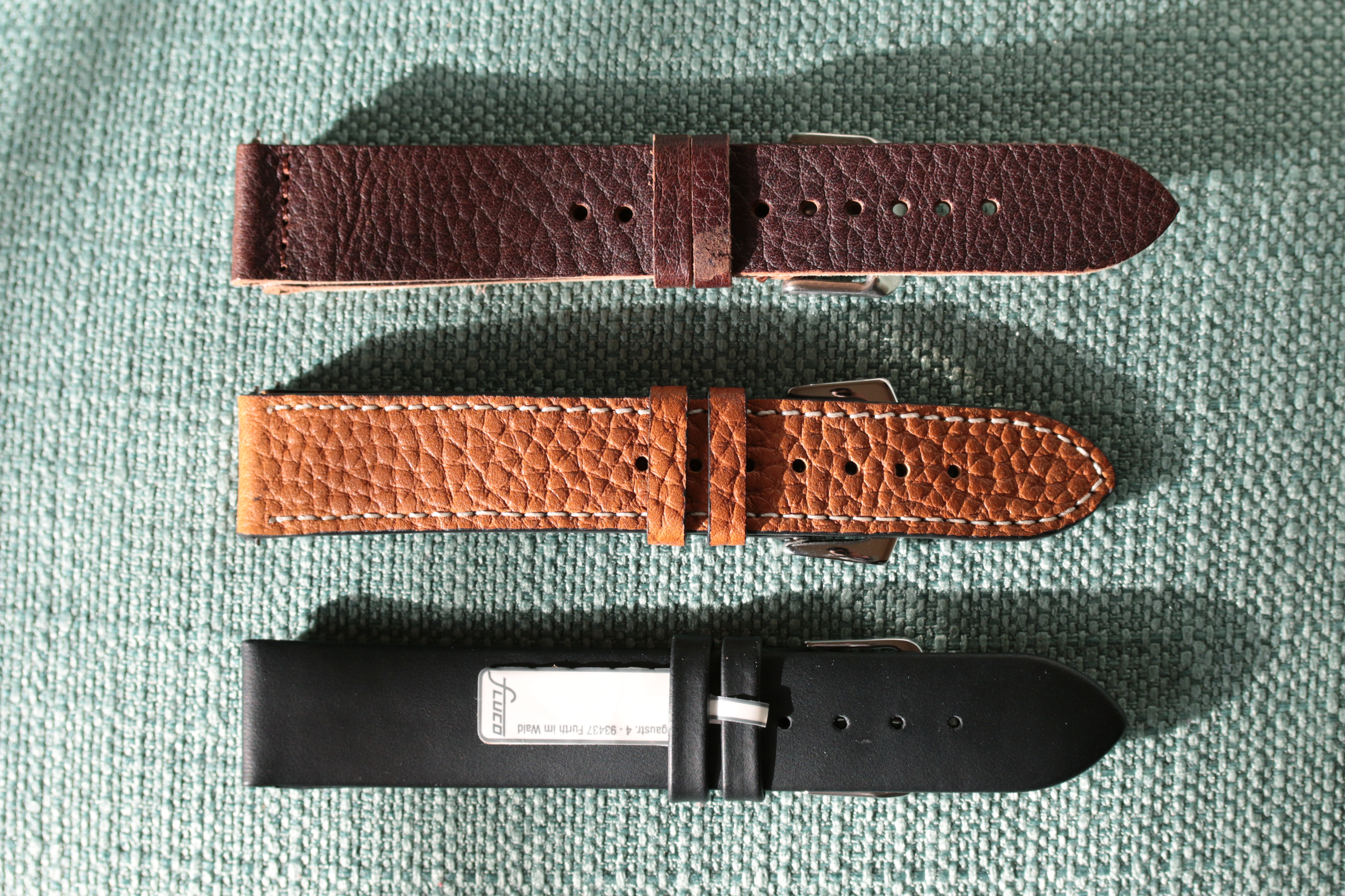 2x Cheapestnatostraps leather offerings that match the watch