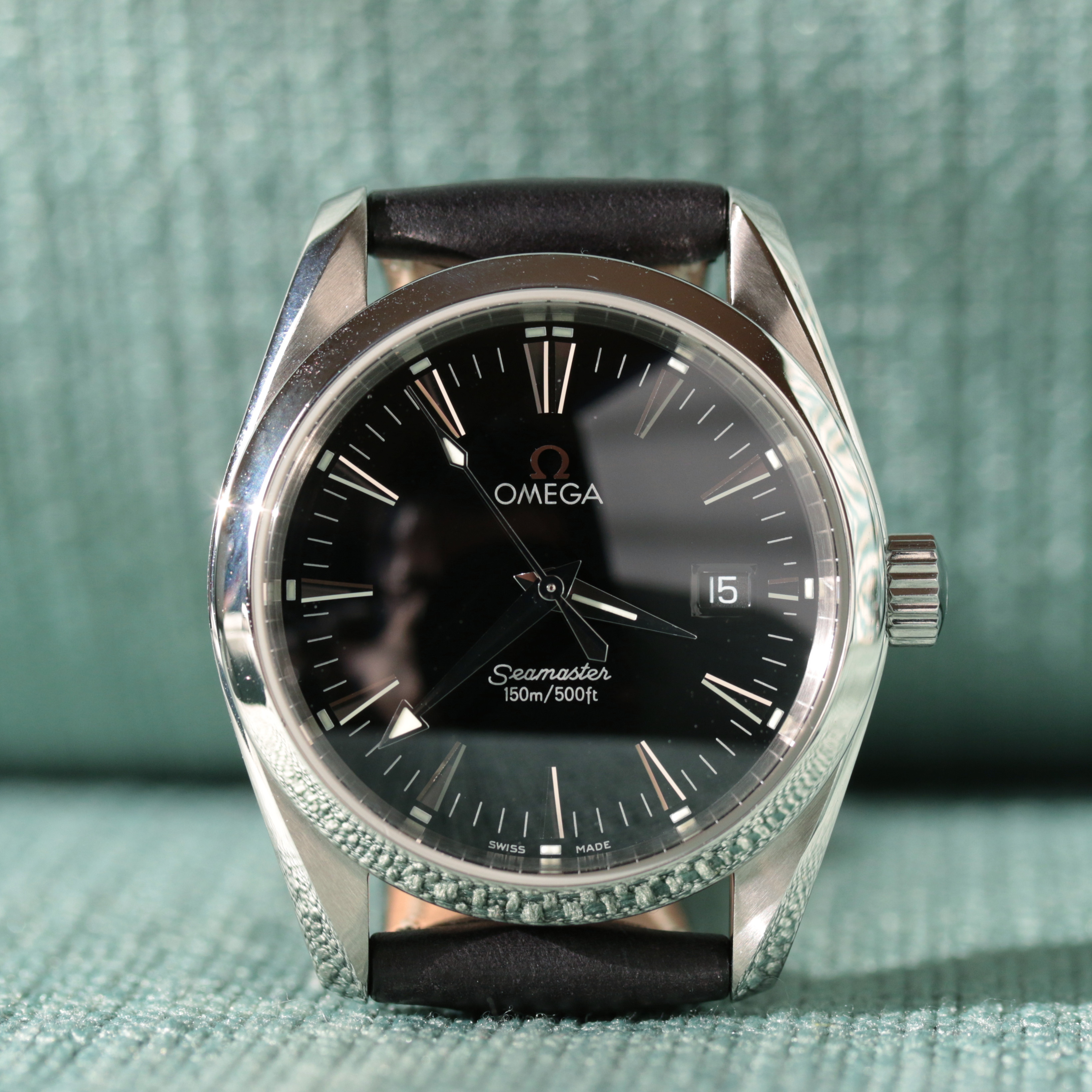 ·For sale here is a 2006 Omega Aqua Terra Quartz Ref 2518.50 with box and paper. This is the first generation AT with a 36.2mm case. The watch has a deep black lacquer dial and polished hour indices. One unique feature of this movement is that it has an independent hour hands for quick time zone adjustment.