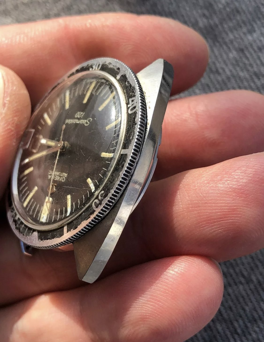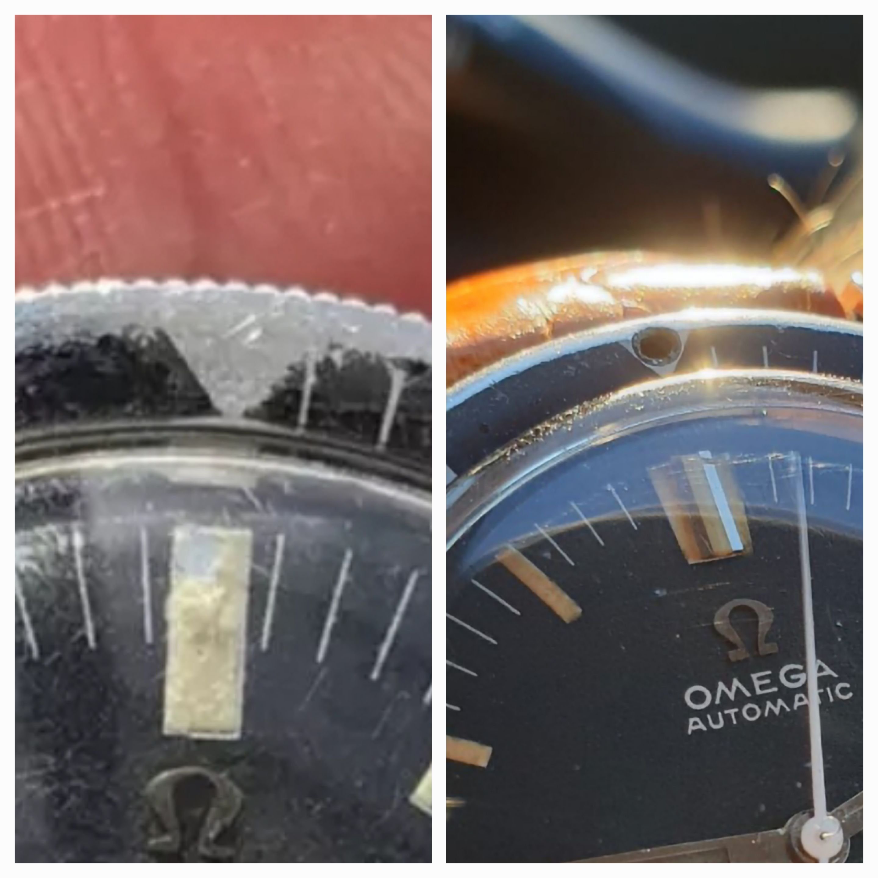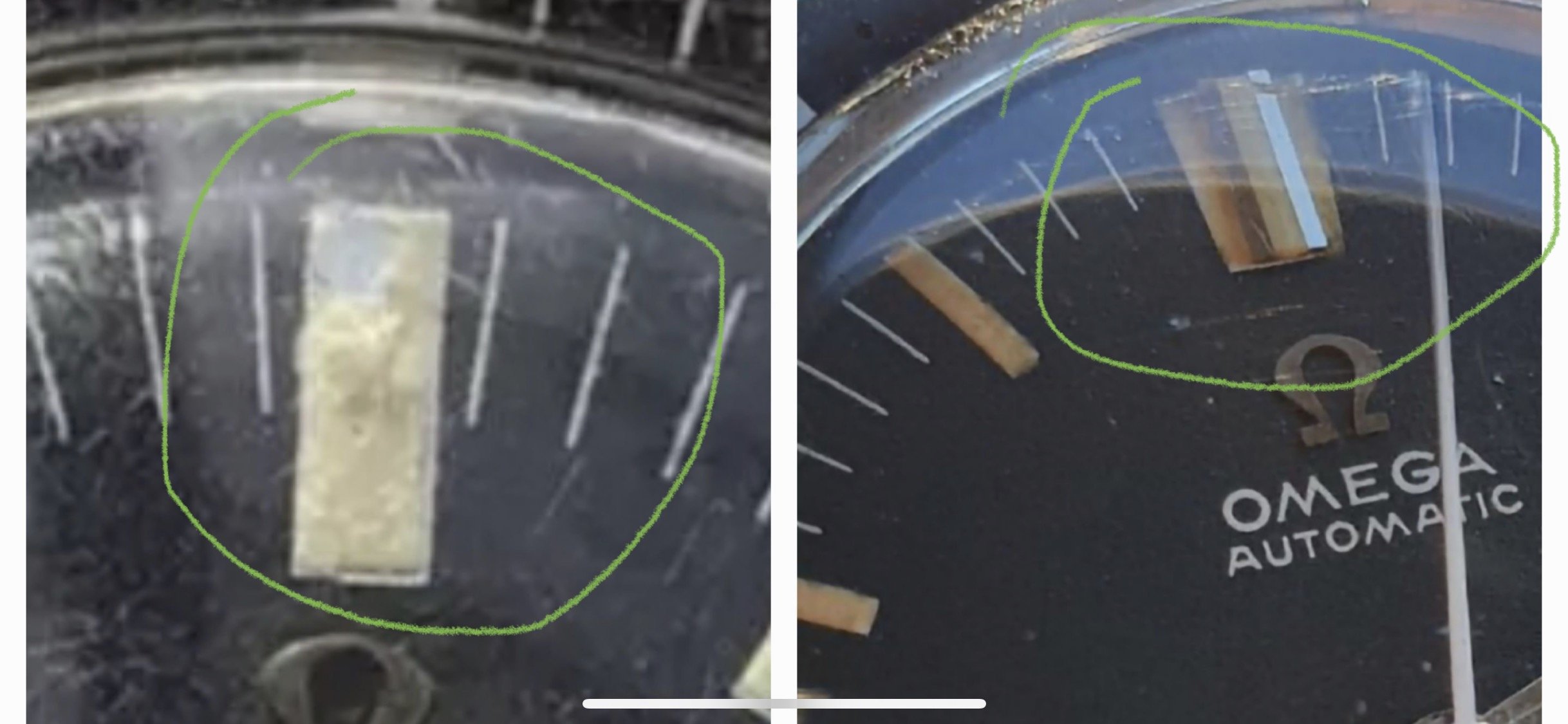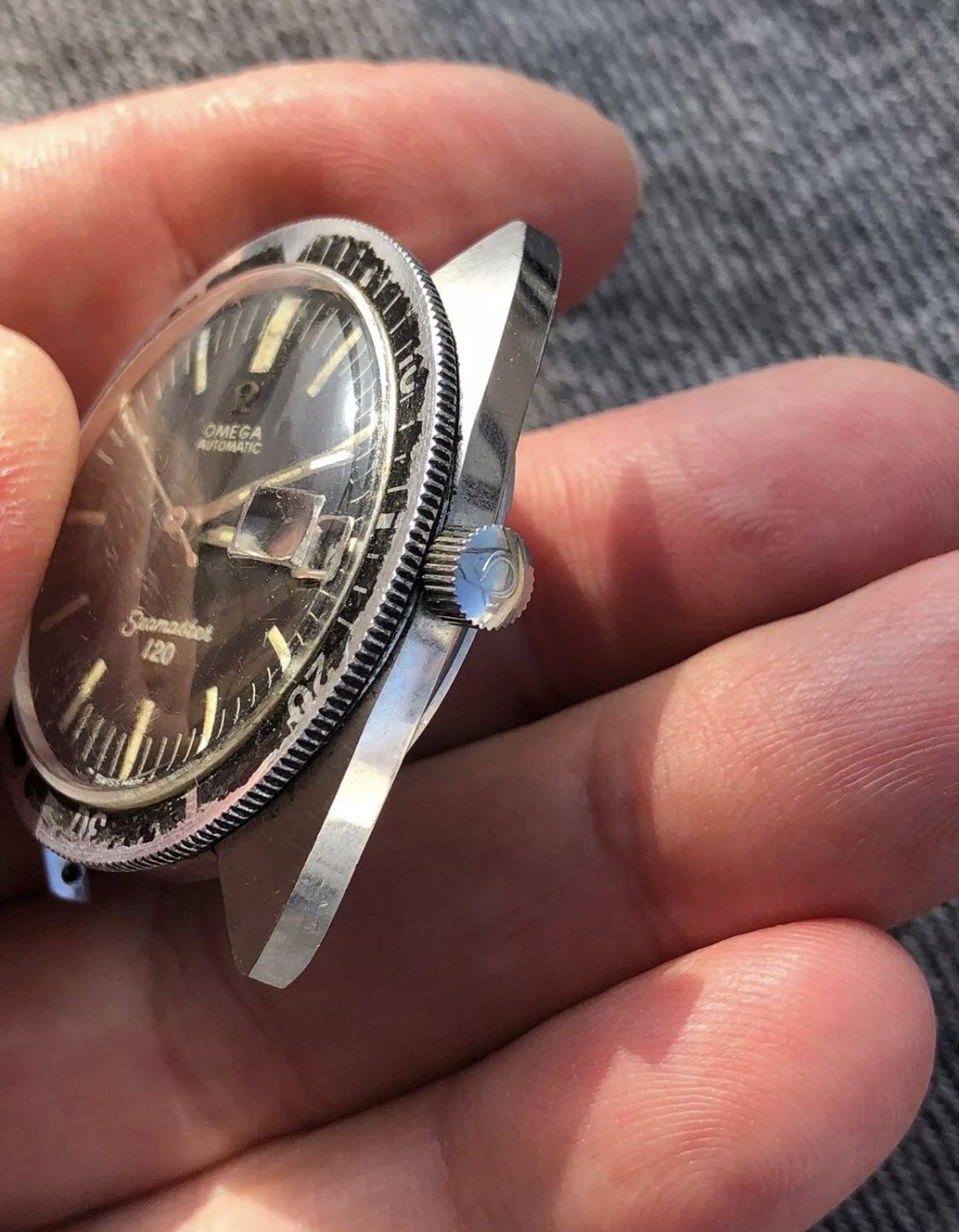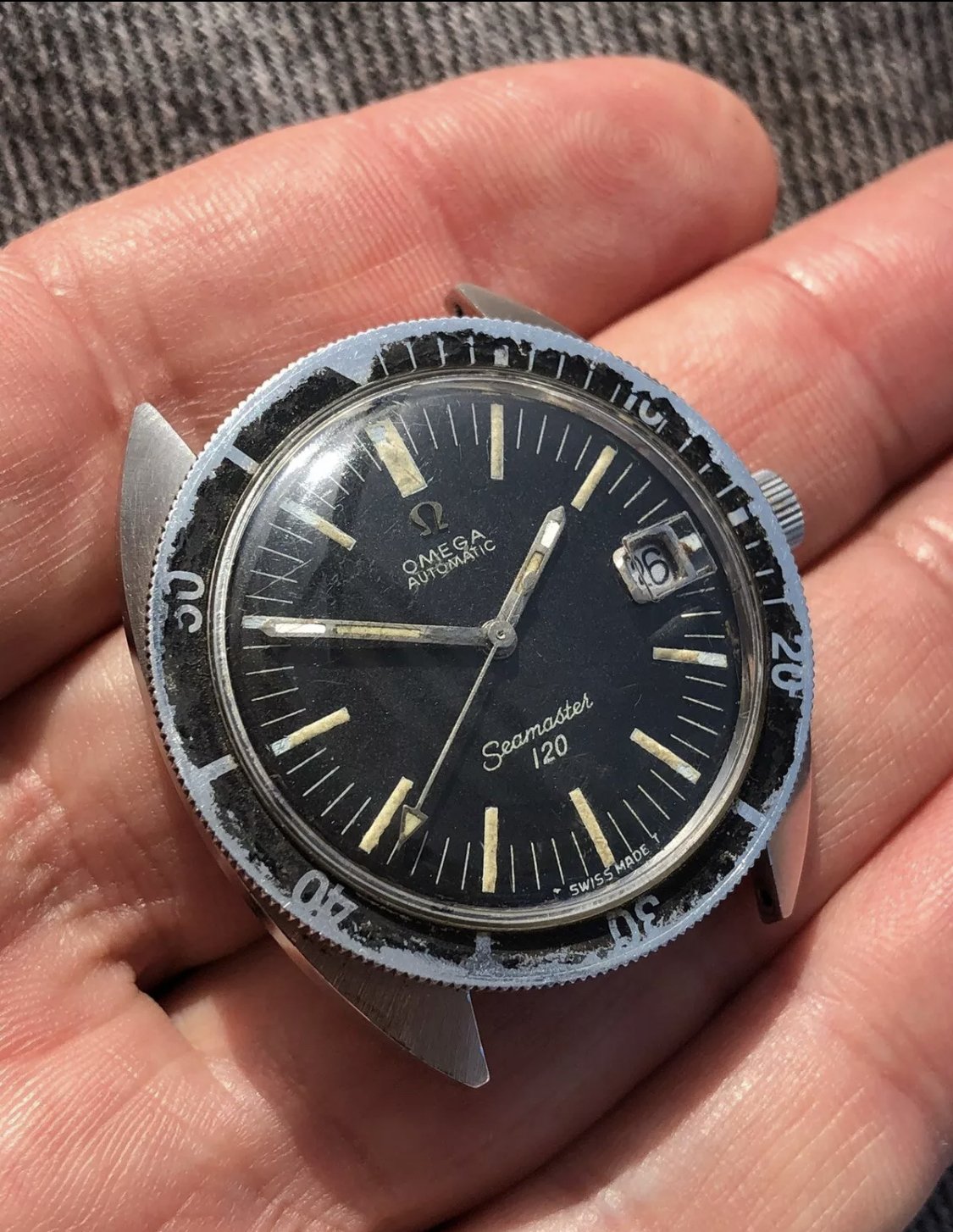 I came across this Seamaster 120, but when comparing to other items at Chrono I noticed that the hands and bezel are a bit off.