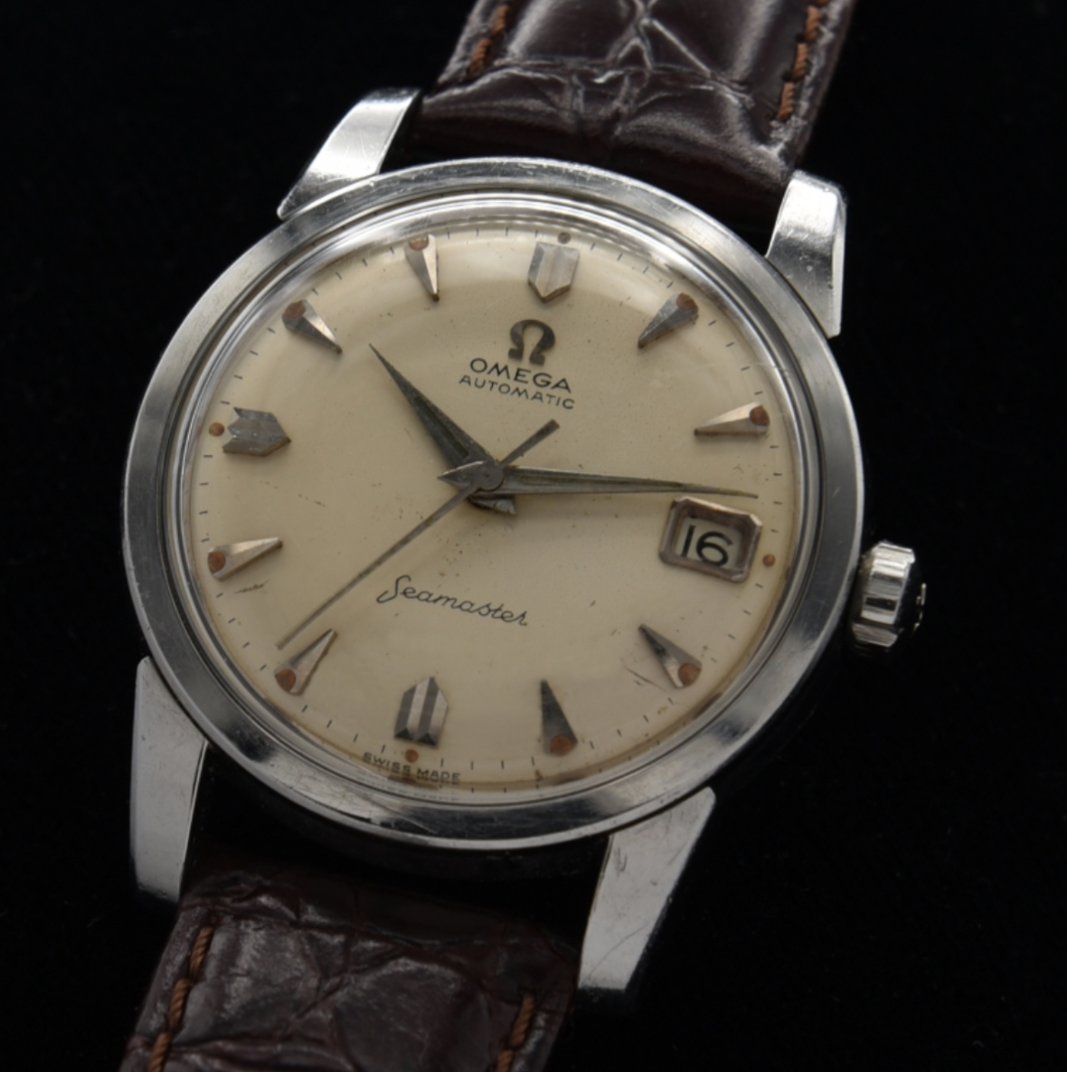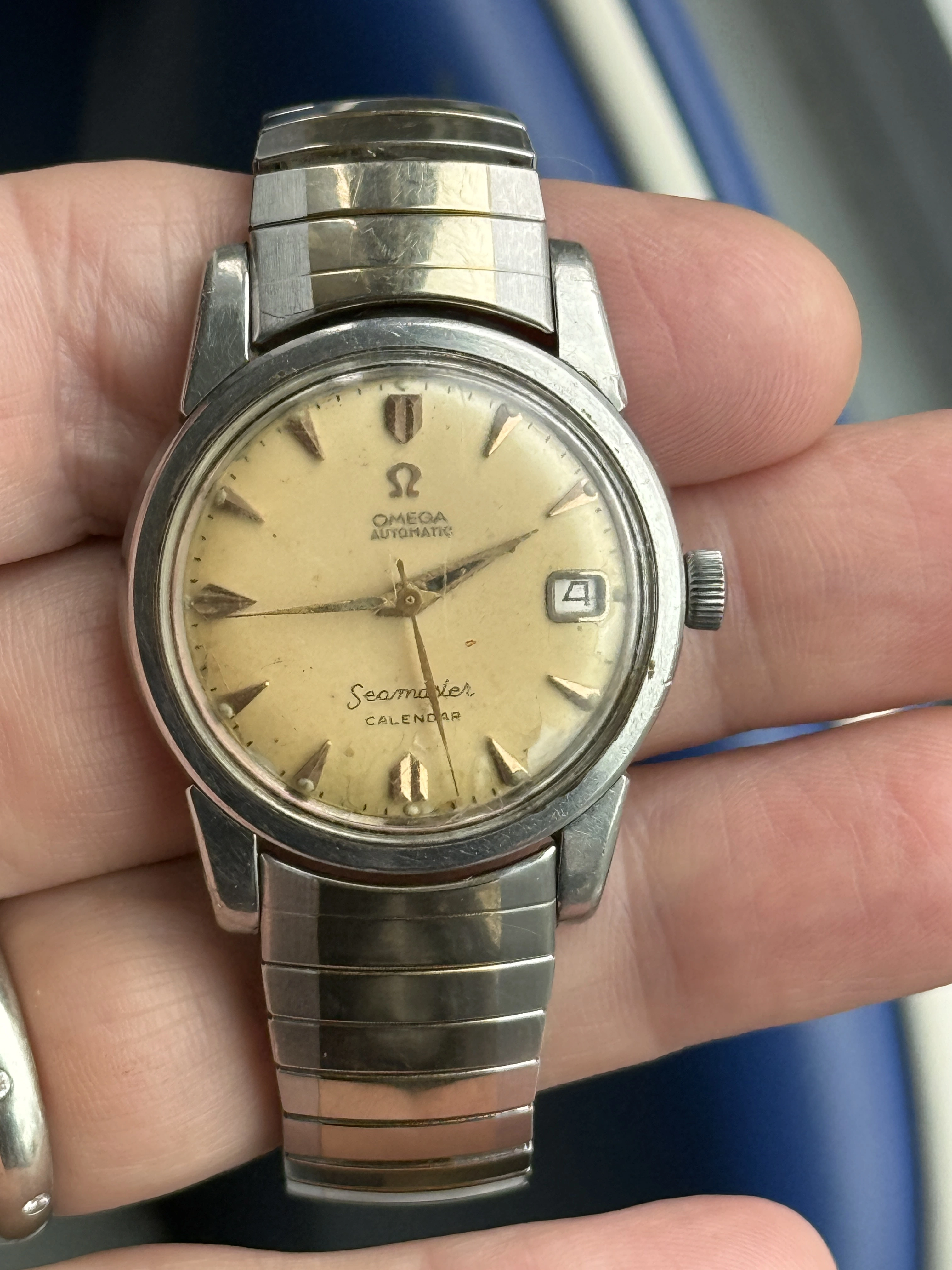 ·This Omega Seamaster Calendar stands out due to its unique rectangular 9 o’clock marker and the absence of "Swiss Made" at the bottom of the dial.