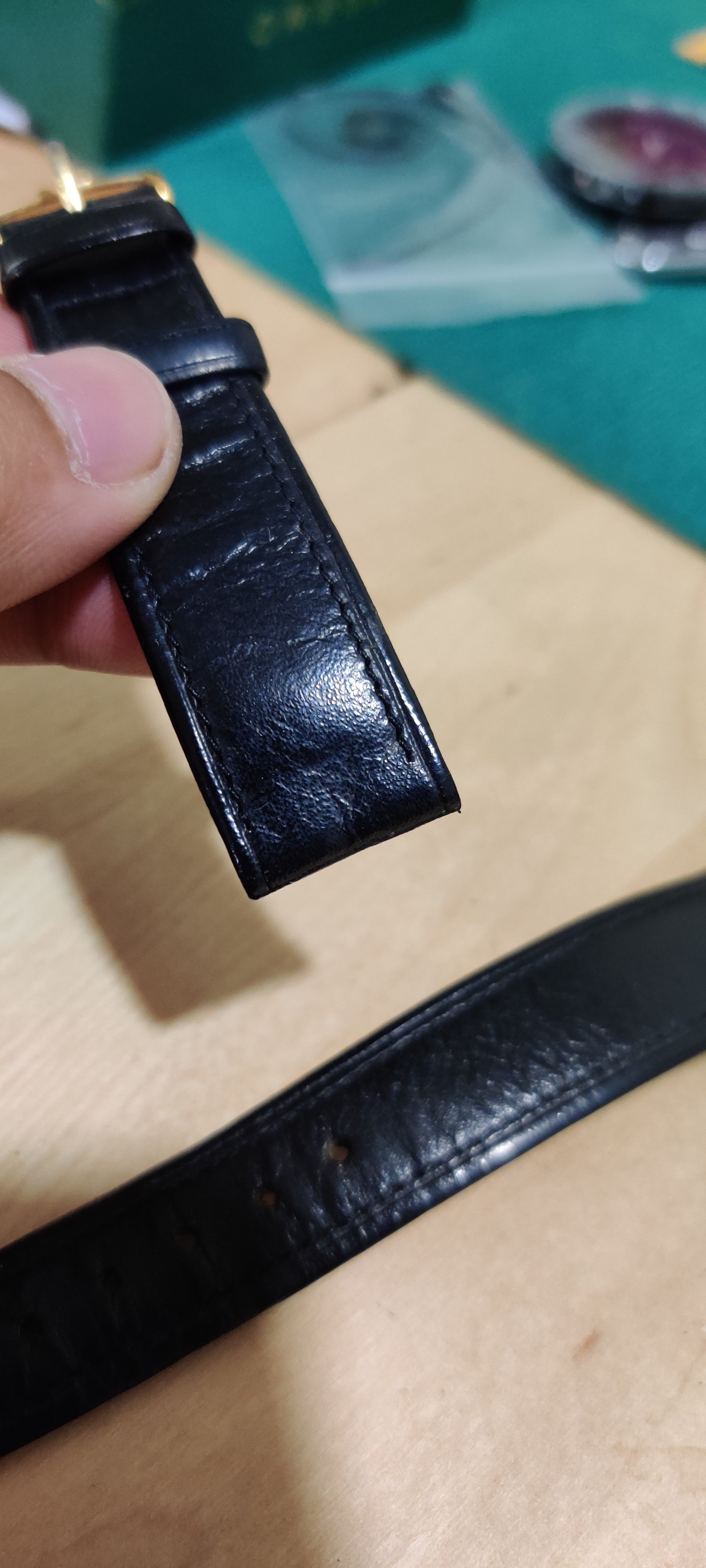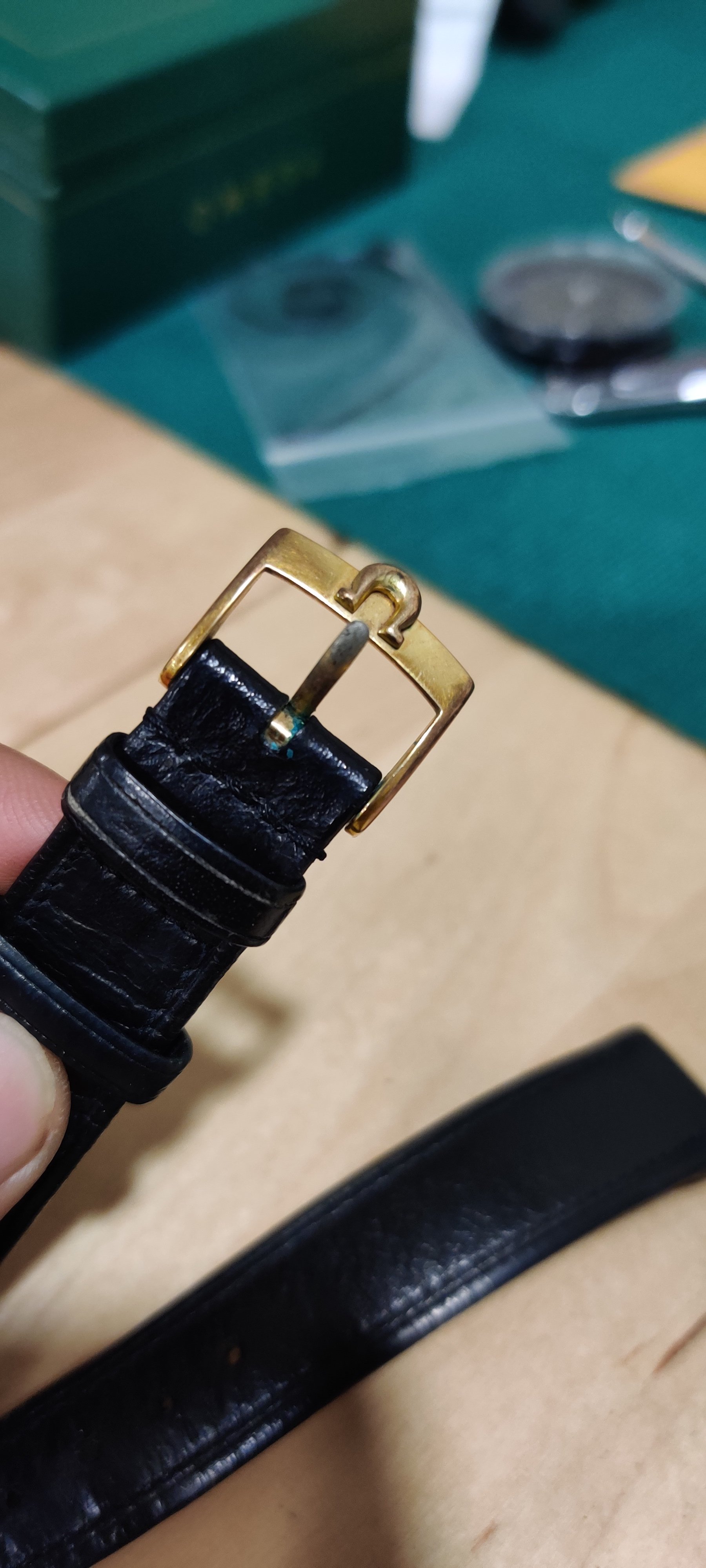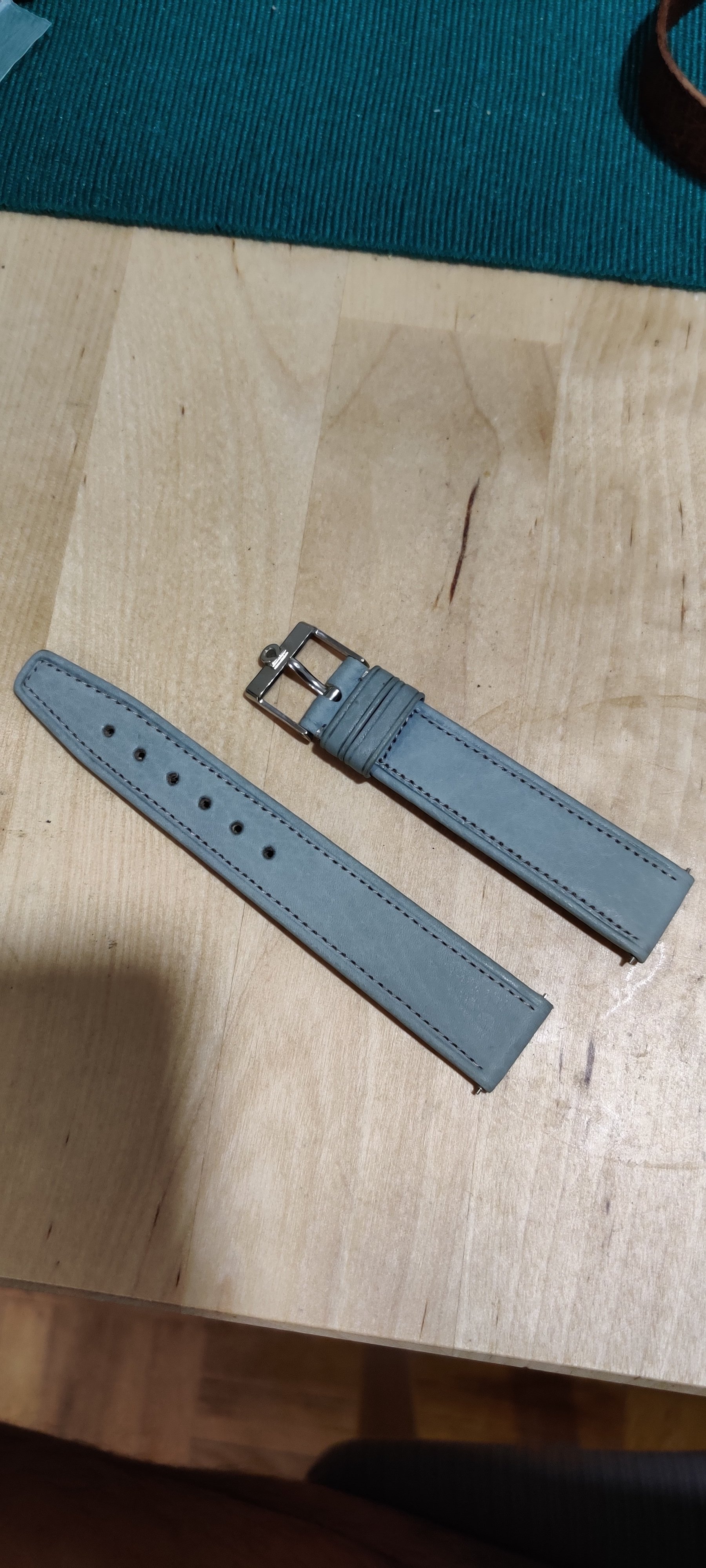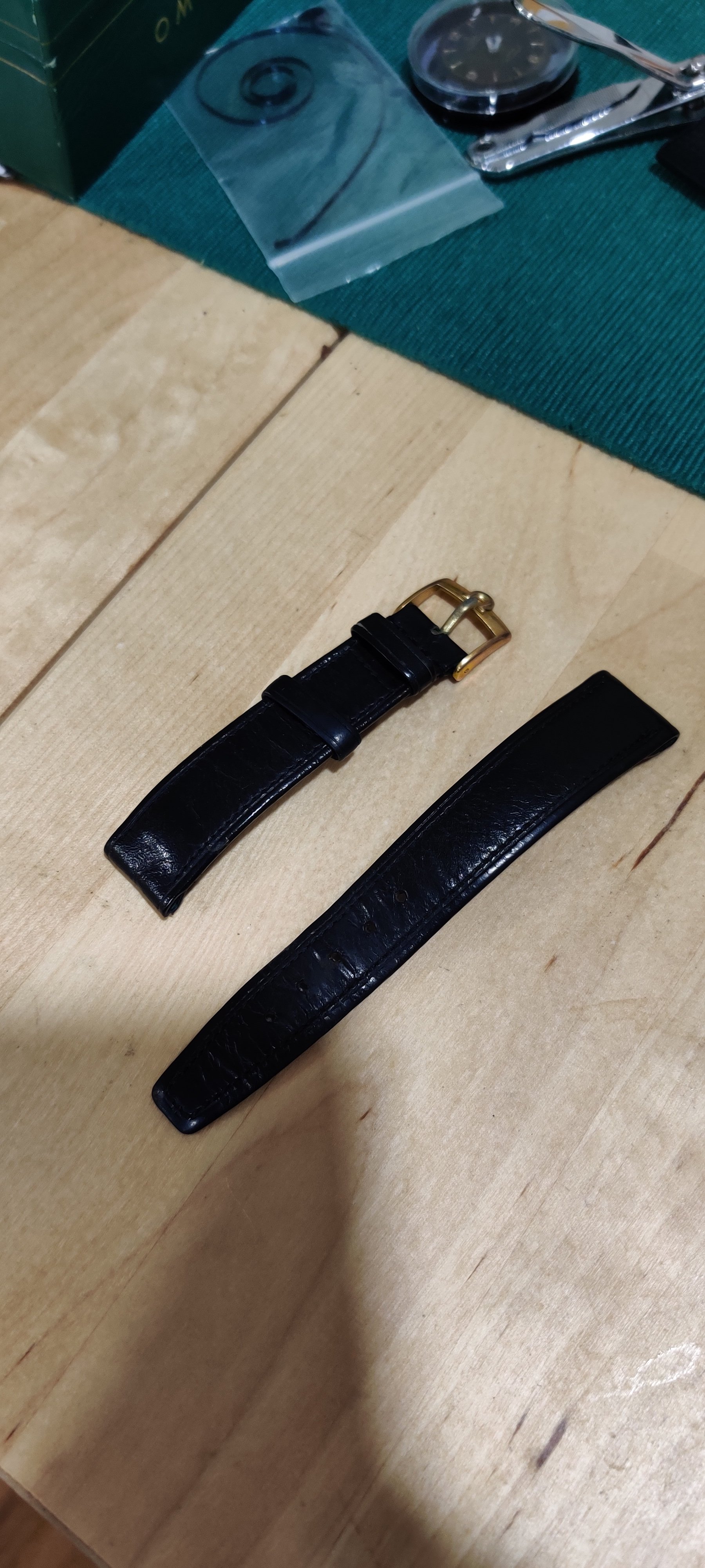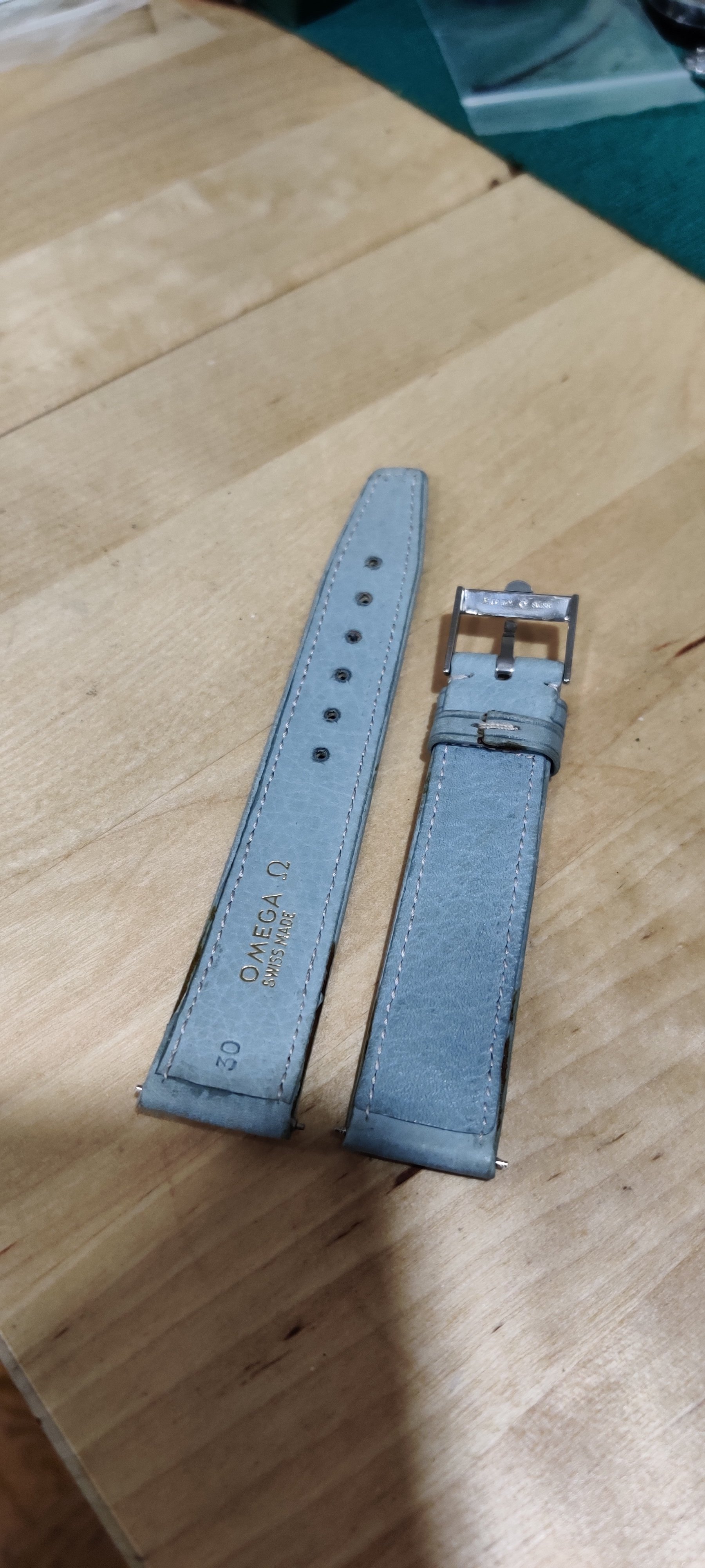 Sold - $95 shipped USA: One light blue/gray Omega Strap, one used black calf Omega strap with buckles. I believe the blue one is unused, although the buckle middle piece may be replaced as it looks a little short. Interesting strap though, I don't recall seeing another. The other is a well used black calf with a used gold plated buckle. Both 18mm. Standard 70mm/110mm.