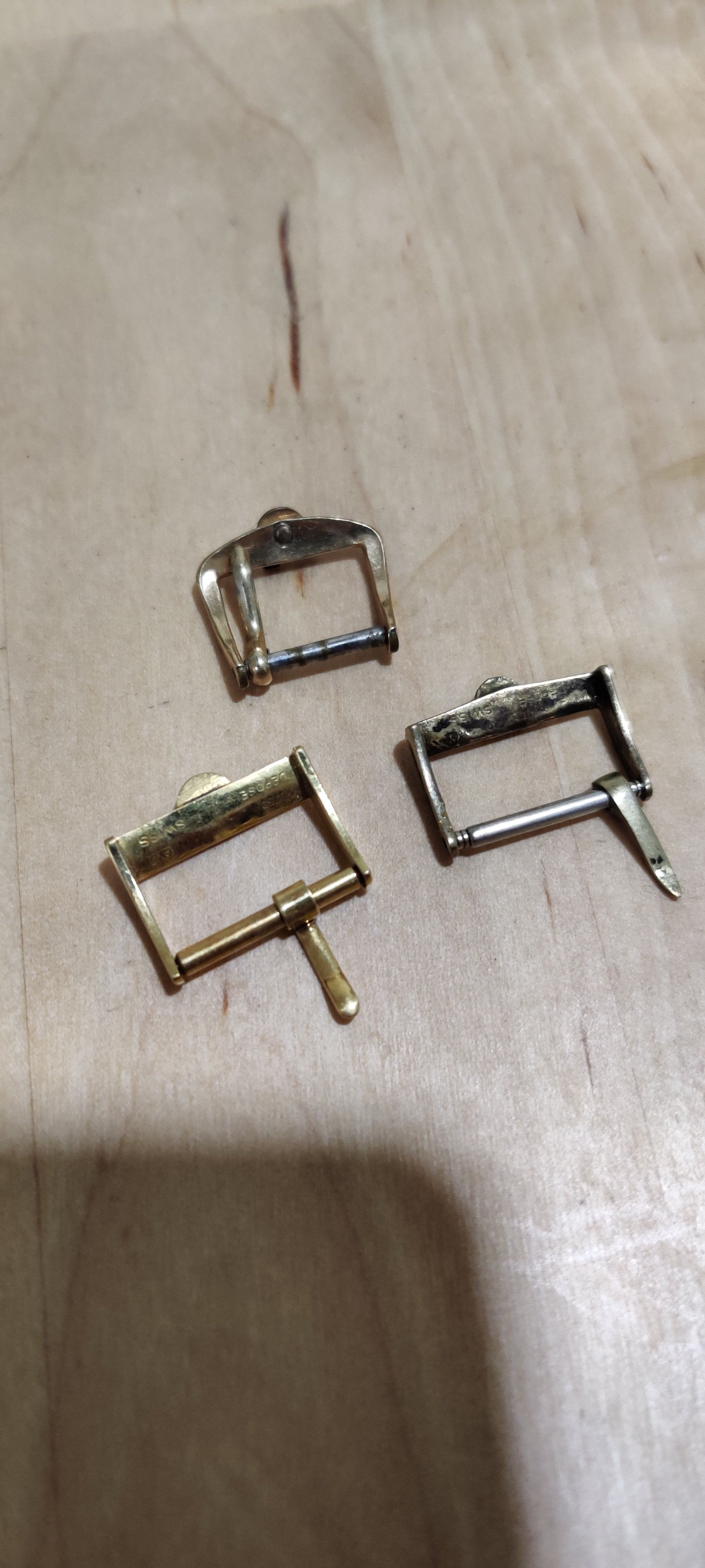 3 Omega buckles - $40 for the lot shipped to USA. 2x 15mm and 1x 15mm. Used, one is heavily tarnished but should clean up well.