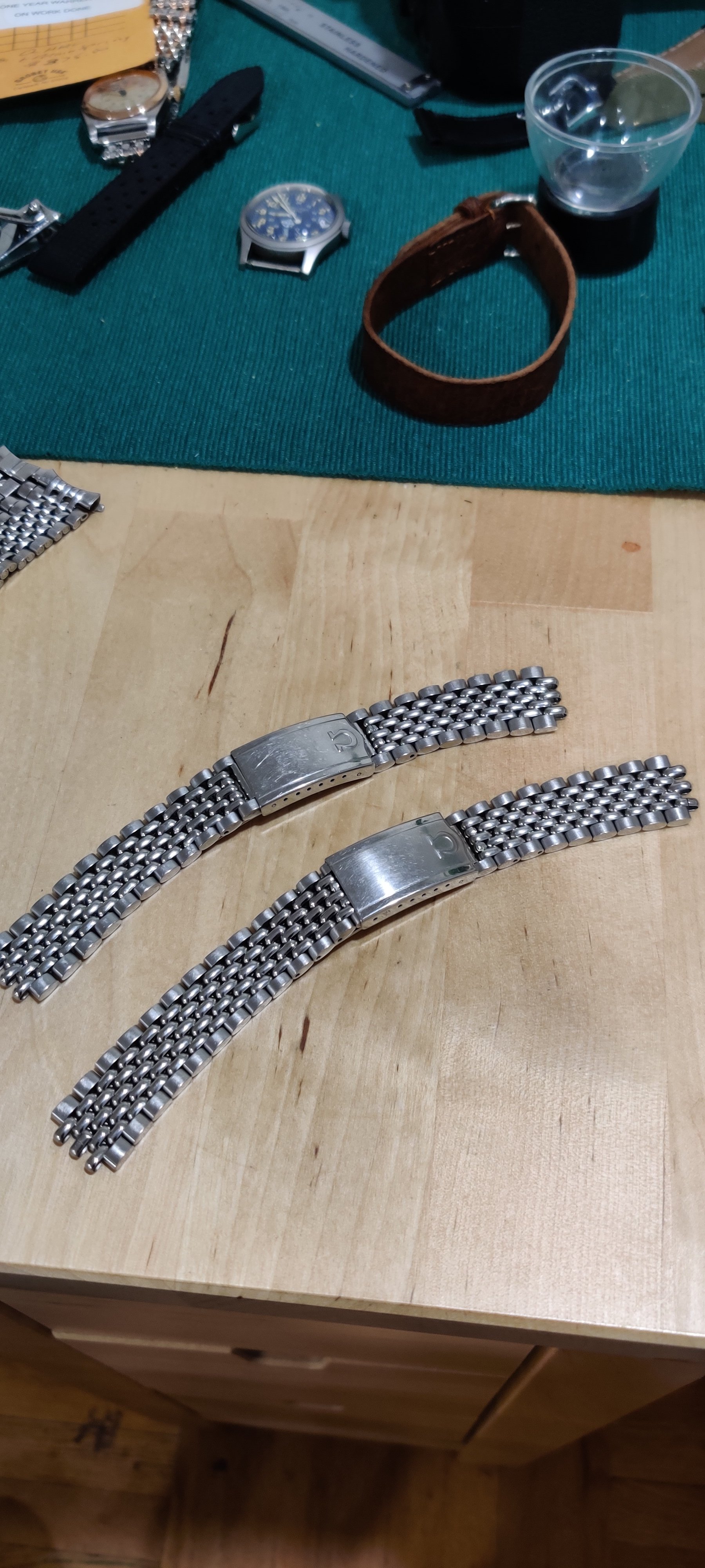 2 Bracelets for $70 shipped USA - both around 18mm. Baldwin and Spiedel BOR bracelet. Both decently worn with a little stretch. Baldwin is about 6.2 inches, Spiedel is a little smaller.