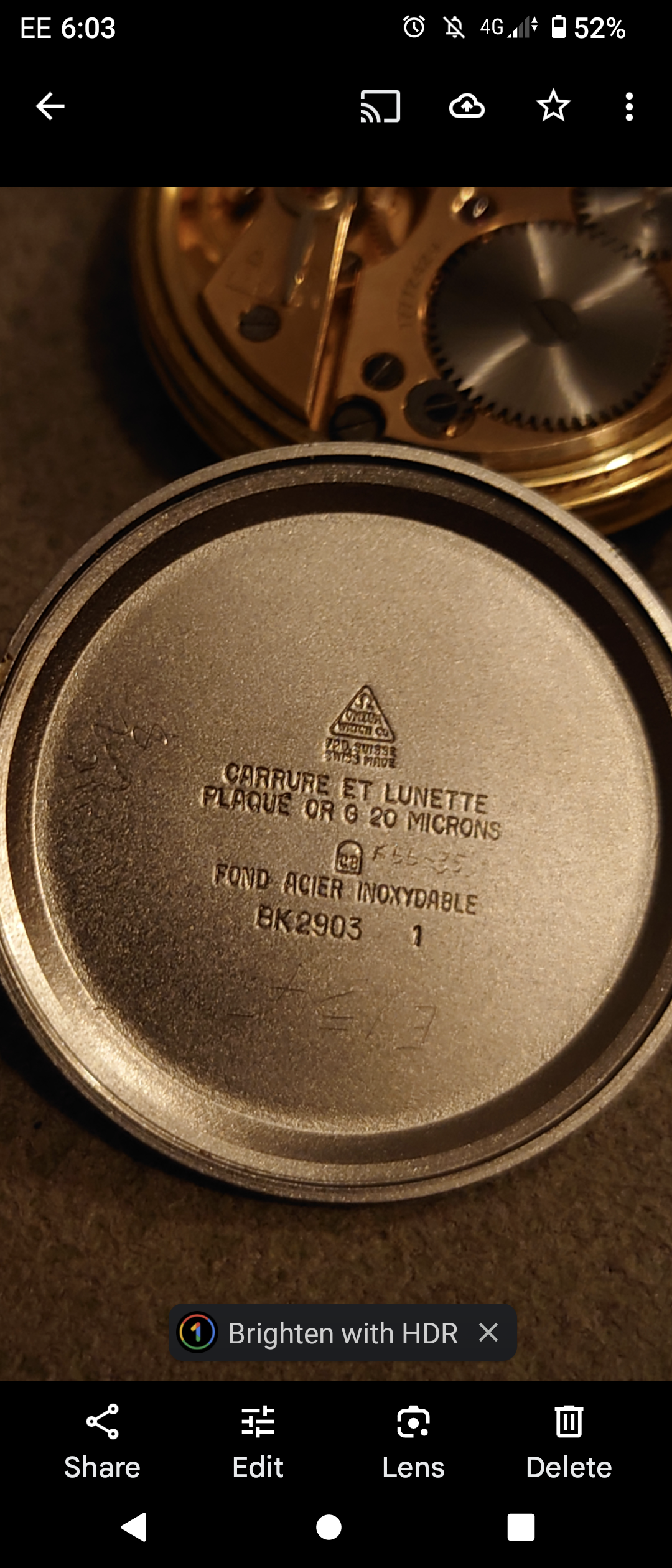 Posts 434 Likes 198 Wat-1 ·Dec 7, 2023 DON Do a google search on Omega BK 2903 and compare crowns If your crown is shinier than the case. Most likely a later replacement (gold filled/cap vs. gold plated now) Okay thanks I appreciate your reply