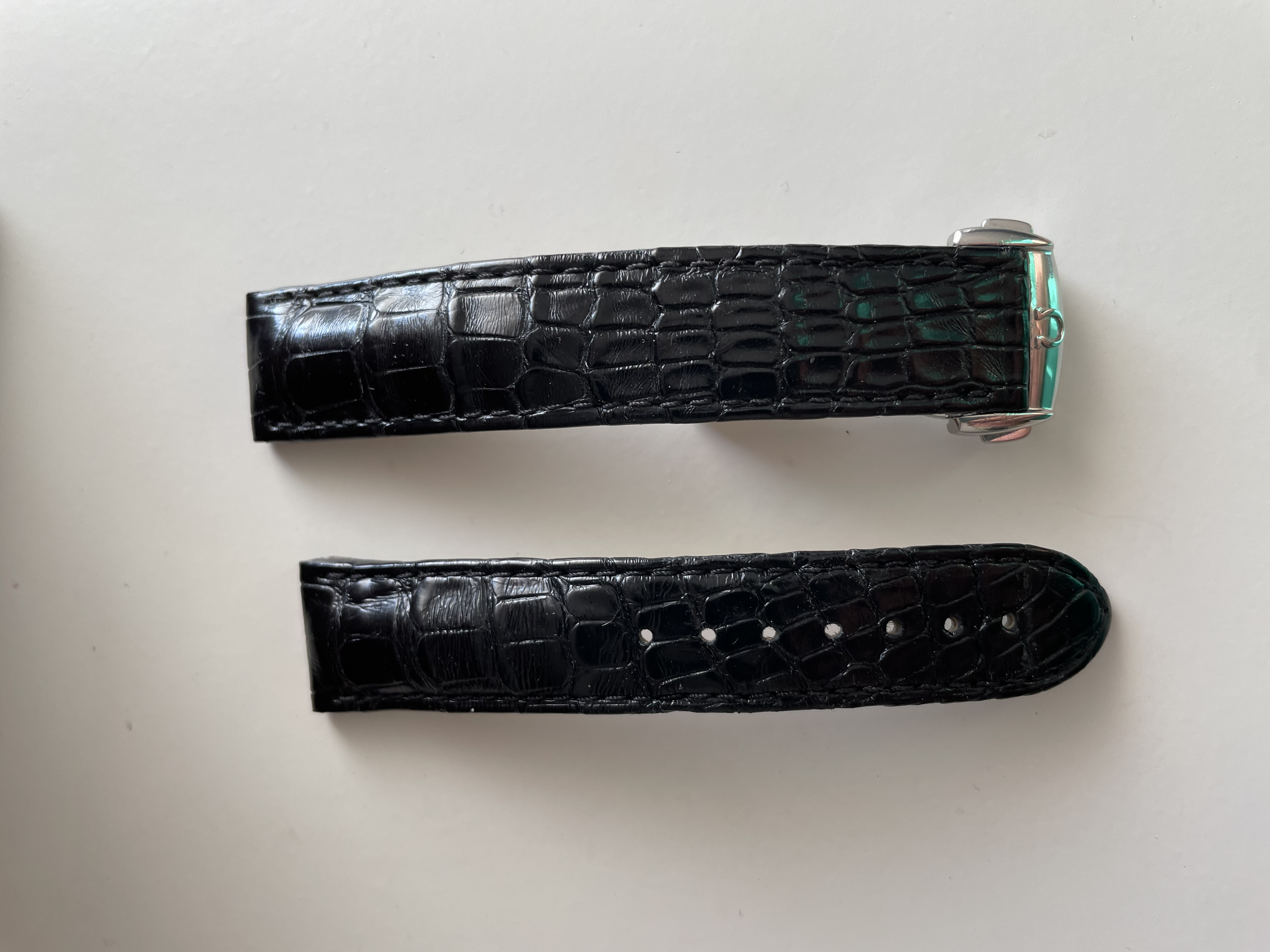 ·Up for sale is the following black leather alligator strap 20mm and deployment buckle 18mm.