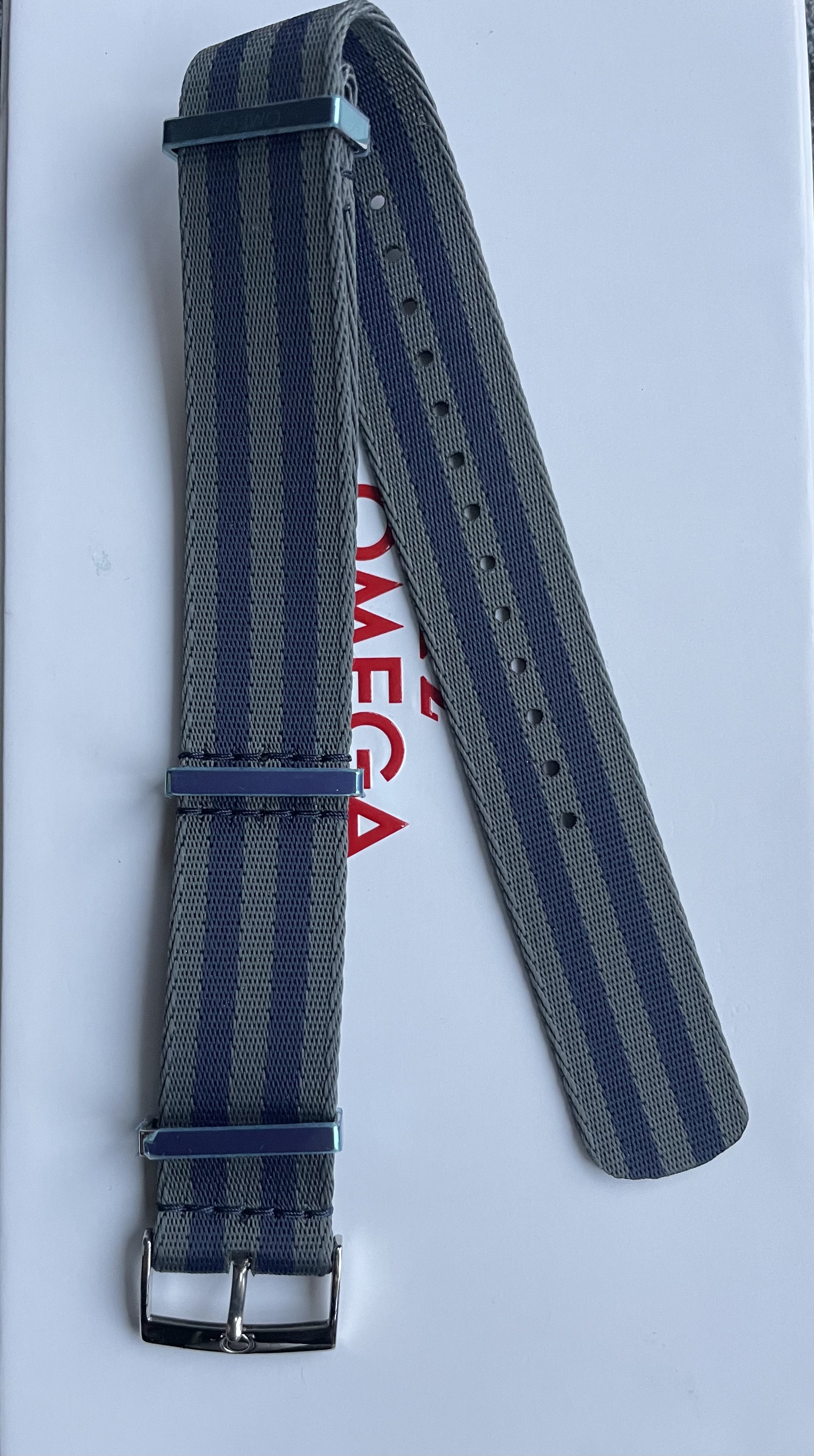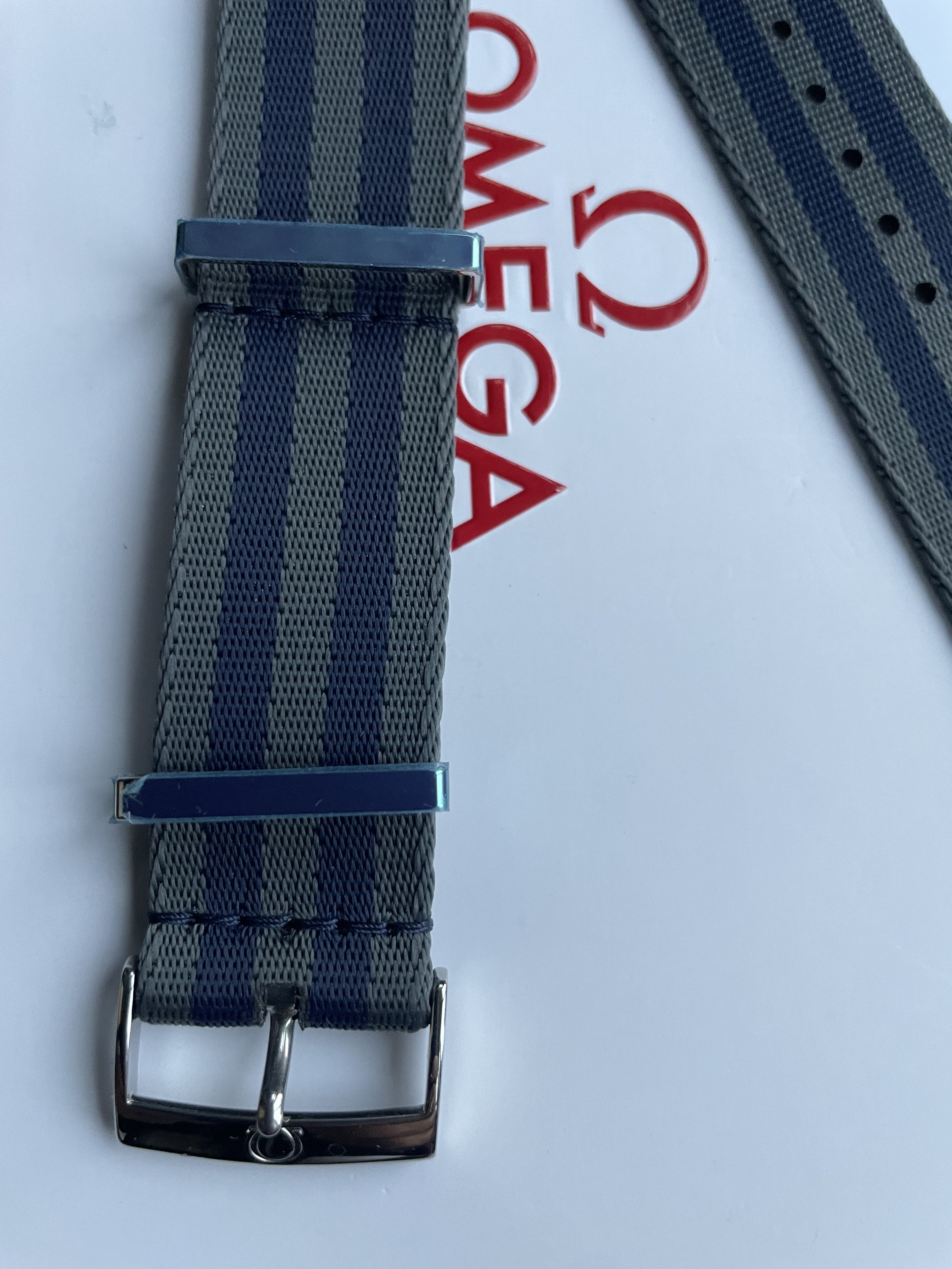 ·This listing is for Omega 21mm five stripe blue/grey NATO strap.