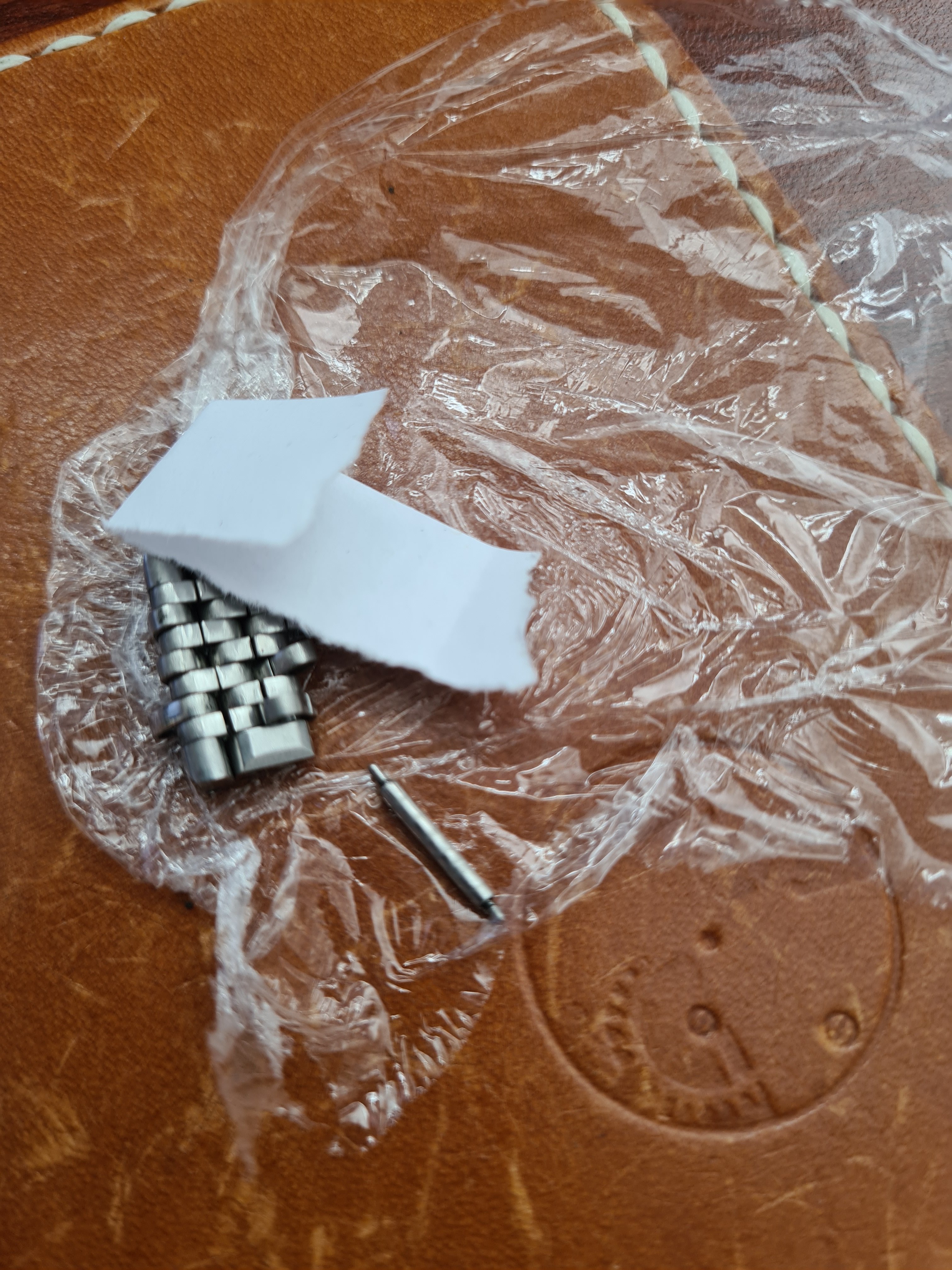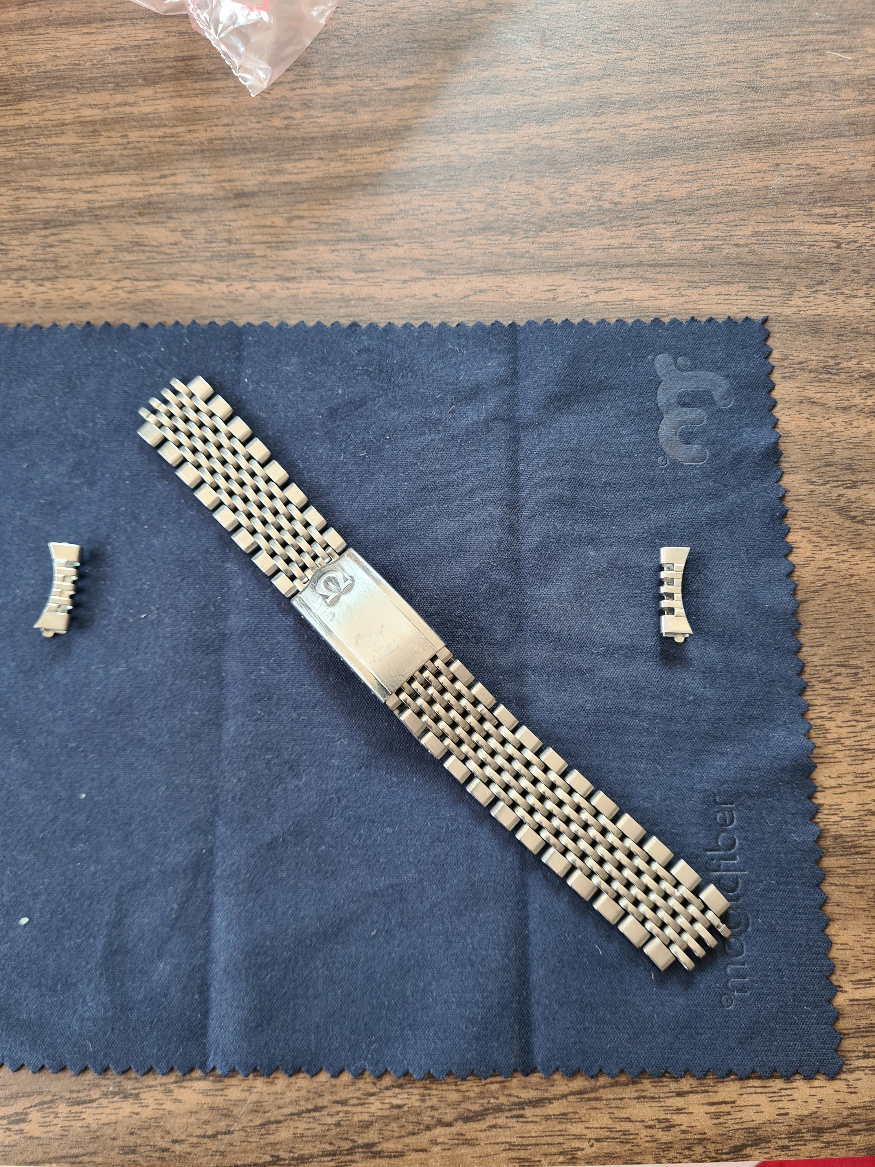 2.) Use the "pokey end" of a spring bar tool, or just something small and thin like a paper clip or the tool that you use to get a SIM card holder out of a phone, to poke in the spring bar in from the hole on the outside side of the large bead in the link. Don't try using a one-sided link removal tool as you would with a standard metal band. Like the holes in lugs, the bars themselves are wider, and will never come out the other side. Or, rather, if you apply enough pressure, they will force the opposite large bead far enough away so the bar can be free, but they'll go zooming across the room, accompanied by small, gross chunks of what I can only assume to be hand cheese well older then I am (this happened to me).
