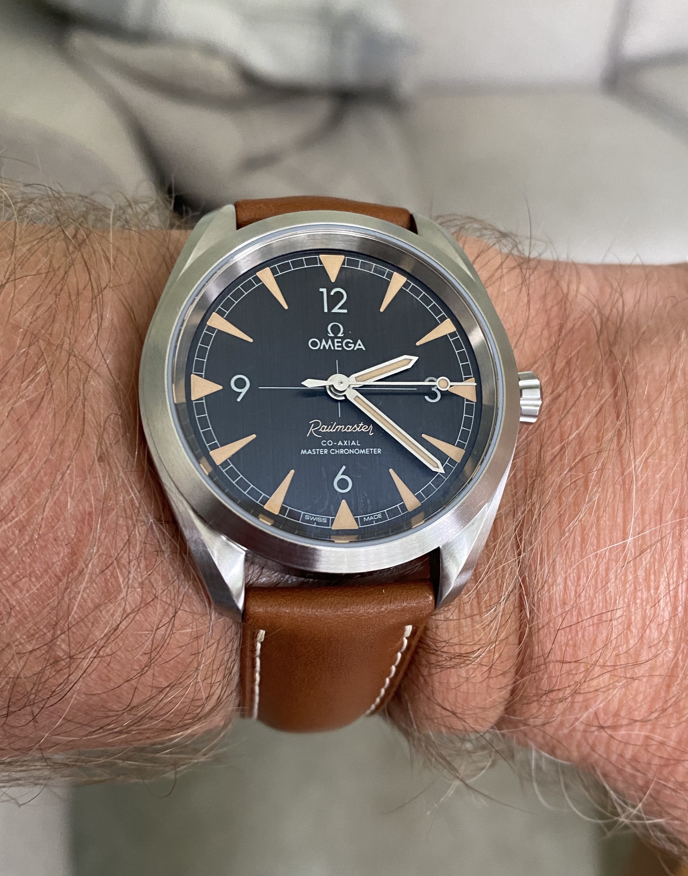 路A few weeks back I had ordered the leather strap from the Seamaster 300 and deployant for my Railmaster from my OB, a couple of days ago I received a call from my OB to say that the items had arrived and if I bring the watch in one of the team will fit it for me. So this morning I arrived at the store, no appointment, was welcomed in and met by the manager who showed me to a table and said that he would fit the strap for me.