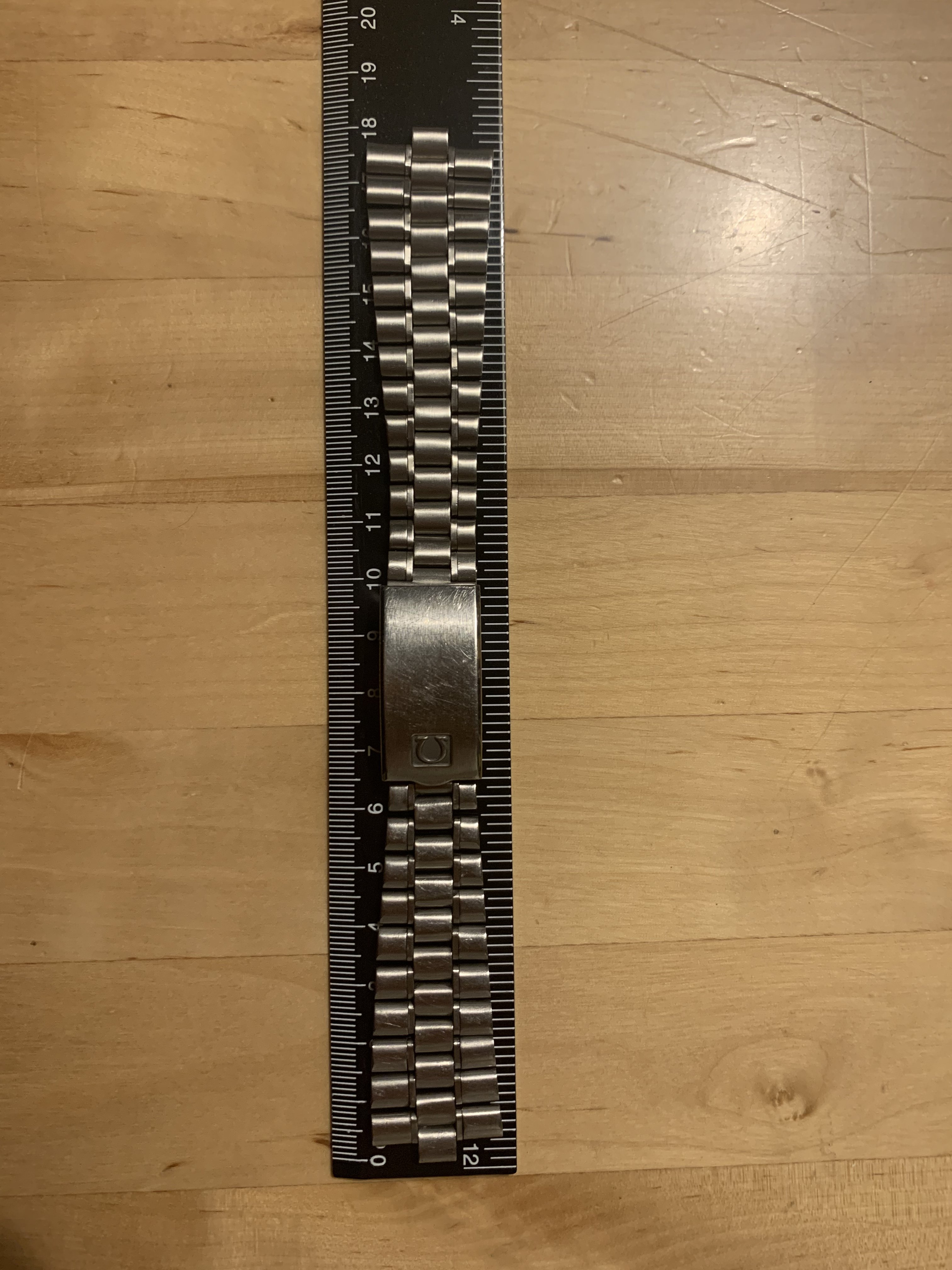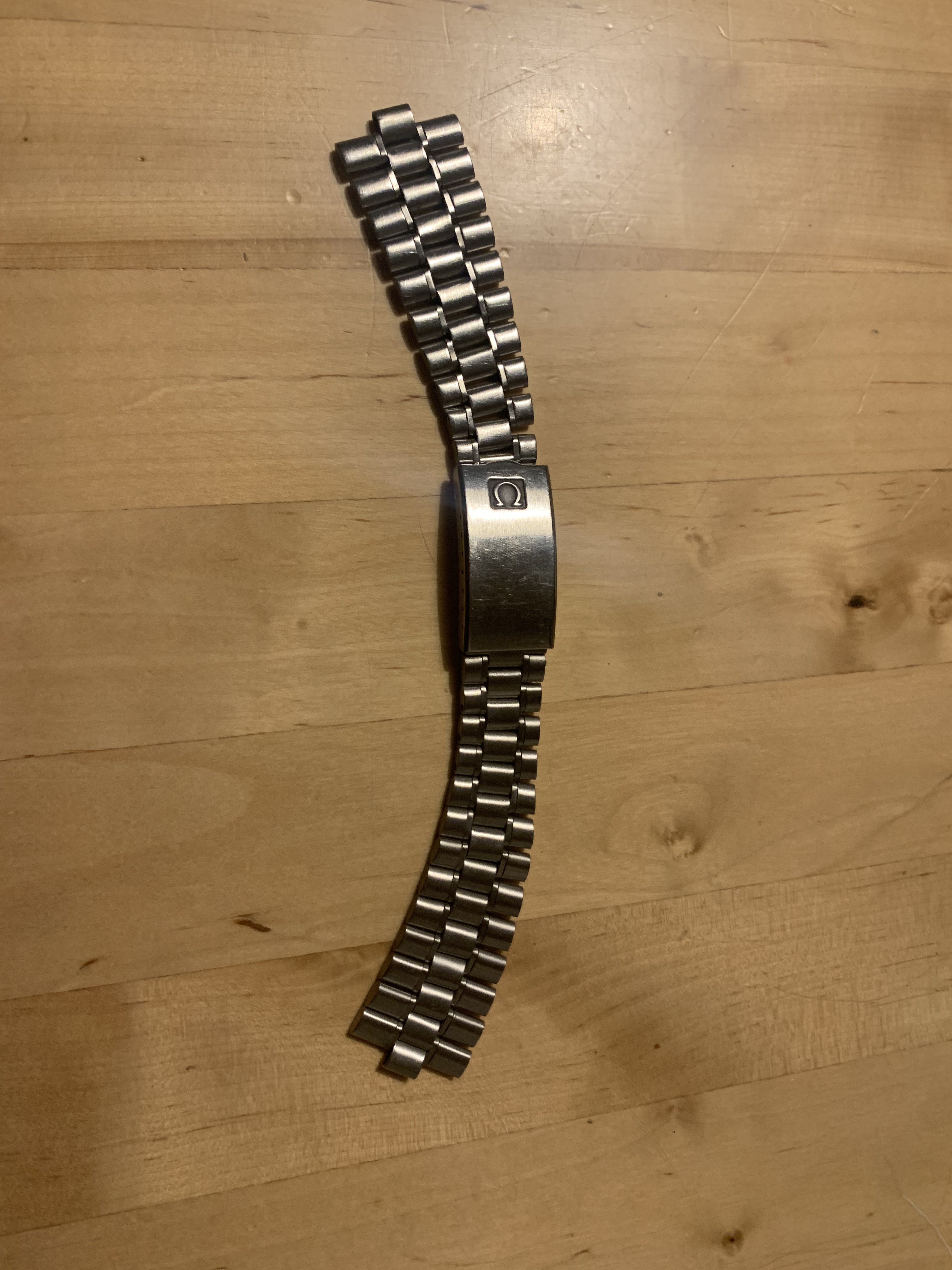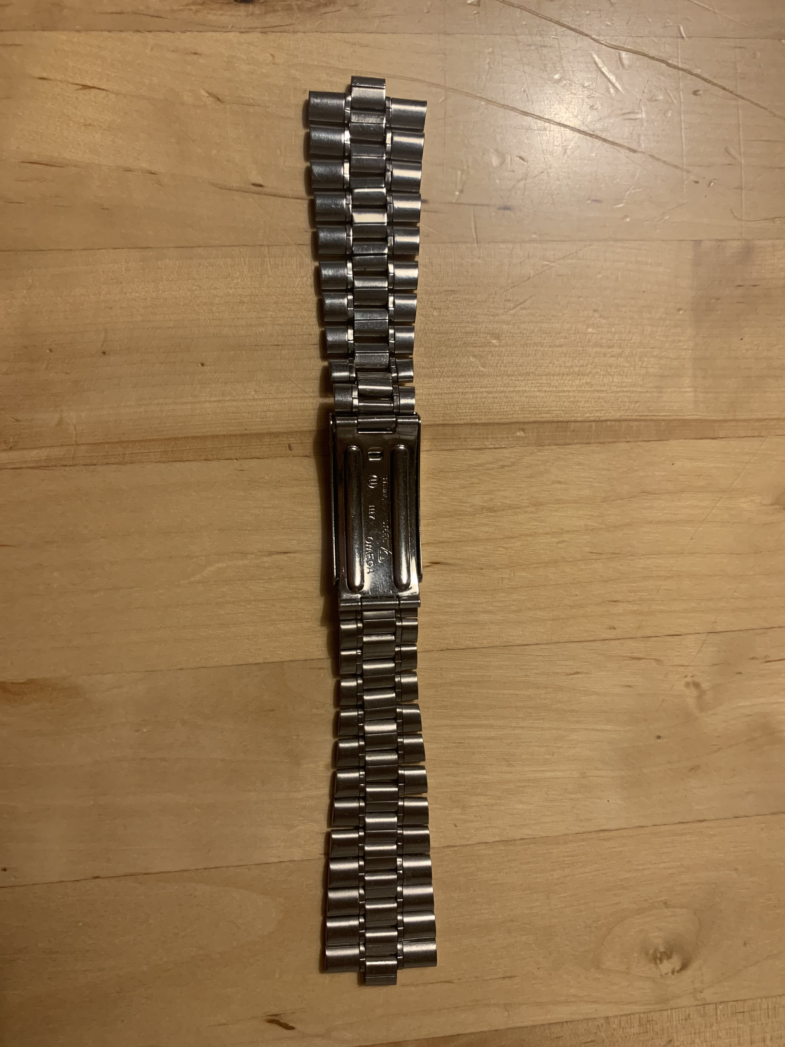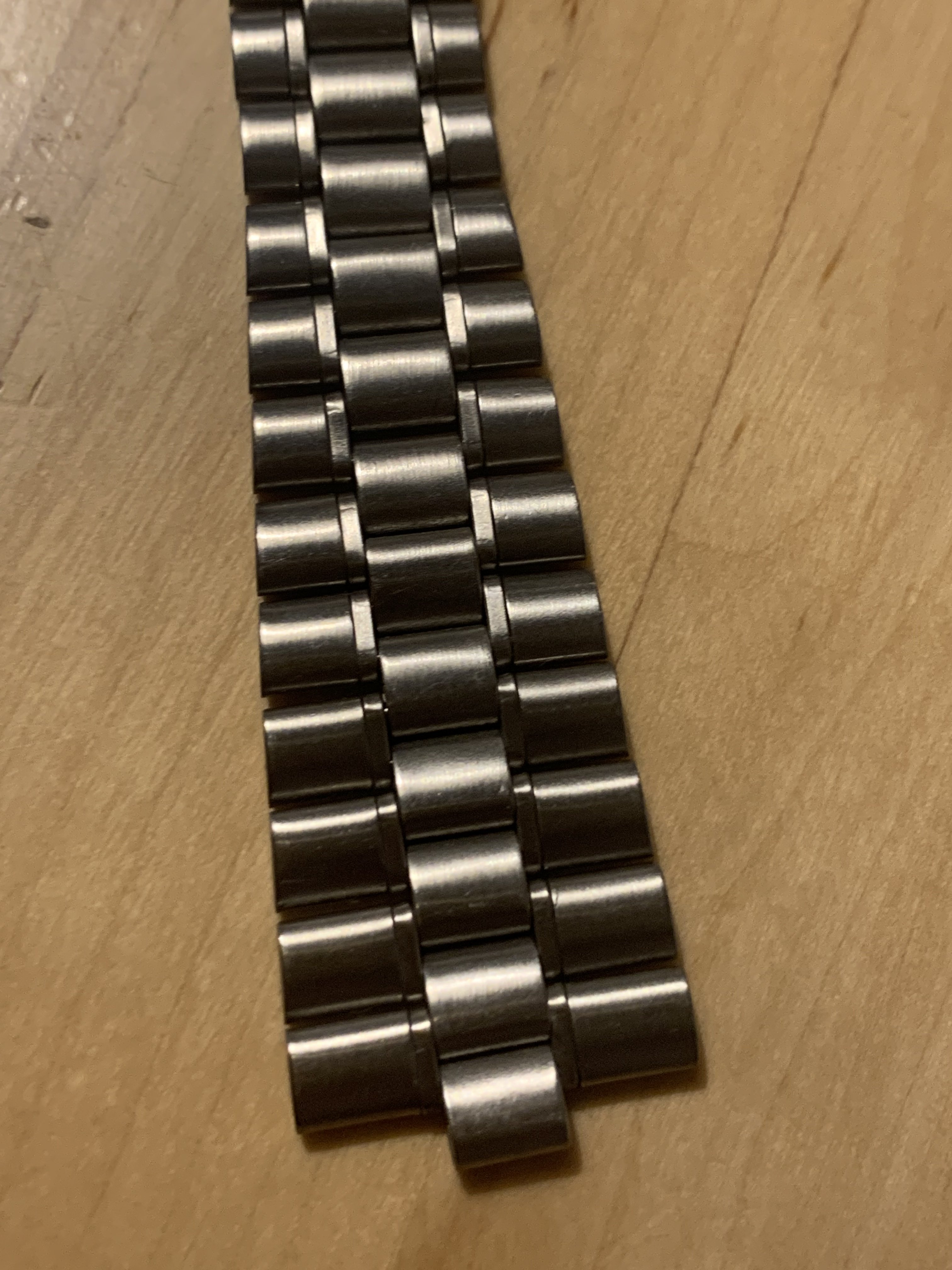 The bracelet has no major marks or dents, only a few fine scratches which could be easily polished. It has little stretch, did‘t get a polish from me and the clasp closes tight and firm. It has 23 links and a length of about 17,5 cm without end links.
