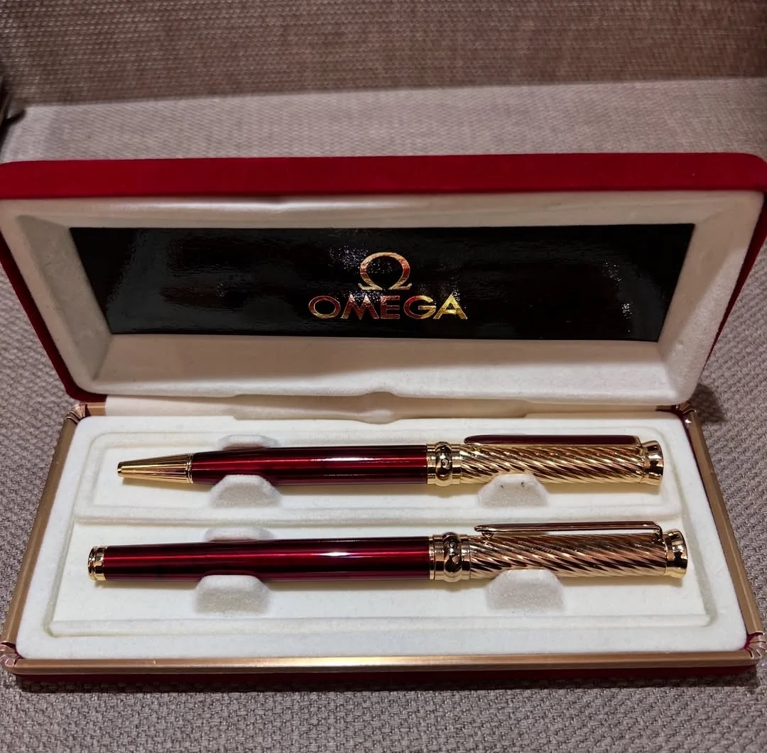 ·Hi all. Probably a long shot, but I'm giving it a try. Someone I know has put this set of fountain and ballpoint pens for sale. Being branded Omega, of course it got my attention. I know very little of pens, and checking online at most it yields a couple of places with the same box style, claiming they were produced by Omega via third parties. Anyone has any idea if these may be actually produced by Omega? The photos below are all I have.