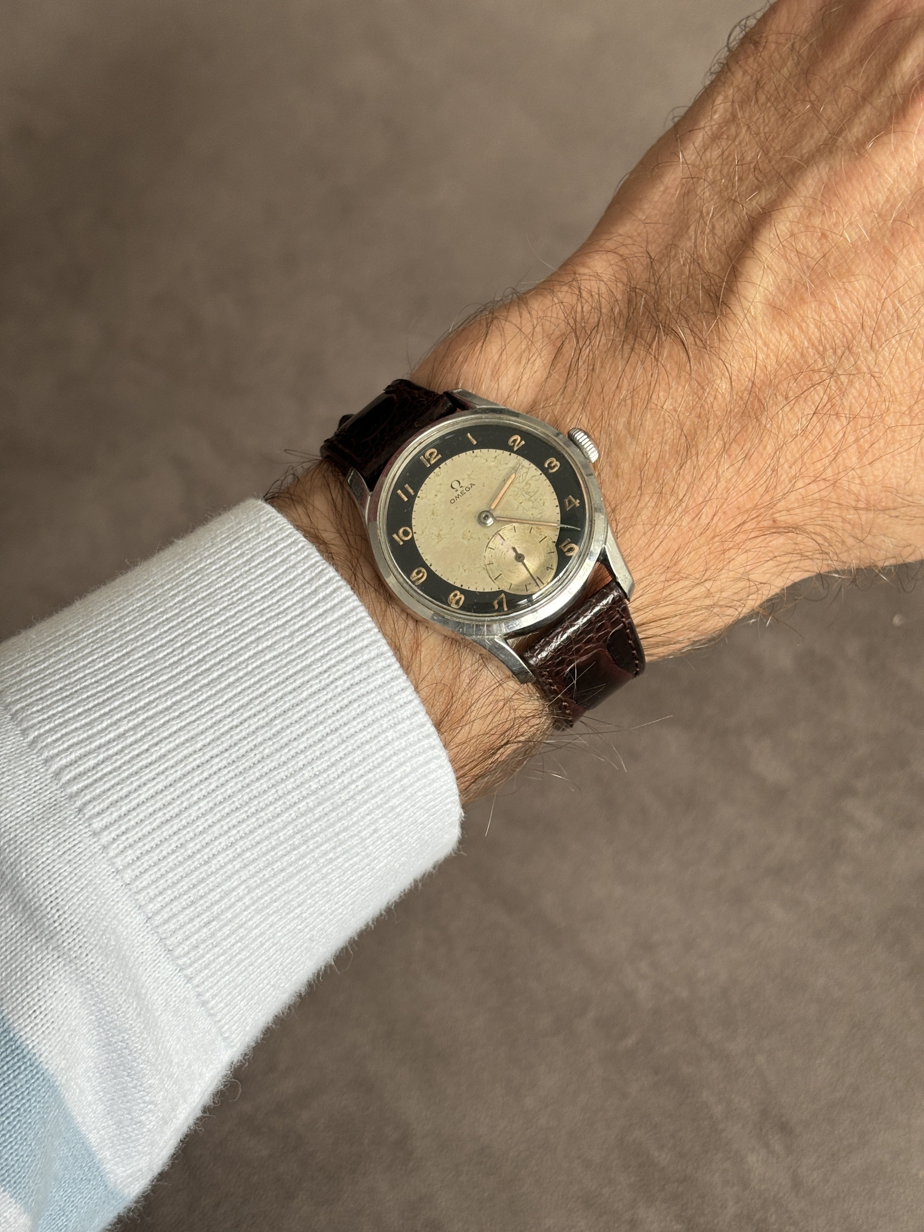 - The Bullseye dial of this watch has been exceptionally preserved, the topicalization creating a unique spider web pattern, a rare phenomenon that develops over decades. This patina gives the watch a mysterious and captivating appearance, revealing a story that has developed over time.