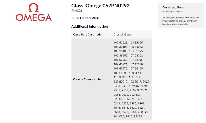 I have bought a neglected 1947 'bumper' with 351 movement and 2582-1 stainless case. It ran (but only for short periods) and is now dismantled for cleaning. The later and cracked crystal was a poor fit and all but fell out and I would like to source the best quality replacement I can. I'm assuming that a NOS genuine one would be hard to find now, but would appreciate any guidance on what the Omega part number is and also some pointers in the right direction on the best sources.