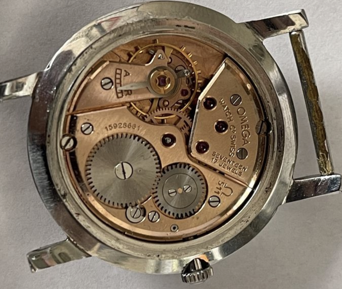 ·Hi guys i need help with this omega. I think it’s a 14387 and should have a cal. 520. The case seems to be in a nice condition and the crown is signed but i dont know about the hands and the dial. Its missing a seconds hand and the hands are probably not original. What i have most doubt about is the dial though, i haven’t seen that kind of dial with gold/copper indexes (or maybe its just the light)