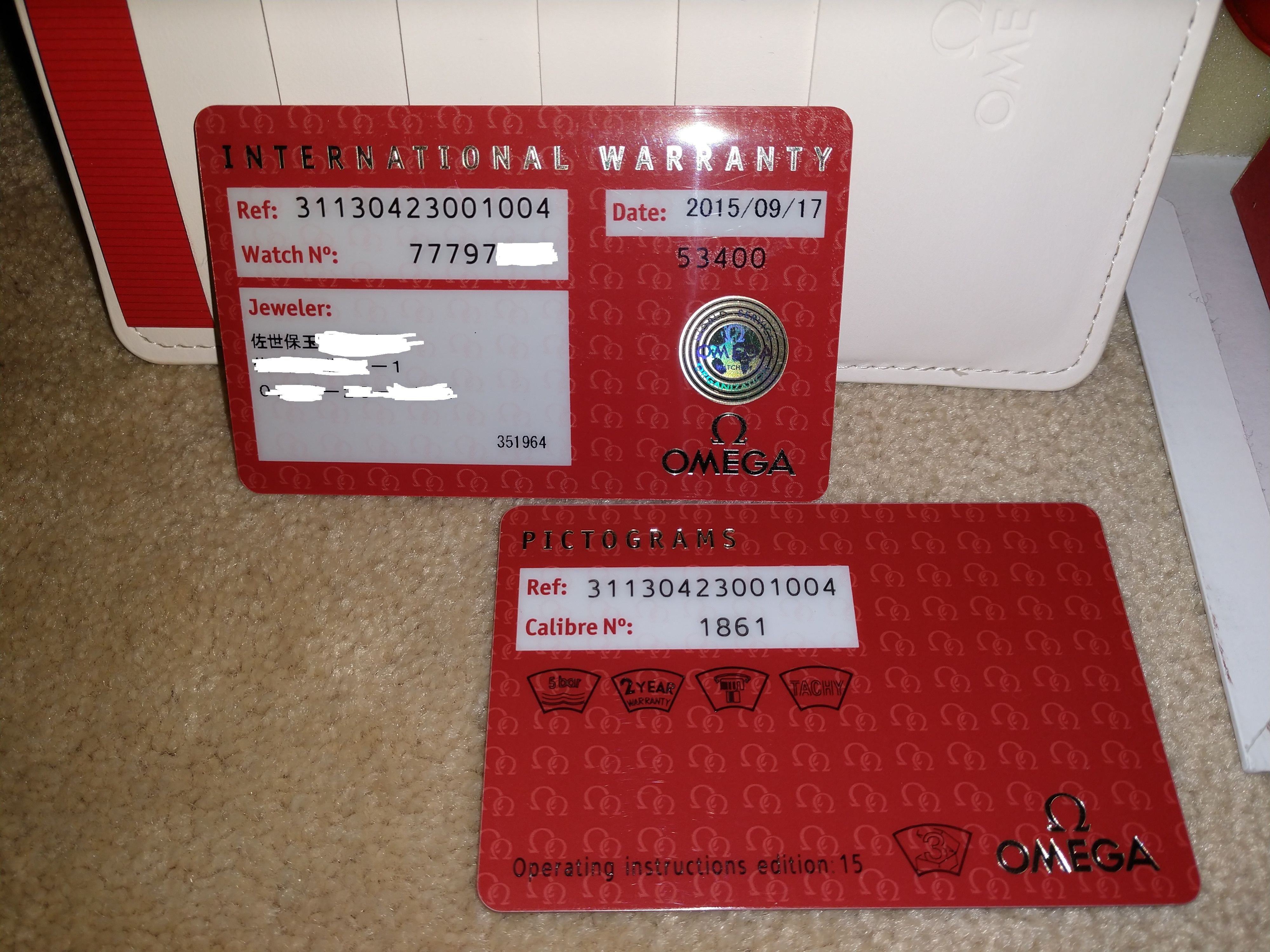 I've wound up the watch infrequently and checked the timing once--it's well within spec. No servicing was necessary (99.999% of its life in a box), and you'll find that the little red warranty paint blob is still intact (see caseback photo).