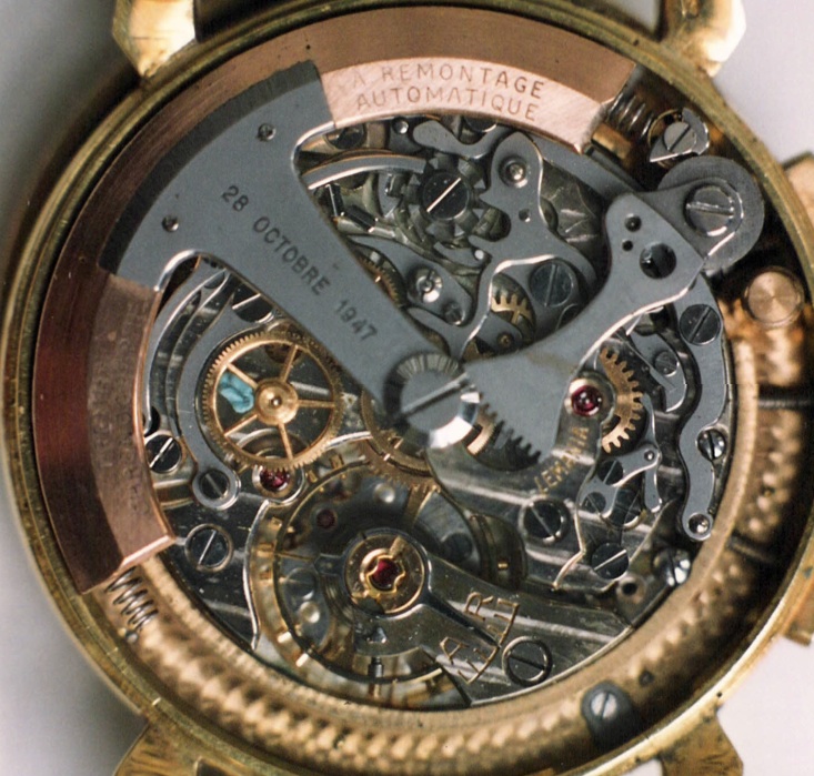 "Almost a quarter of a century before Zenith and Dubois Dépraz, the Lémania manufacture was working on the development of an automatic rotor chronograph, based on the famous CH 27 caliber. A pioneering chronograph that will be rejected by Omega in 1948, for fear that customers do not like the mechanical rattling of the thrust rotor (bumper!). Like what commercial conformity is a terrible handicap for brands that do not like to take risks." (Translated from an original article in french published in "Le quotidien de l'horlogerie, 23/02/2014).