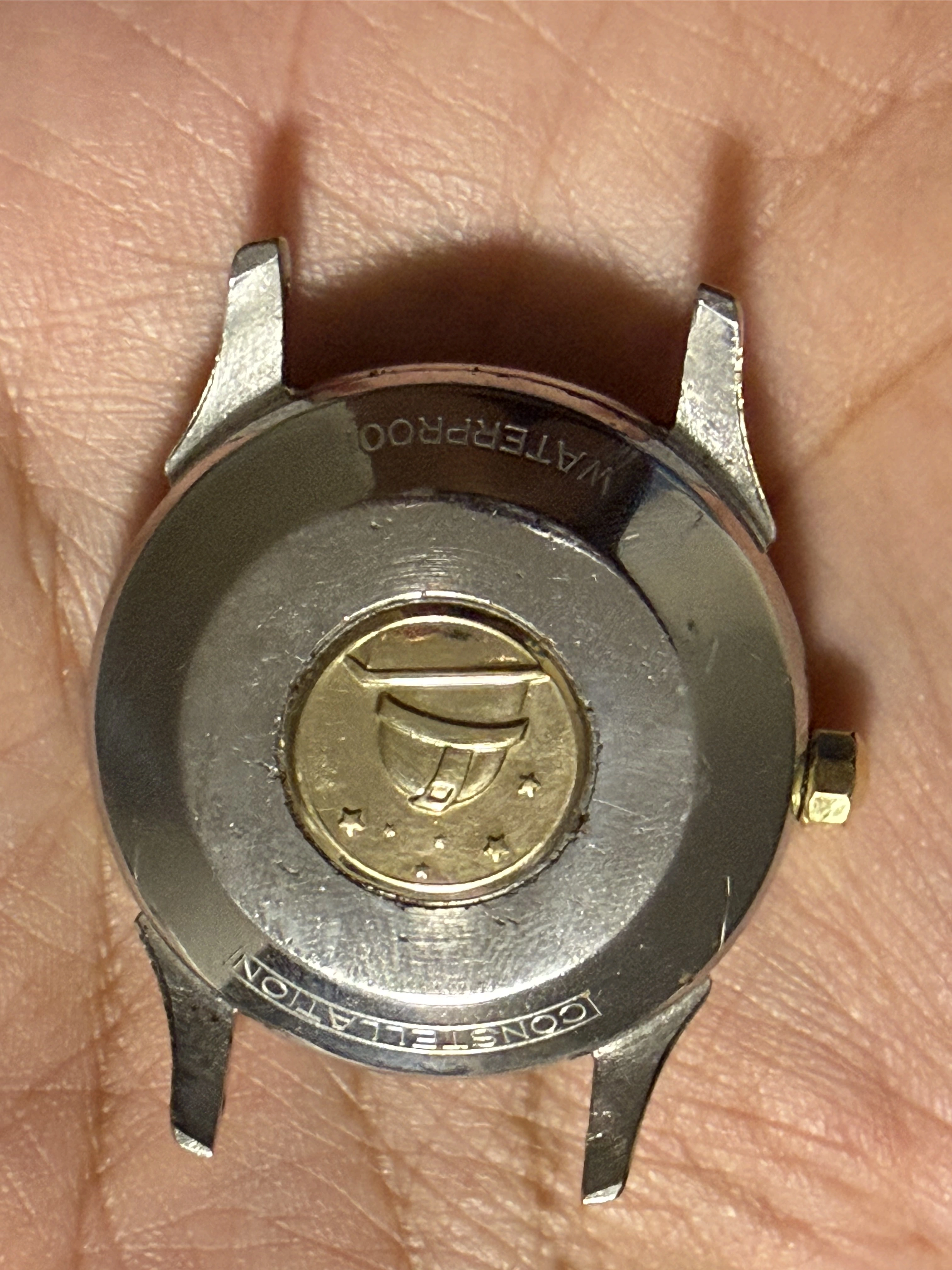 This watch is a marriage of two Constellation models. The dial and movement are from ref. 2943, while the rest of the parts are from ref. 2852.