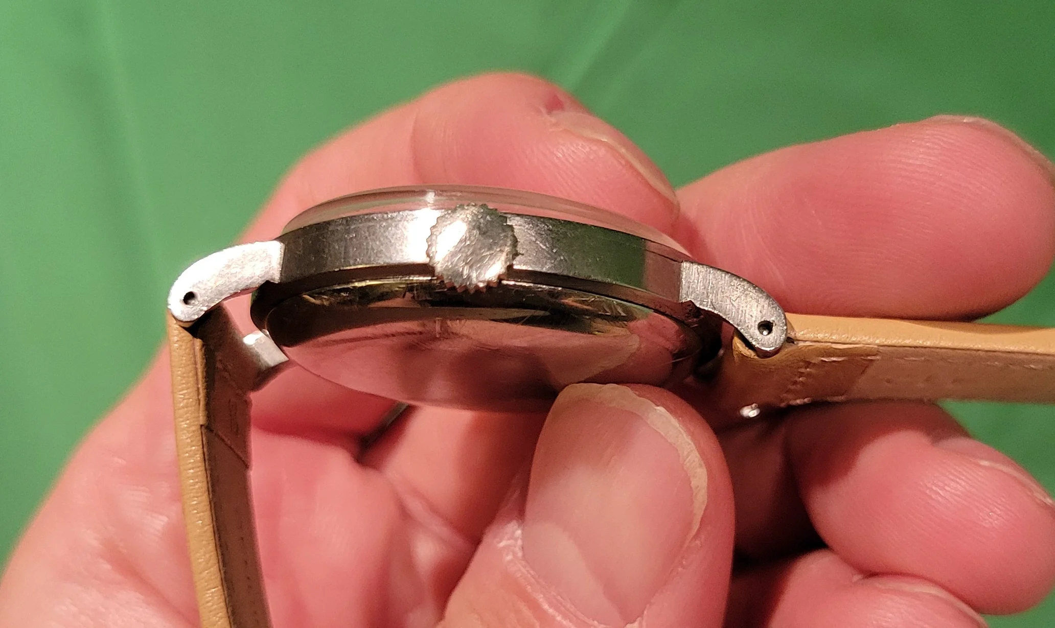 Movement has not been serviced in my possession, but the watch is winding and running. Movement looks clean with original plating intact, but a service would make sense if you intend to wear this regularly. Serial number is 9.7 million.