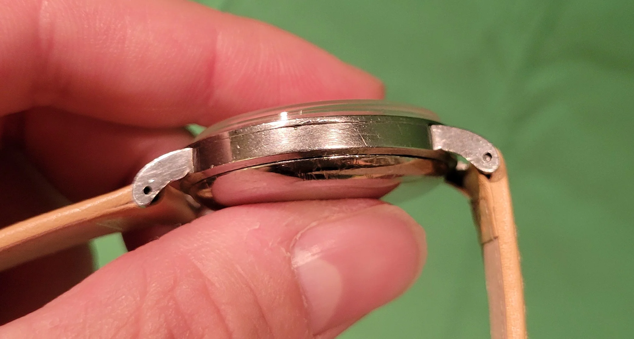 This is the larger 35.5mm chronometre variant. Case is in good condition with sharp lug holes. Does not appear to have been significantly polished, as there is still some vertical brushing visible on the side lugs. Small scuffs on the caseback from prior opening attempts. Inside caseback reads 2367-3.