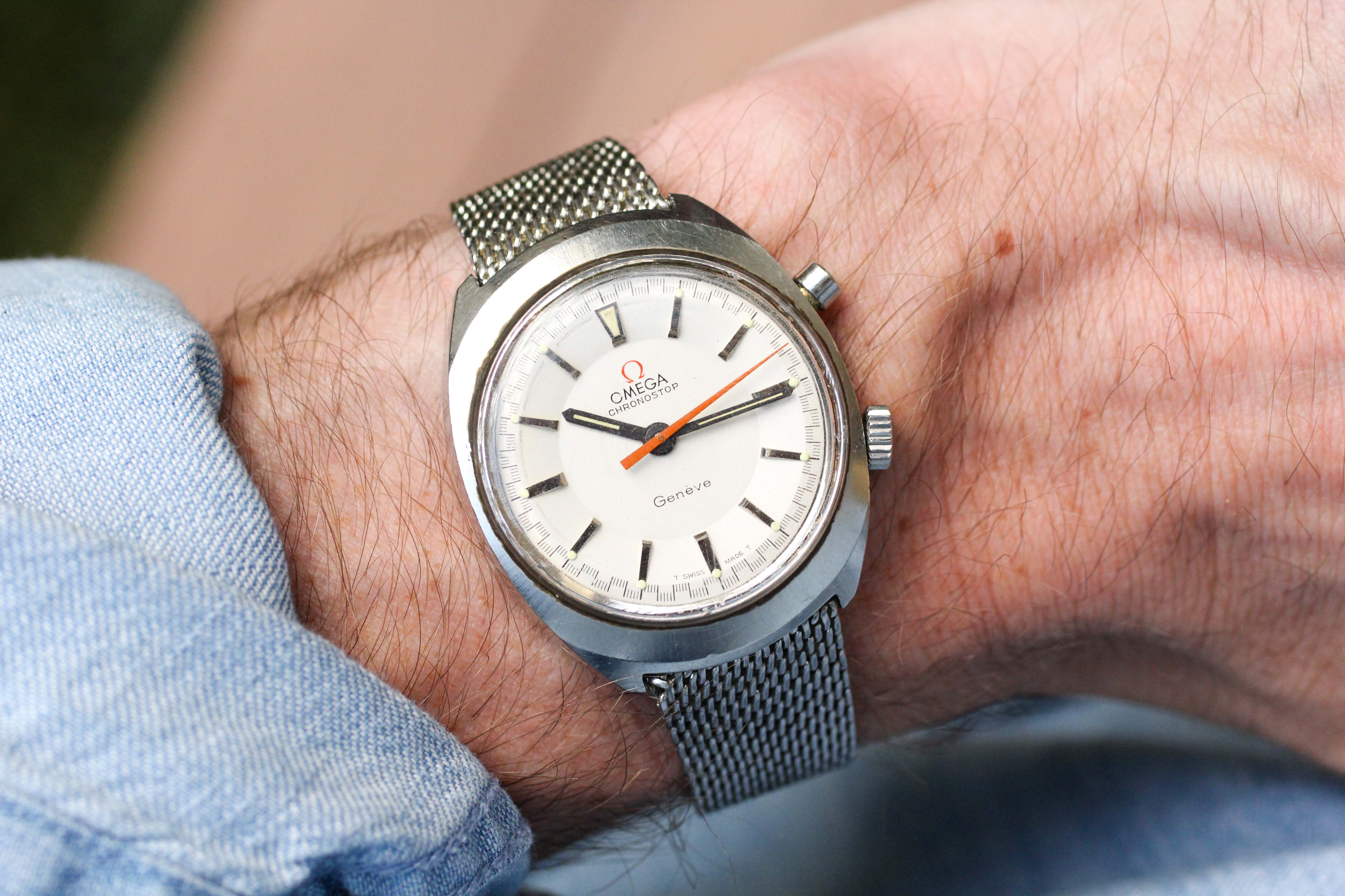 Movement / Functionality: The Chronostop is powered by the Omega caliber 865. As mentioned above, I was not able to open the caseback with a friction ball so I was not able to visibly inspect the movement. The watch winds strongly and displays a strong power reserve with reasonable timekeeping (i.e. does not lose minutes per hour). The chronograph pusher is stuck, and as such, a full service is recommended. As always, the watch is sold as-is.